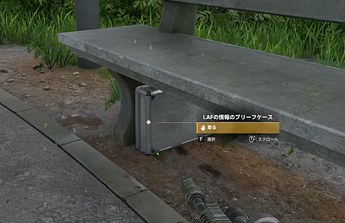 2.同エリア、円形に並んだベンチのひとつの下にある「LAFの情報のブリーフケース」を取る。