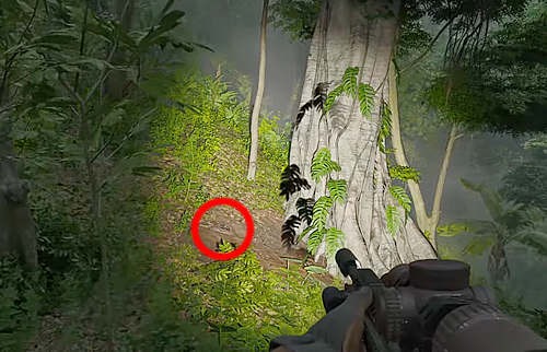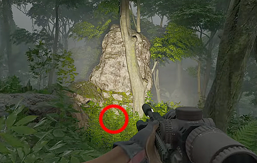 2.山の斜面にある大きな木の根本あたりにある備蓄品スタッシュを調べる。