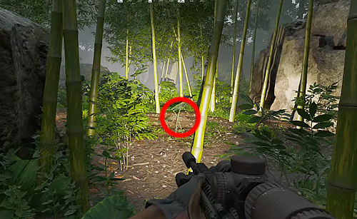 3.岩に囲まれた竹林の中心あたりにある備蓄品スタッシュを調べる。
