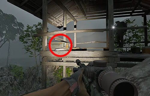 1.大きく突き出た岩の下あたりにある備蓄品スタッシュを調べる。