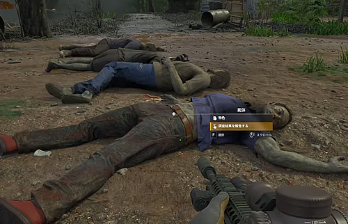・2階建て建物の前の広場に並ばされてる死体のいずれか