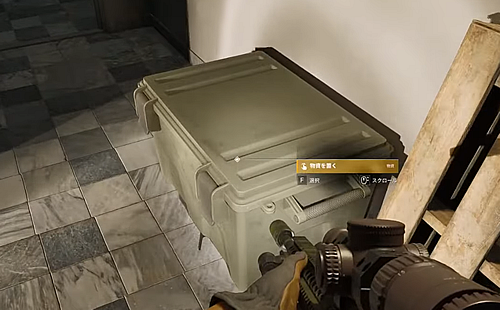 3.「電波塔」にある建物入ってすぐ正面のコンテナを調べて物資を入れる。