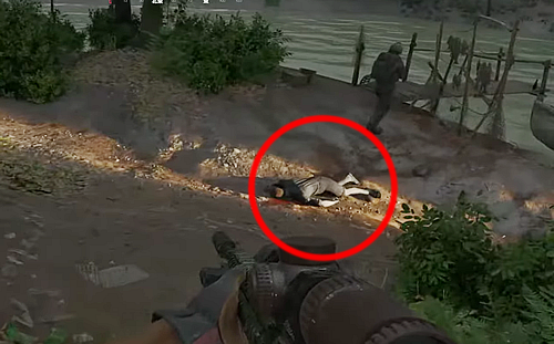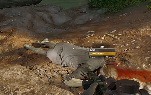 当該エリアの川沿いに小屋と桟橋があり、桟橋近くで倒れている死体を調べる。