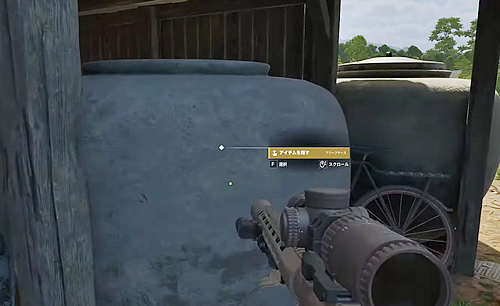 2.「インタヴォン農場」の高床式住居の横にある、フタが開いている大きな甕を調べてブリーフケースを入れる。