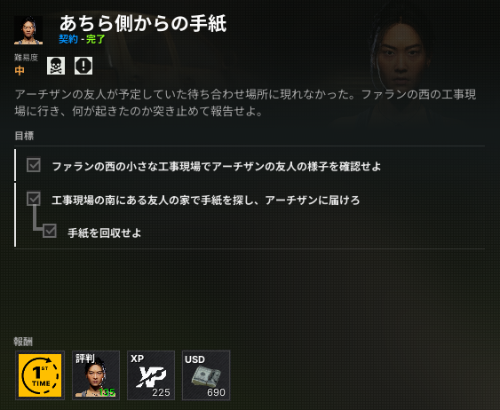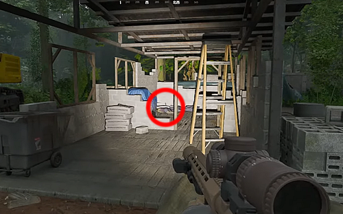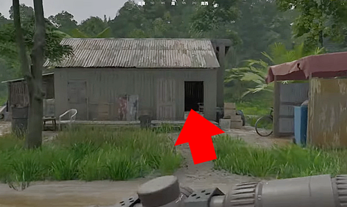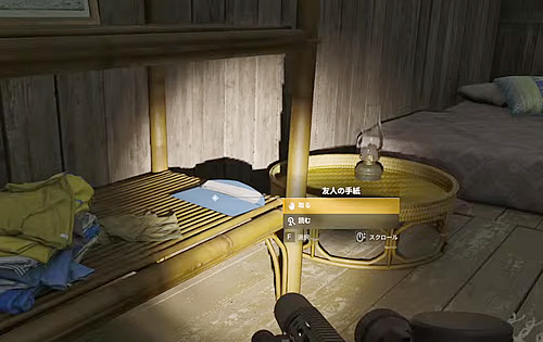 2.「小型貯水塔」の建物の奥にある竹の棚に置いてある手紙「友人の手紙」を取る。