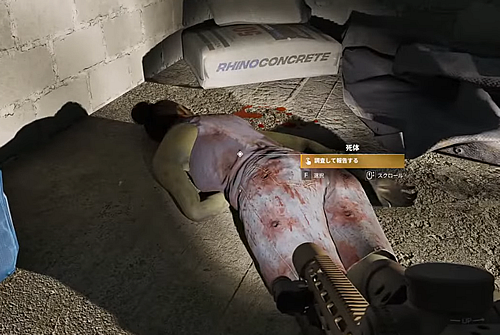 1.「工事現場」のブロック塀の横で倒れている死体を調べる。