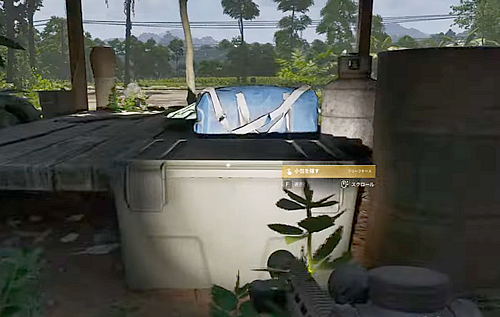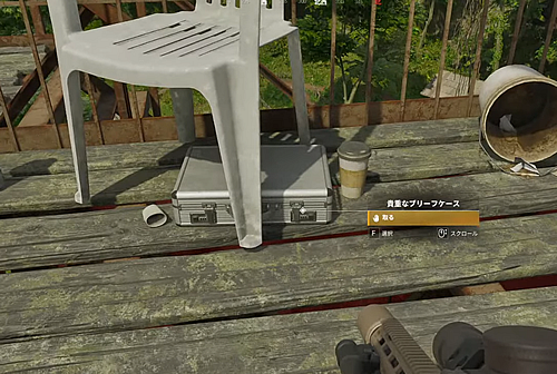 2.「放置された避難所」の裏のドラム缶横にあるコンテナを調べてブリーフケースを入れる。