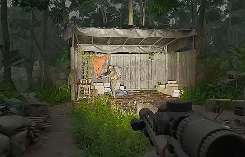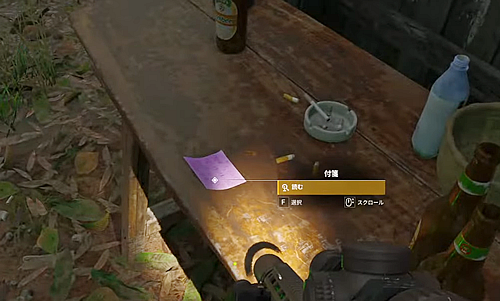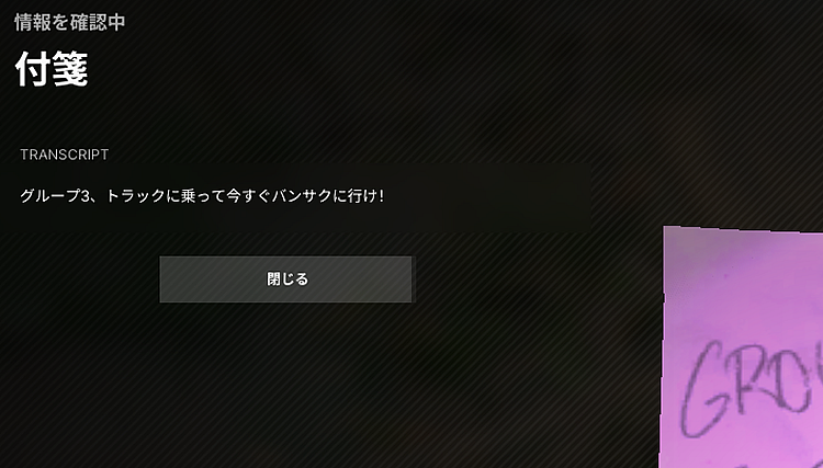 1.「バン・ノーン」の中央あたり、建物の正面の小屋の机に貼ってある付箋を調べる。