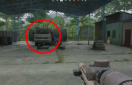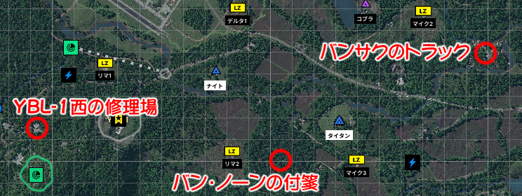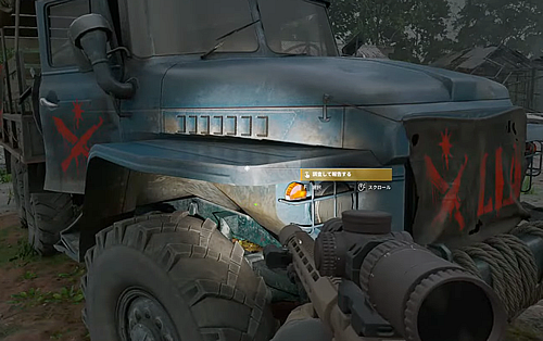 3.「YBL-1西」の中間地点にある修理ヤードに停められて修理しているトラックを調べる。