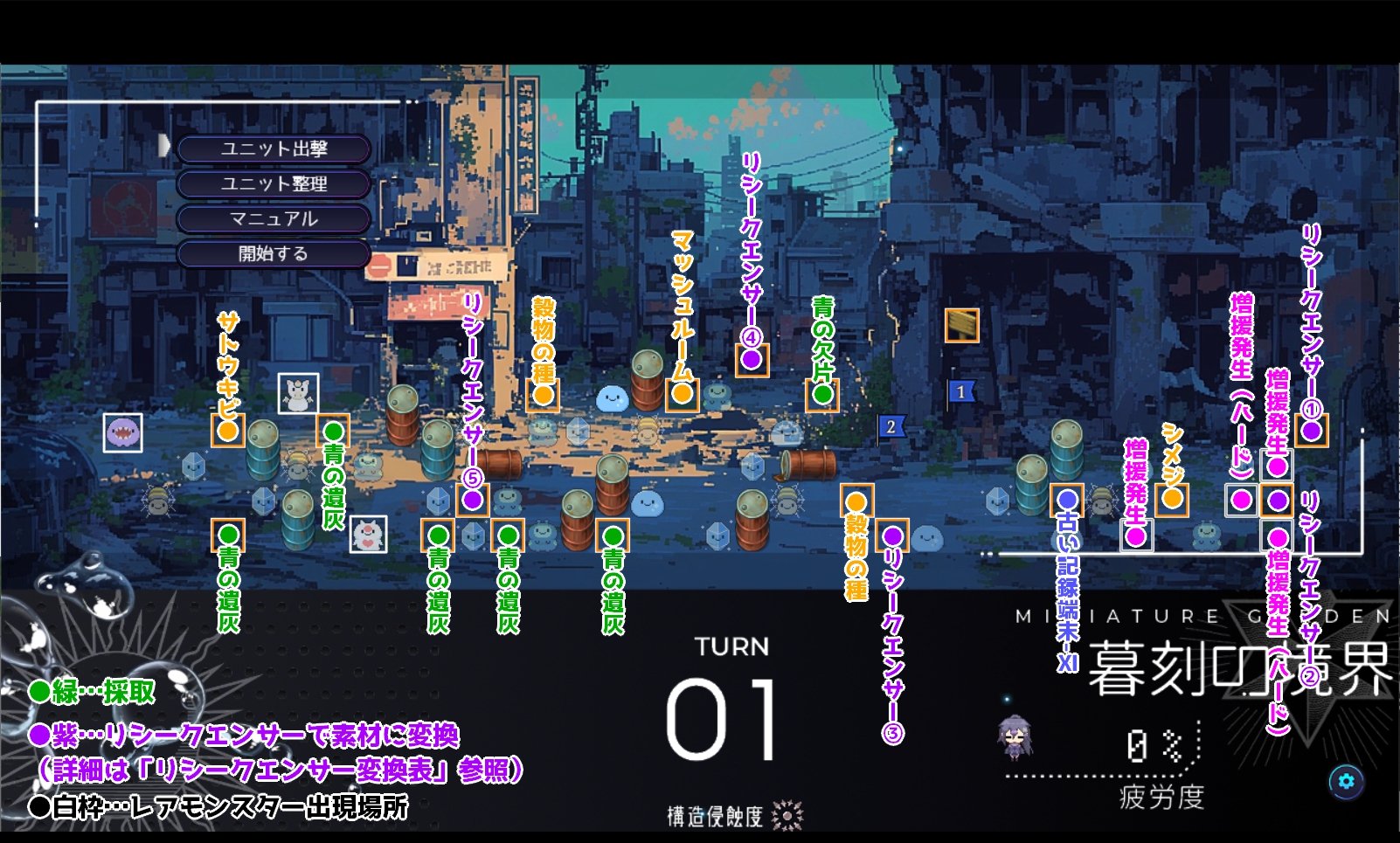 | マップ上の番号 | 変換後アイテム |