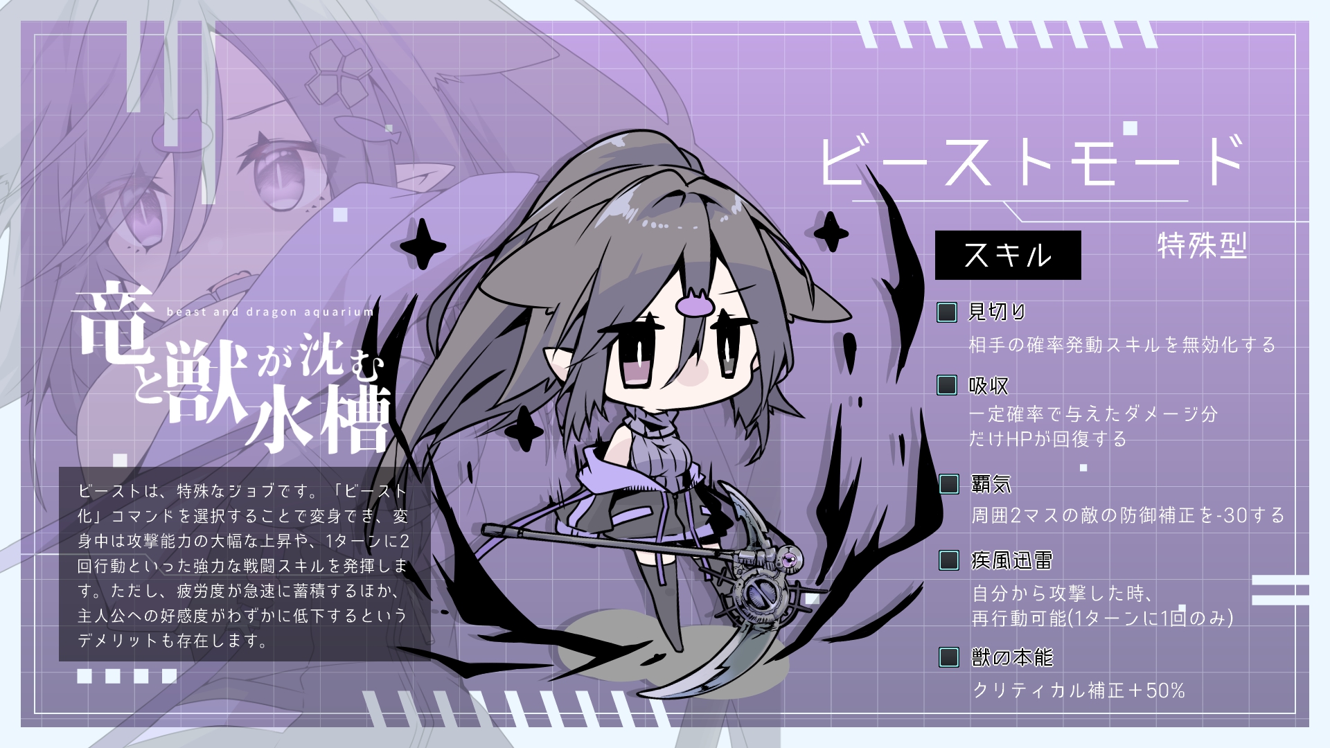 コマンド「ビースト化」を選択すると変身することができる特殊ジョブ。