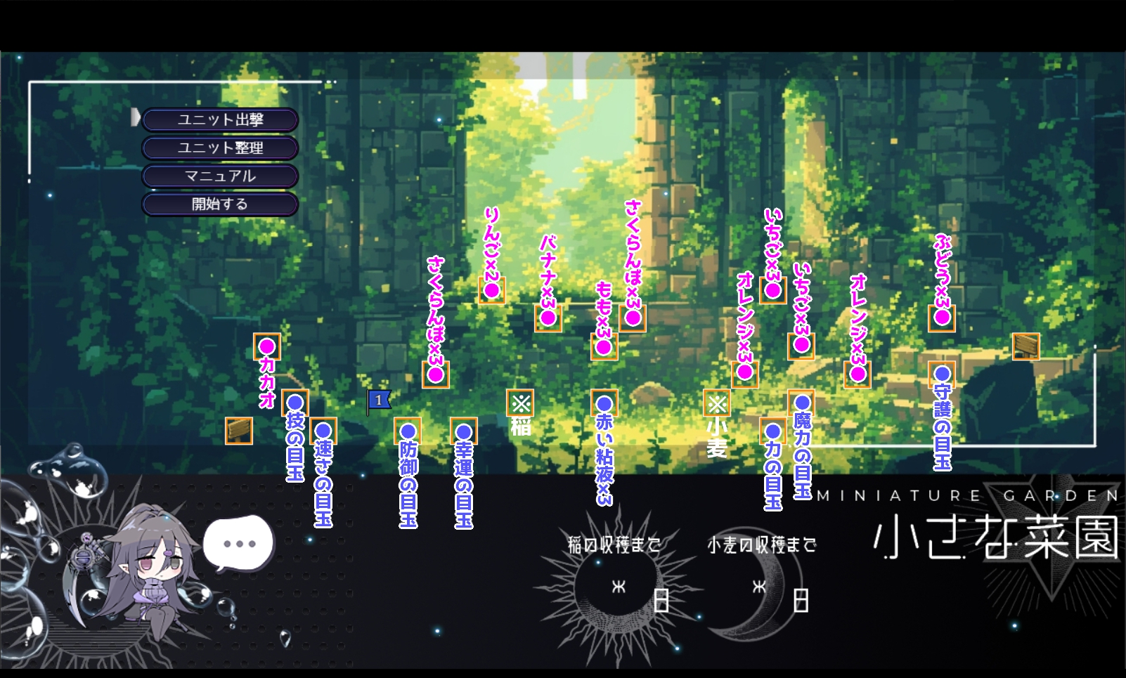 「小さな菜園」では「米」や「小麦」を育てられる他、くだものを手に入れることができます。