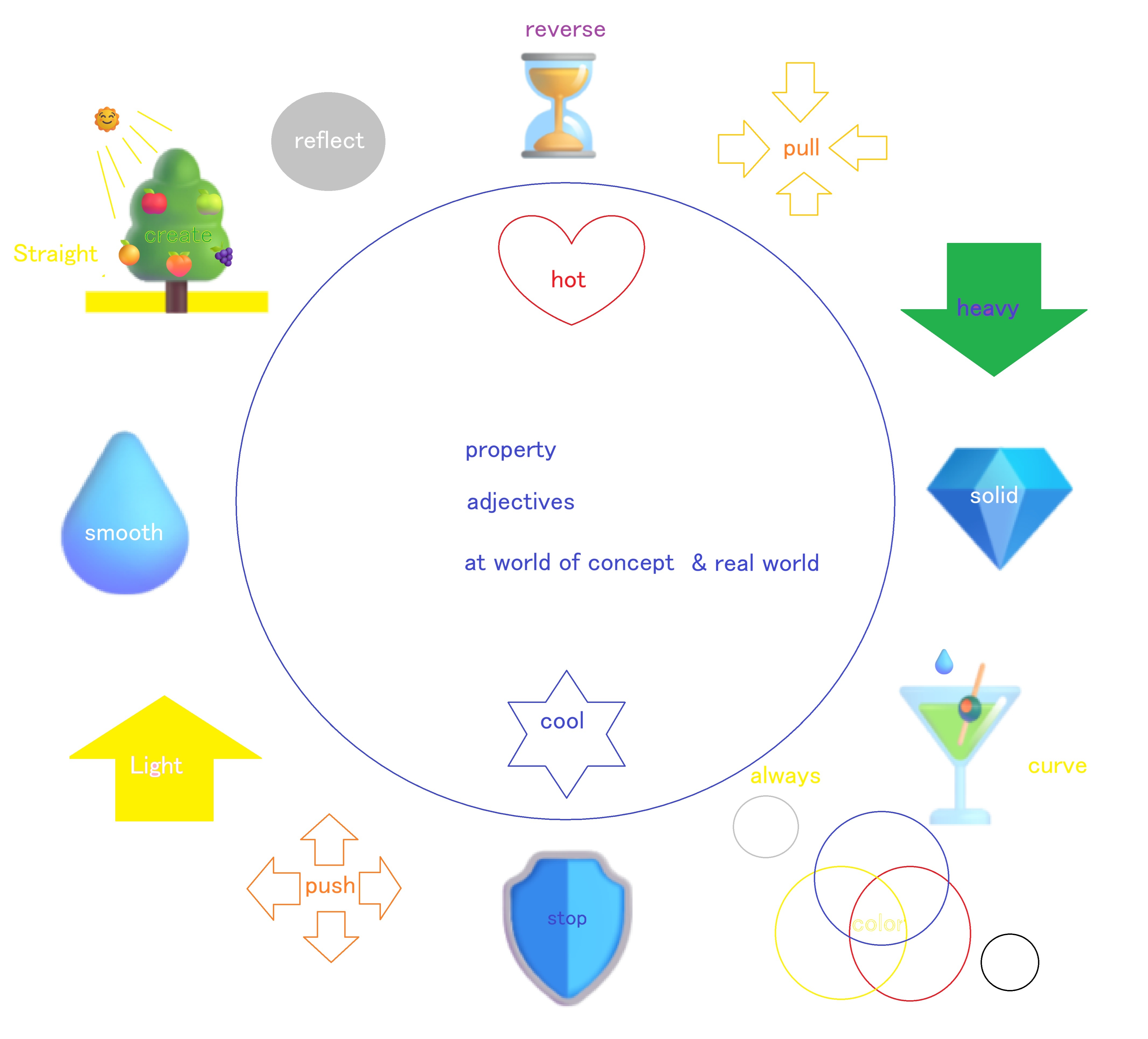- 対となる概念と、共通点を要素をもつ概念の集合