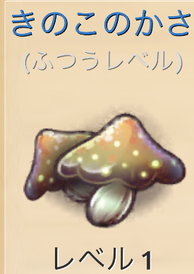 「きのこの原木」マージ時にドロップ きのこLV4~9から収穫できる きのこの胞子の木から収穫できる |