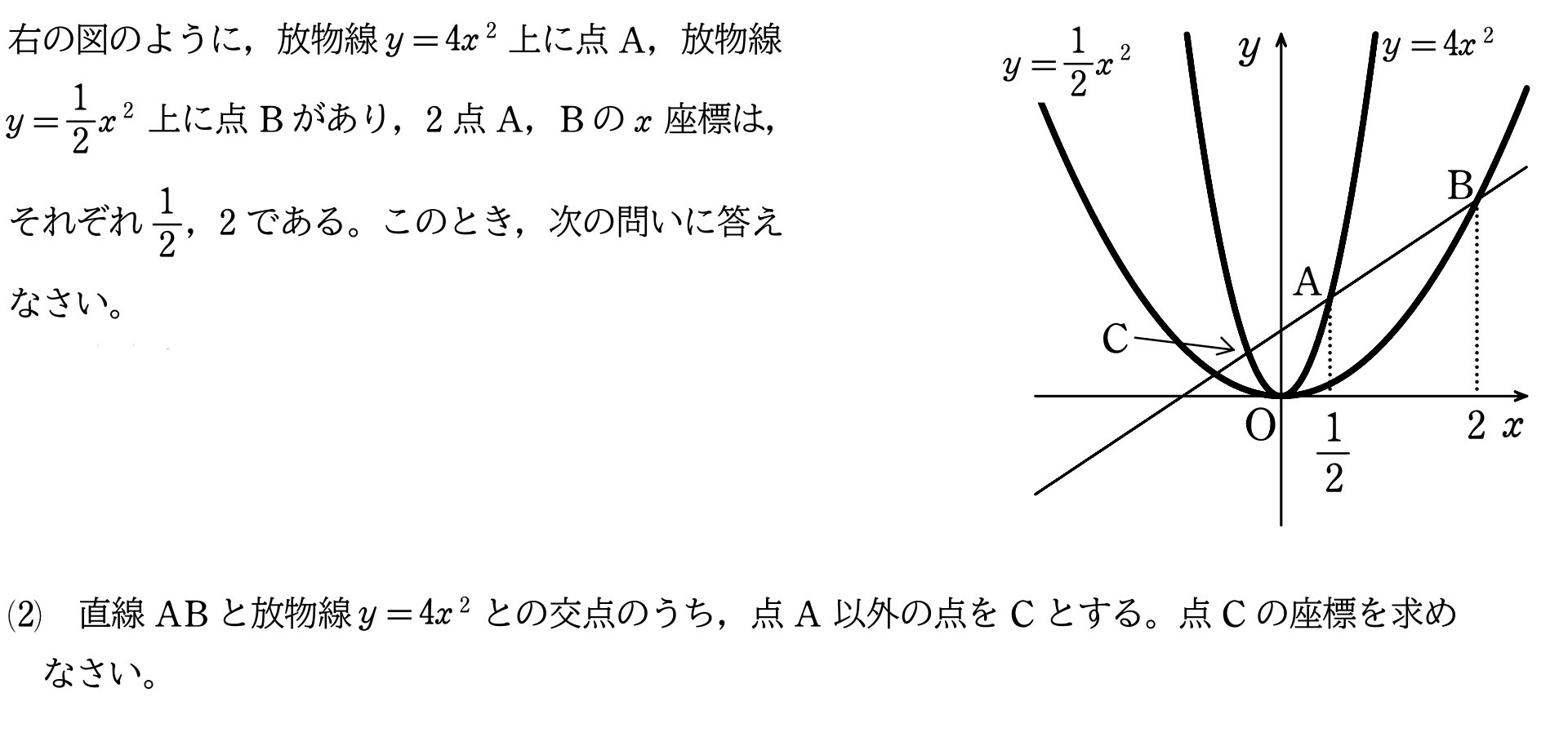 今回は、y=ax+bと、y=4x2の(x,y)座標がAとCで一致してるね