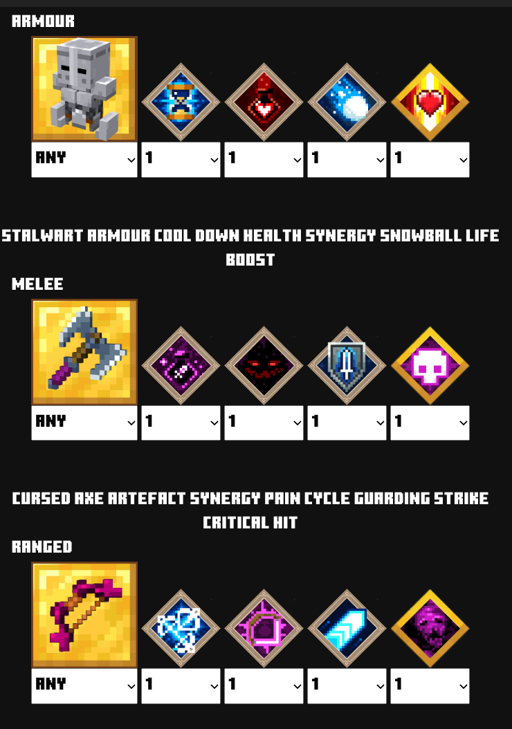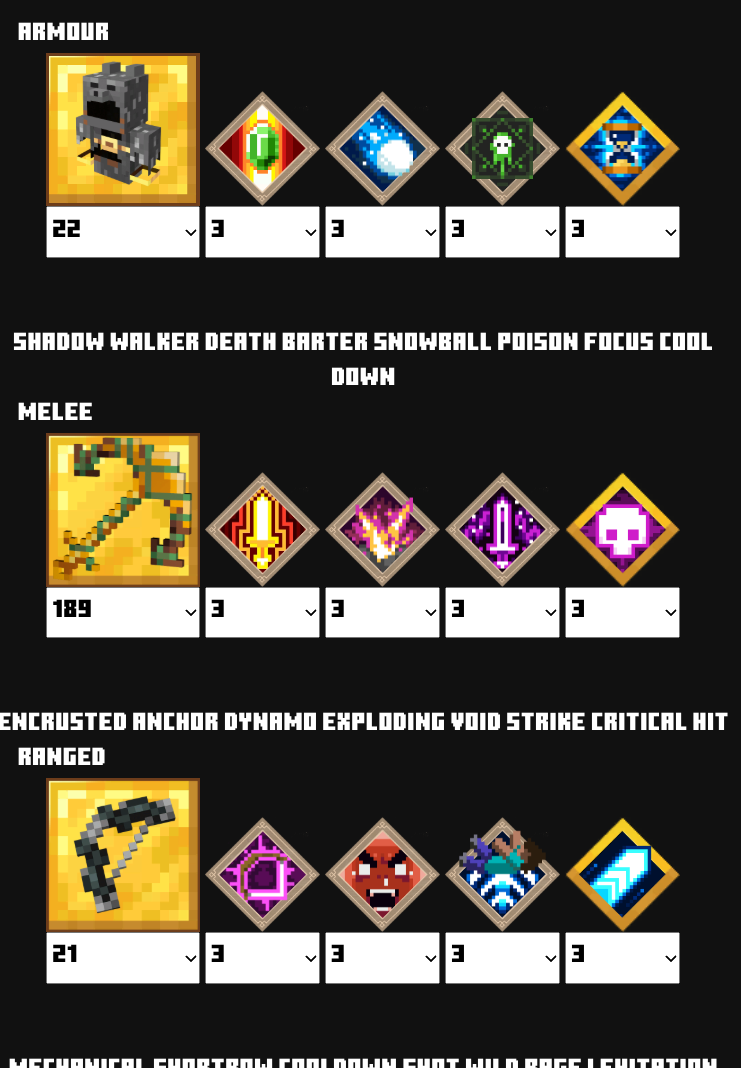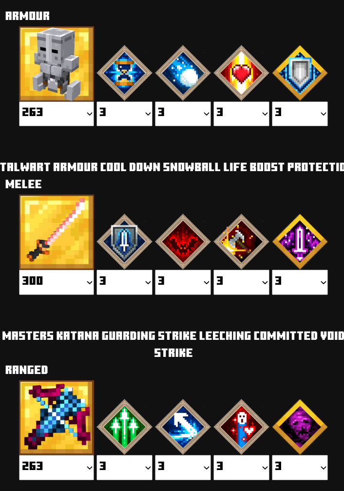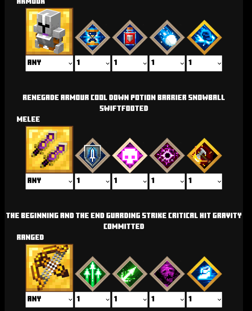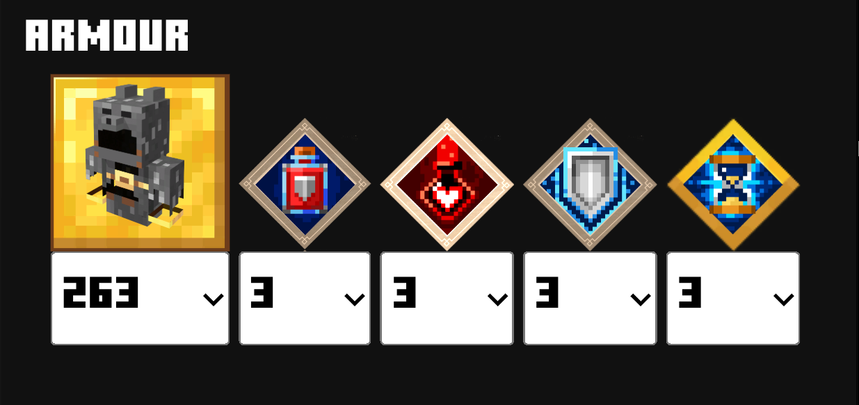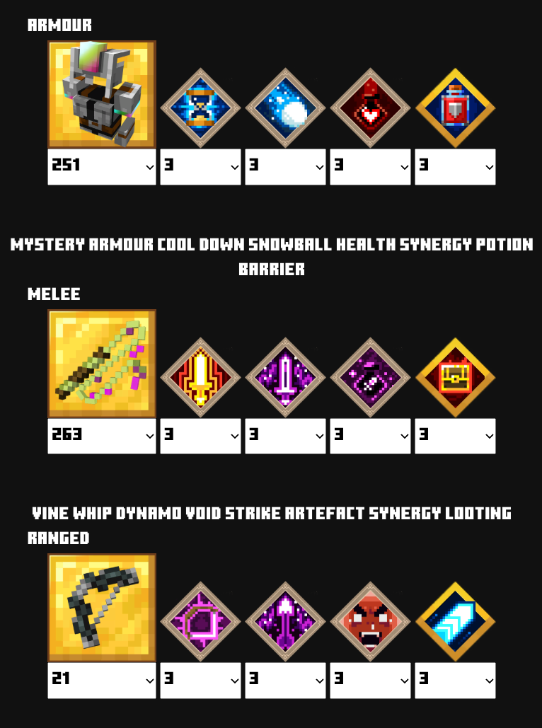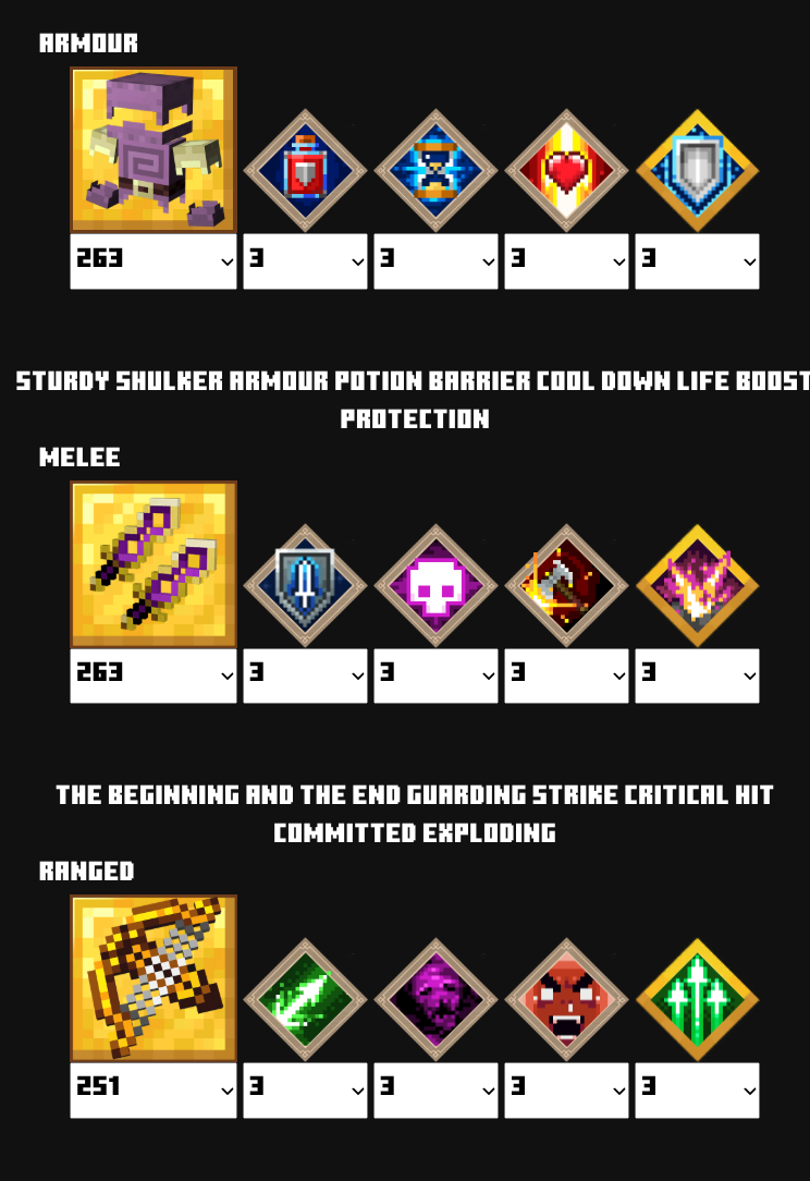| 防具 | ウィザー![]() | ポーションバリア![]() | クールダウン![]() | クールダウン![]() | ヘルスシナジー | ライフブースト![]() |