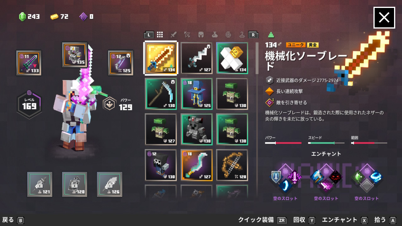 | 防具 | フルメタルアーマー![]() | エンチャント | 幸運の海![]() | 激高![]() | 偏向![]() |