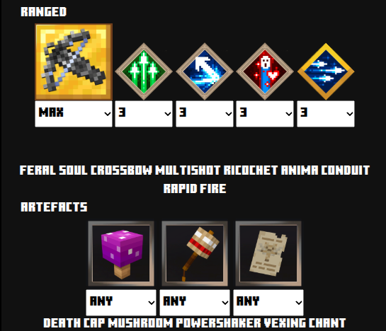 | 遠距離 | 良質な力の弓![]() | エンチャント | バーストボウストリング![]() | クールダウンショット![]() | 無限![]() |