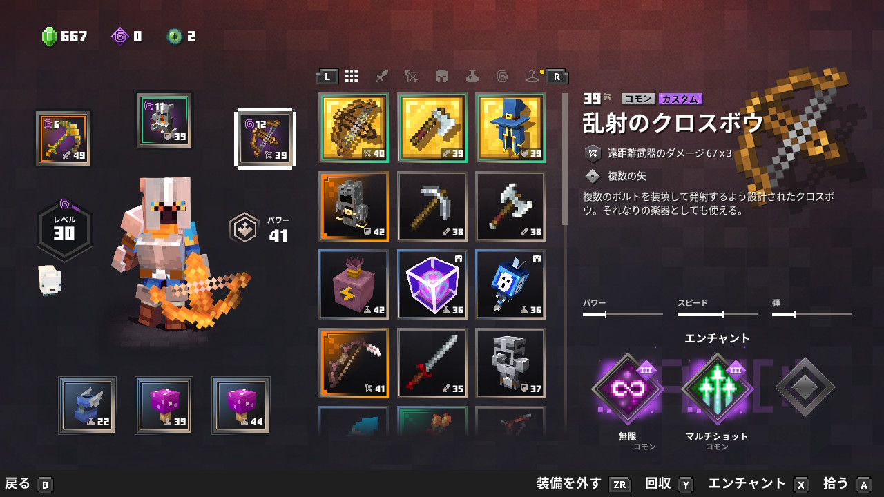 | ハープのクロスボウ | マルチショット | 虚無 | 連鎖反応 | 跳弾 |