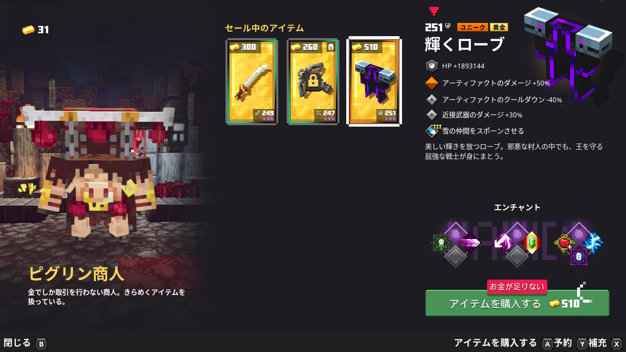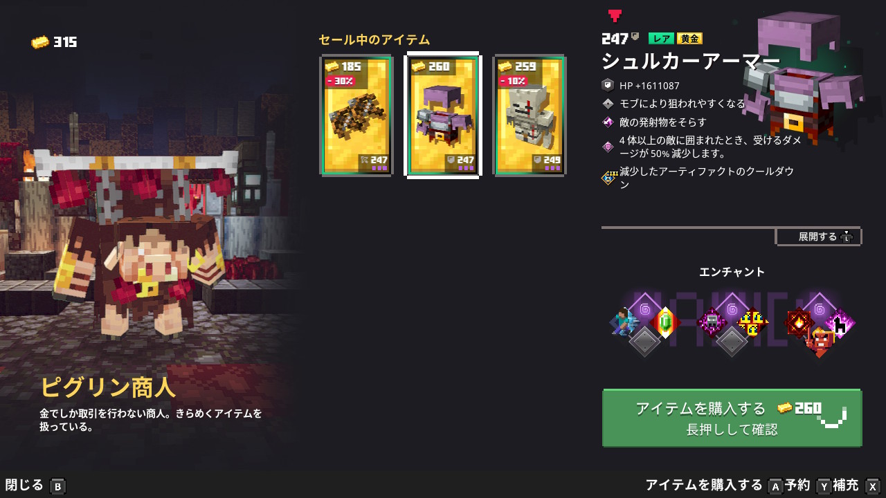 | ウィザーのアーマー | クールダウン | ポーションバリア | ヘルスシナジー | 幸運の海 |