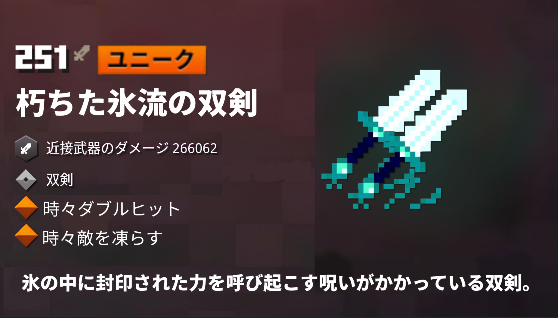 氷の中に封印された力を呼び起こす呪いがかかっている双剣。