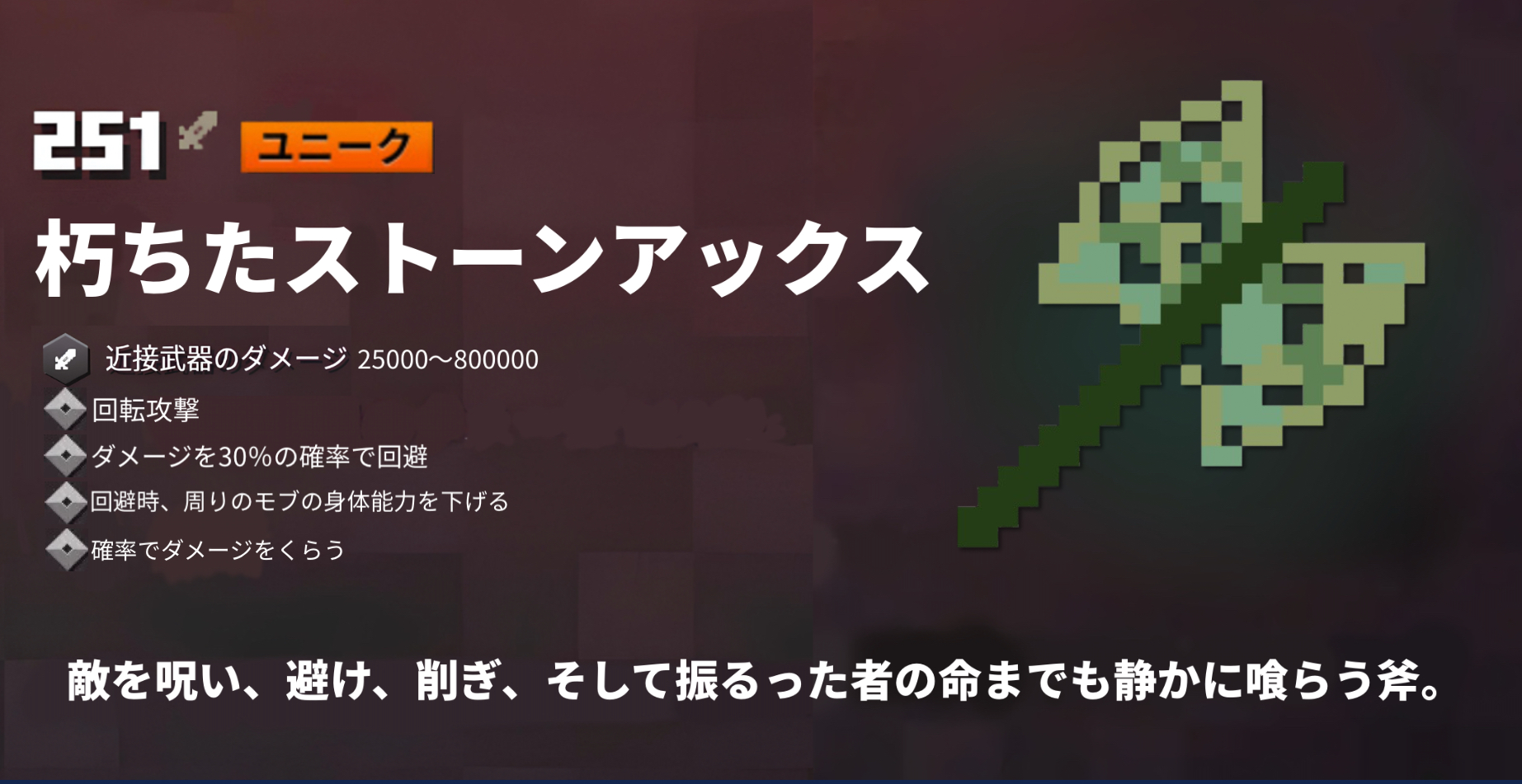 斧とクワが重なった武器。通称aaaa。