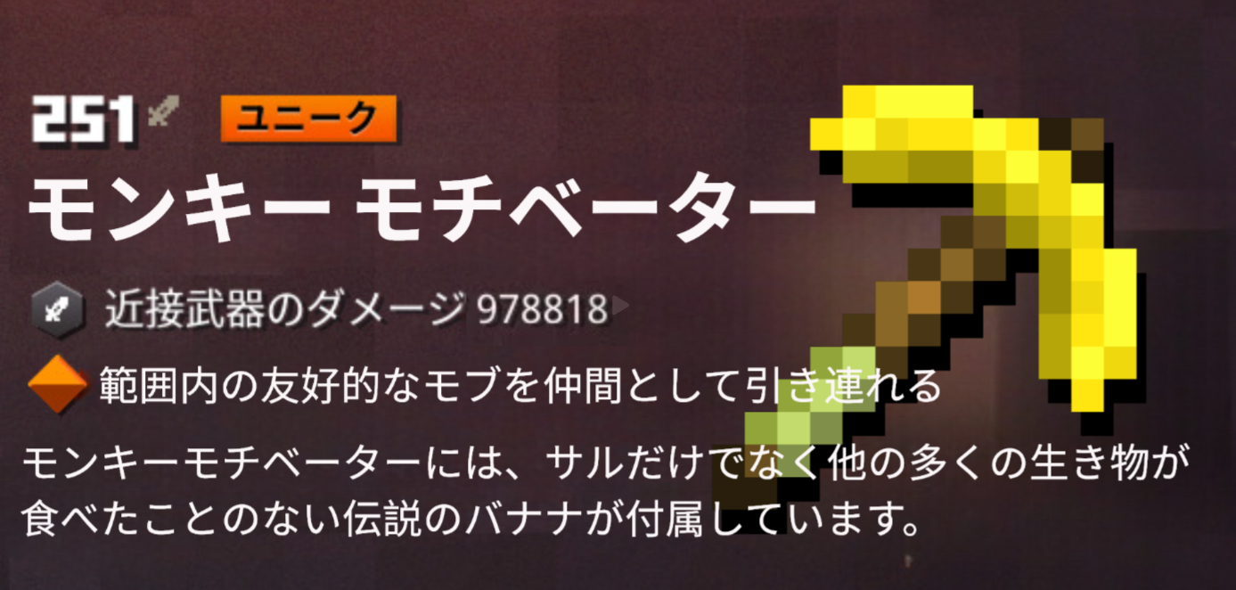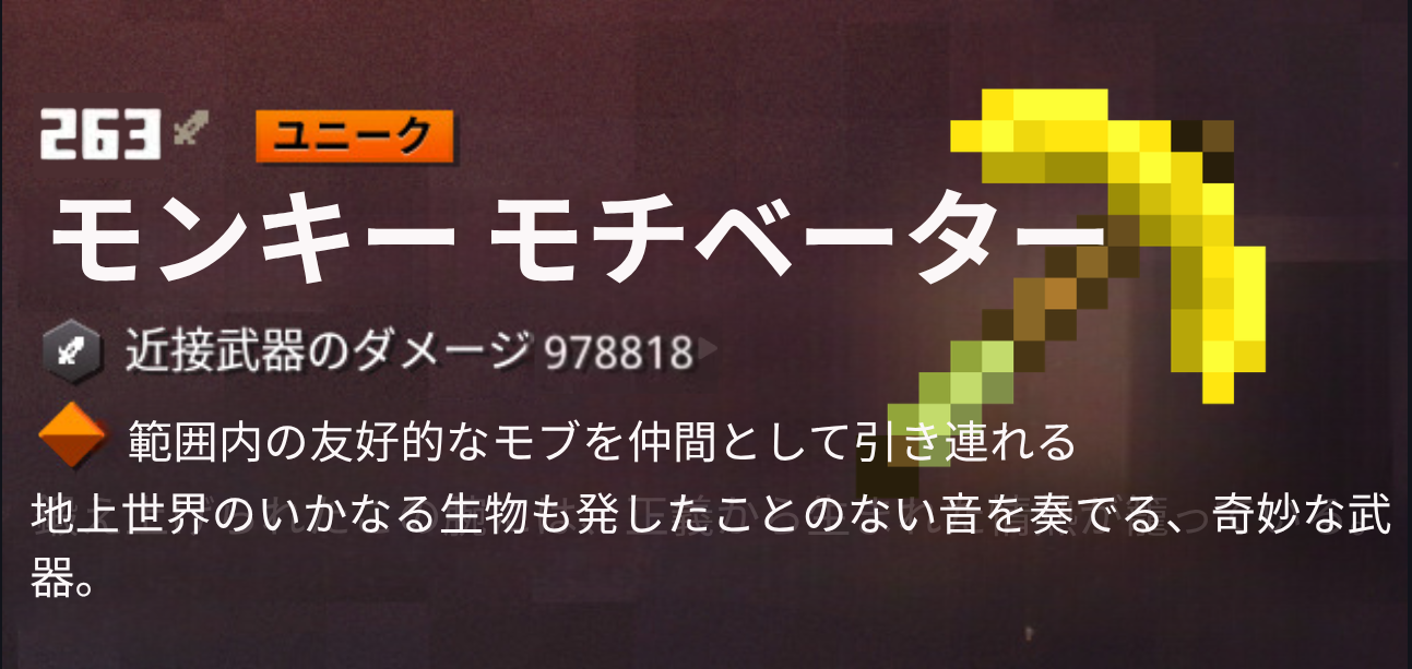 モンキーモチベーターは、Jungle Awakensで追加予定だったユニーク武器で、