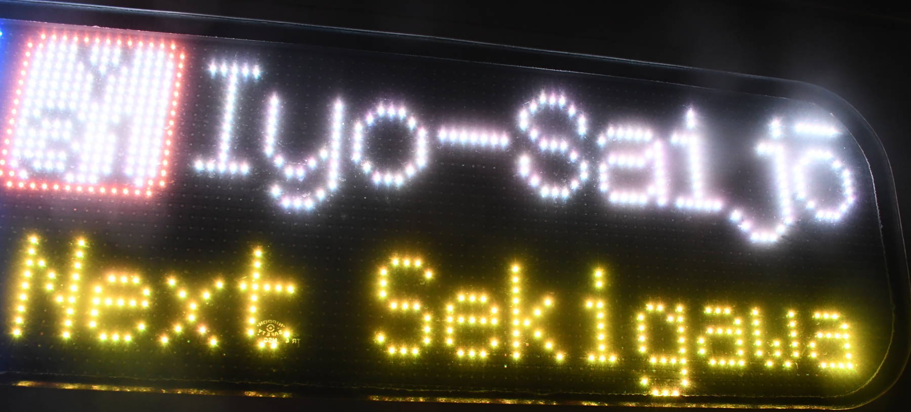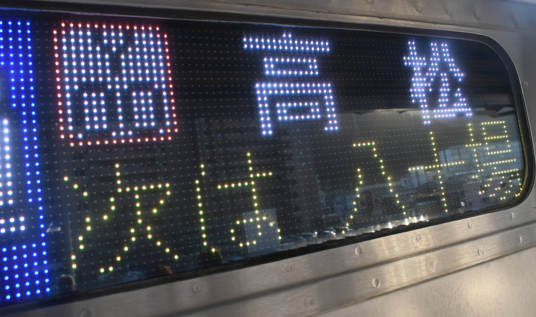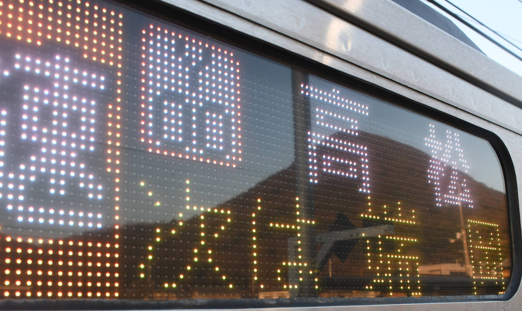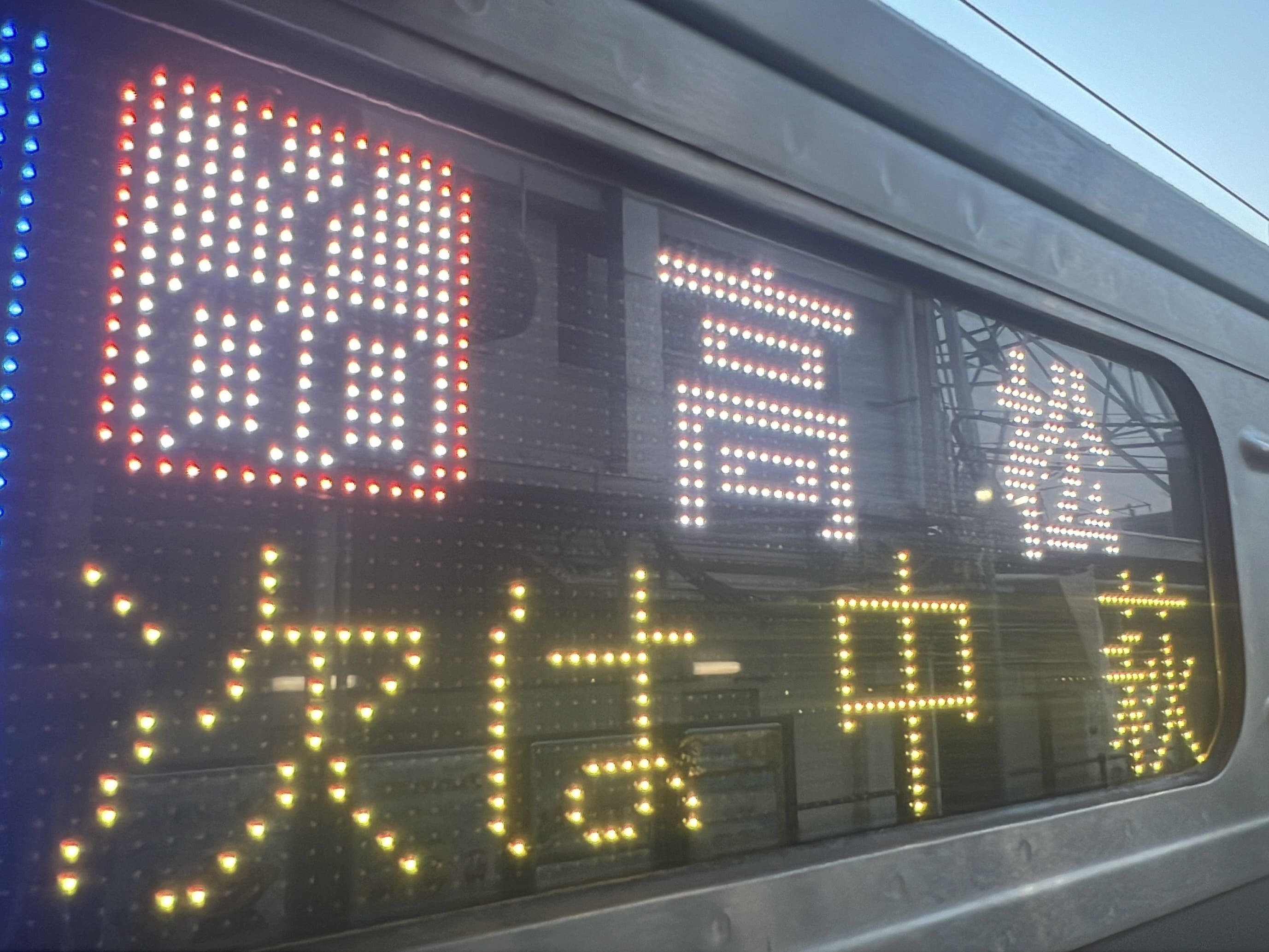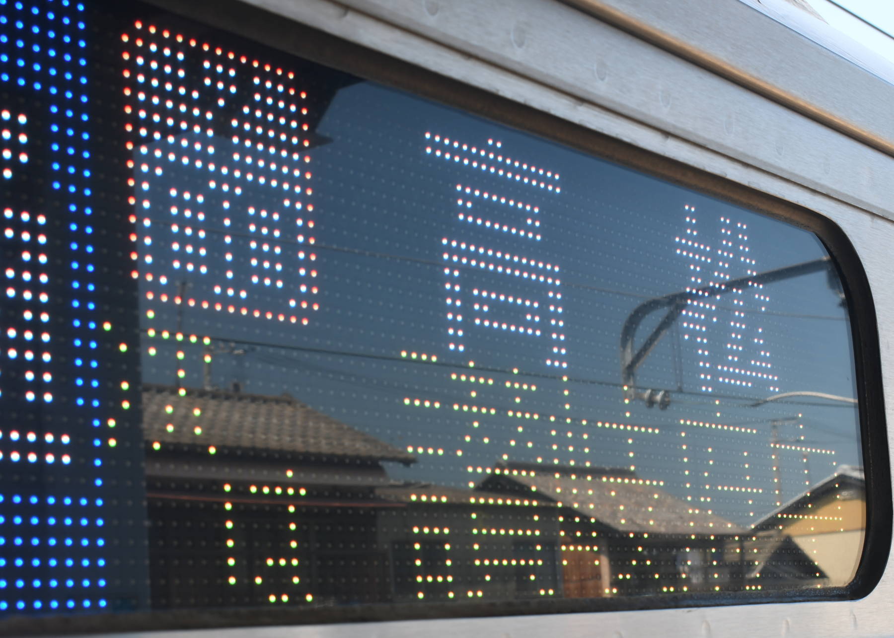 6000系は正面から撮影すると端のドットが隠れるため極端に斜めから撮影しています。