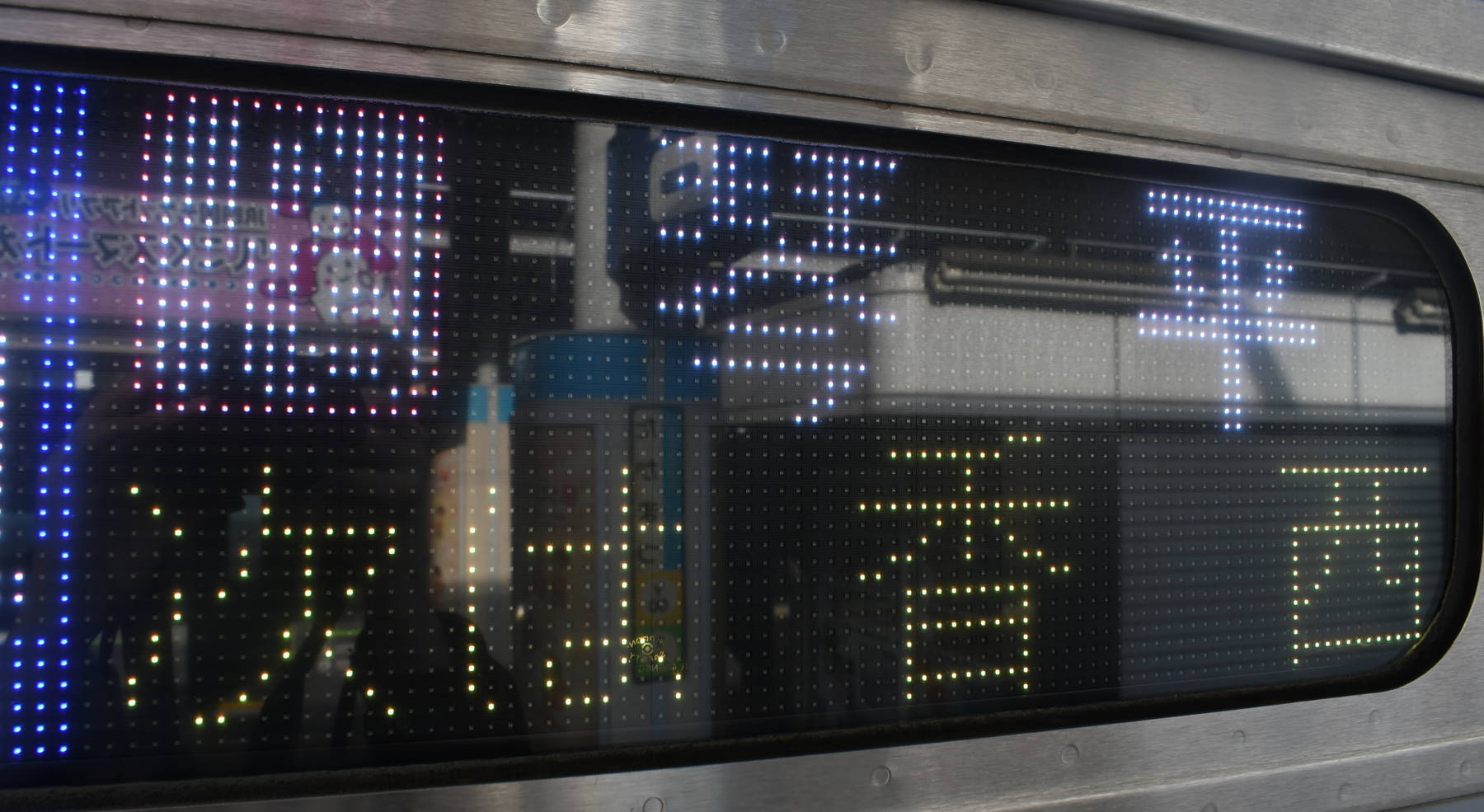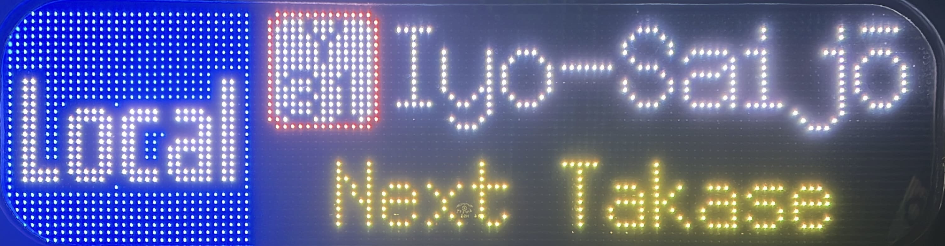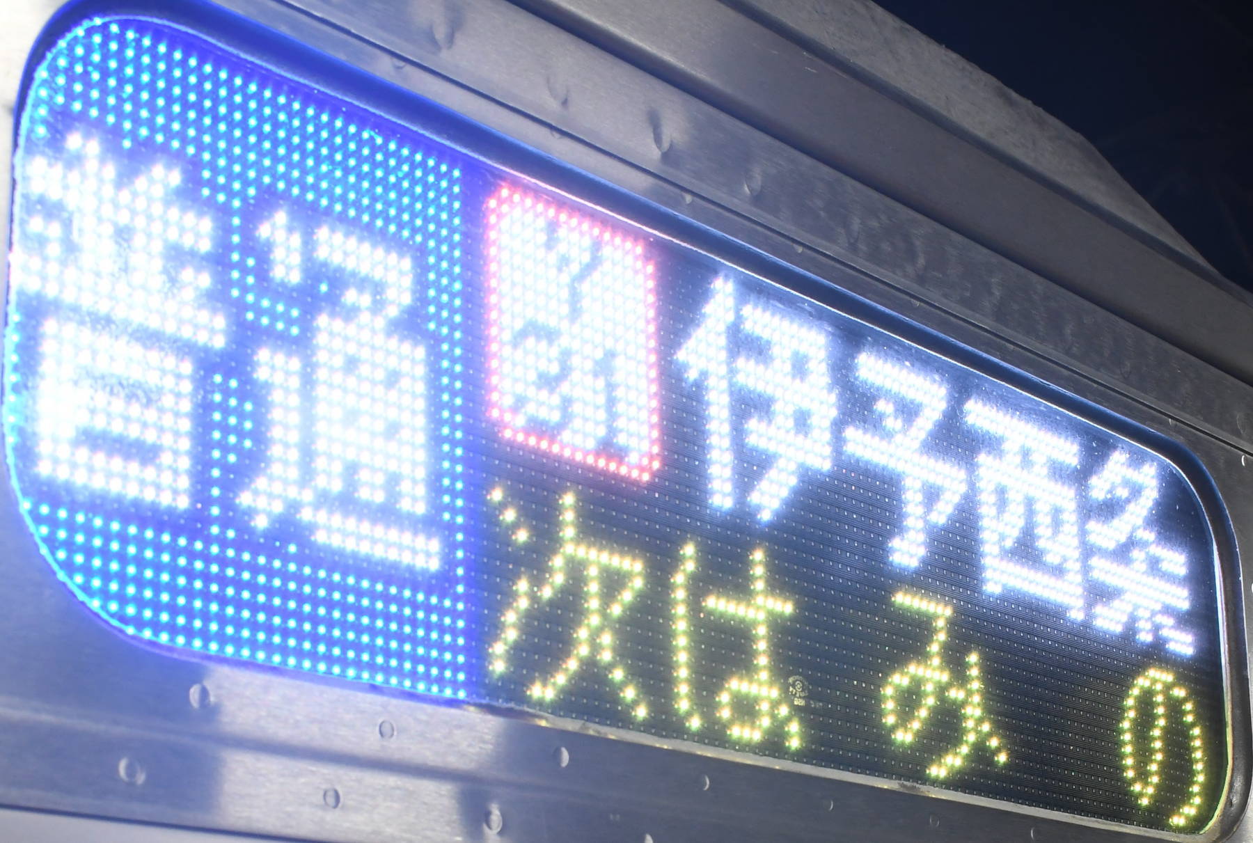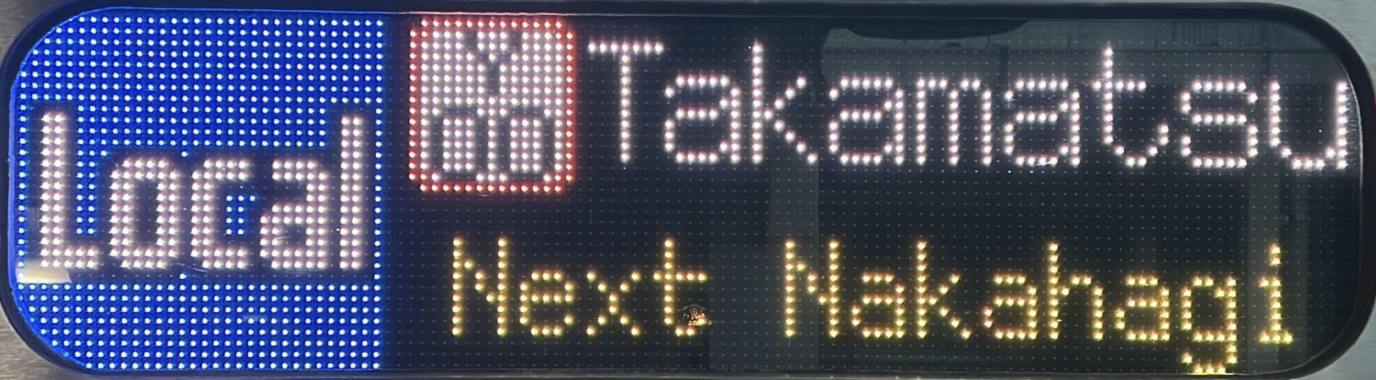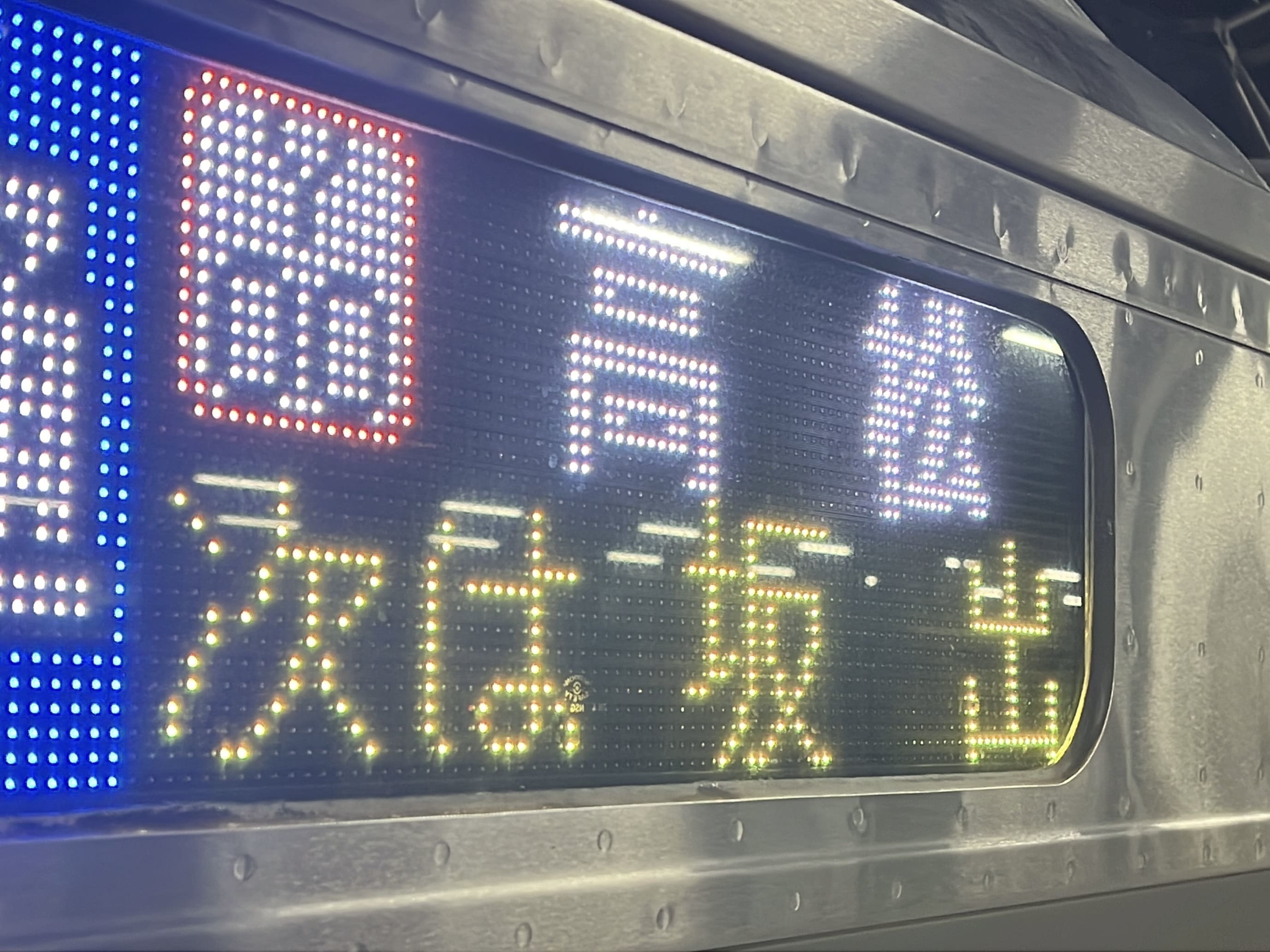 6000系は正面から撮影すると端のドットが隠れるため極端に斜めから撮影しています。
