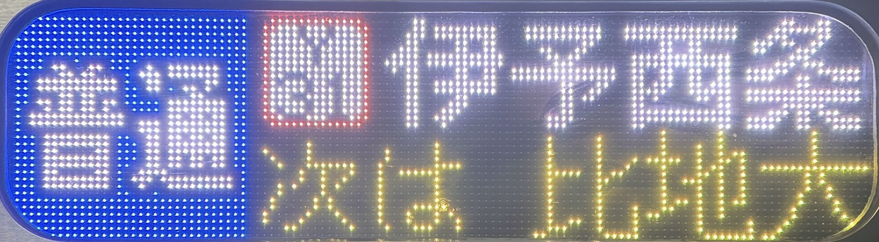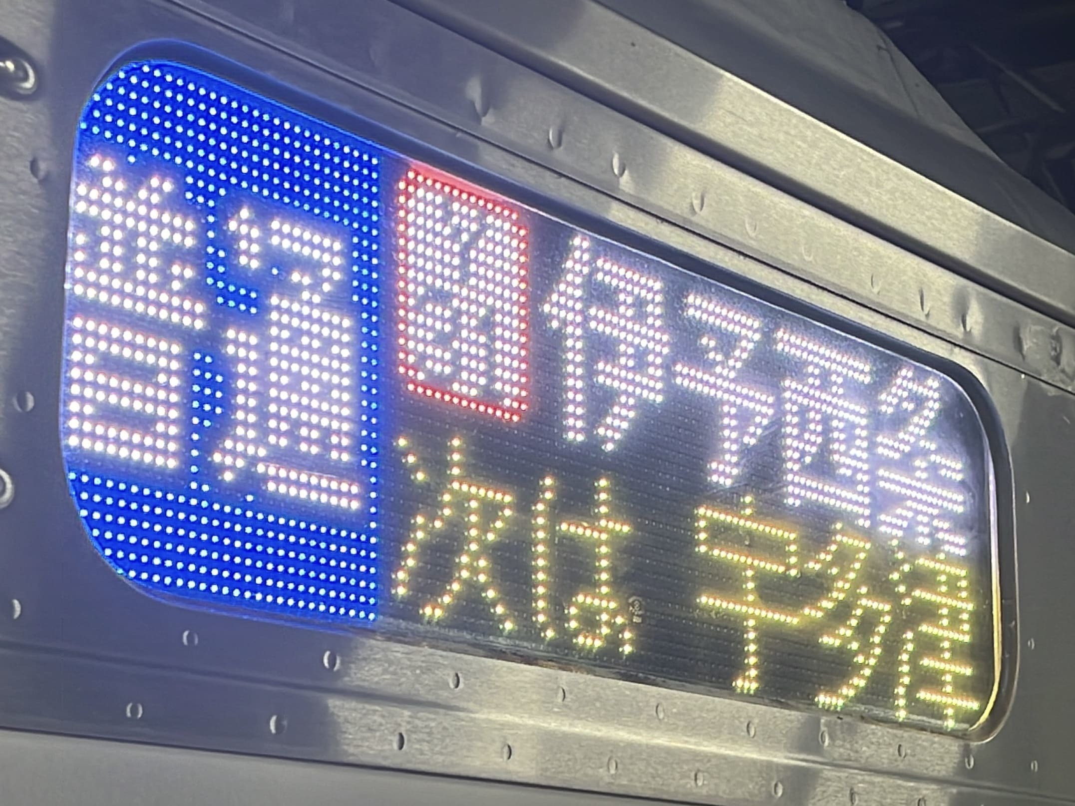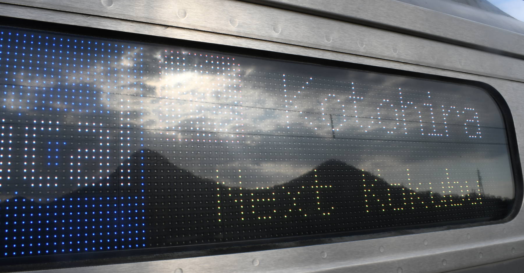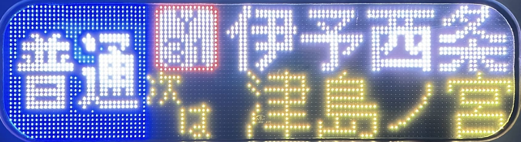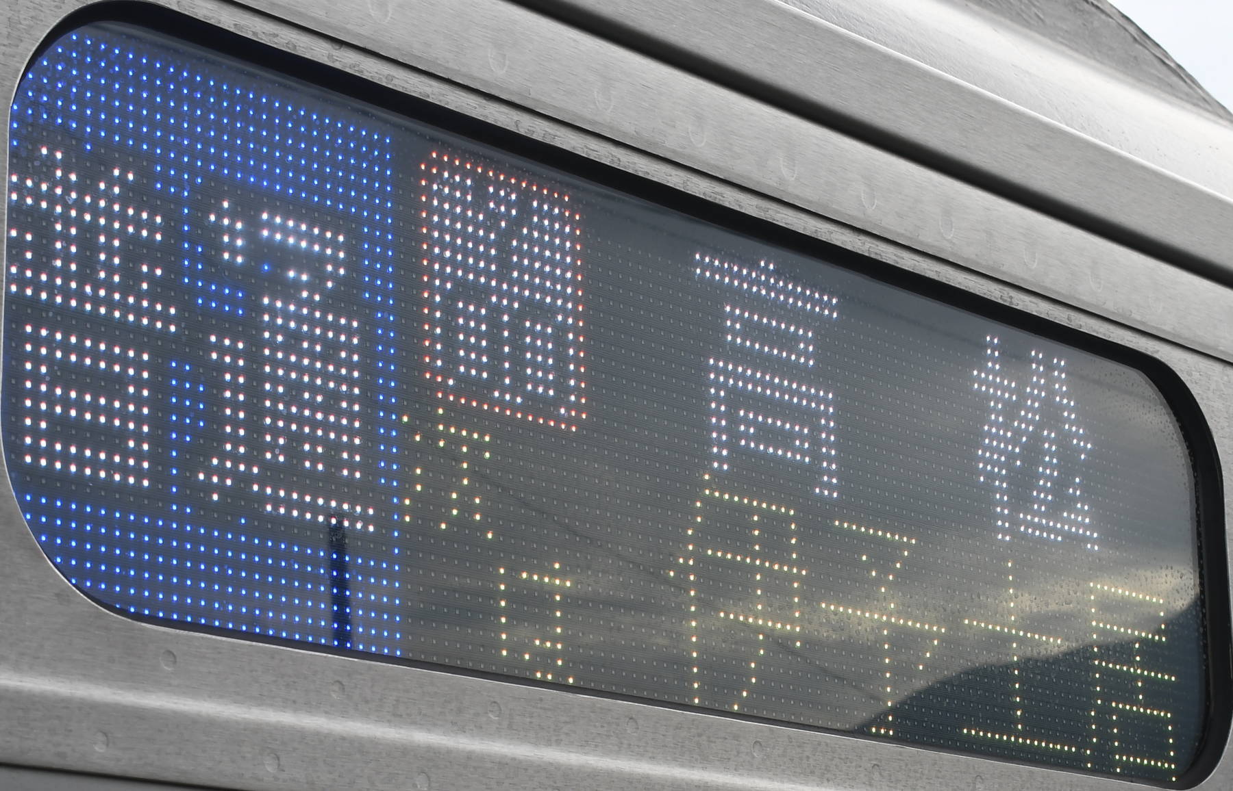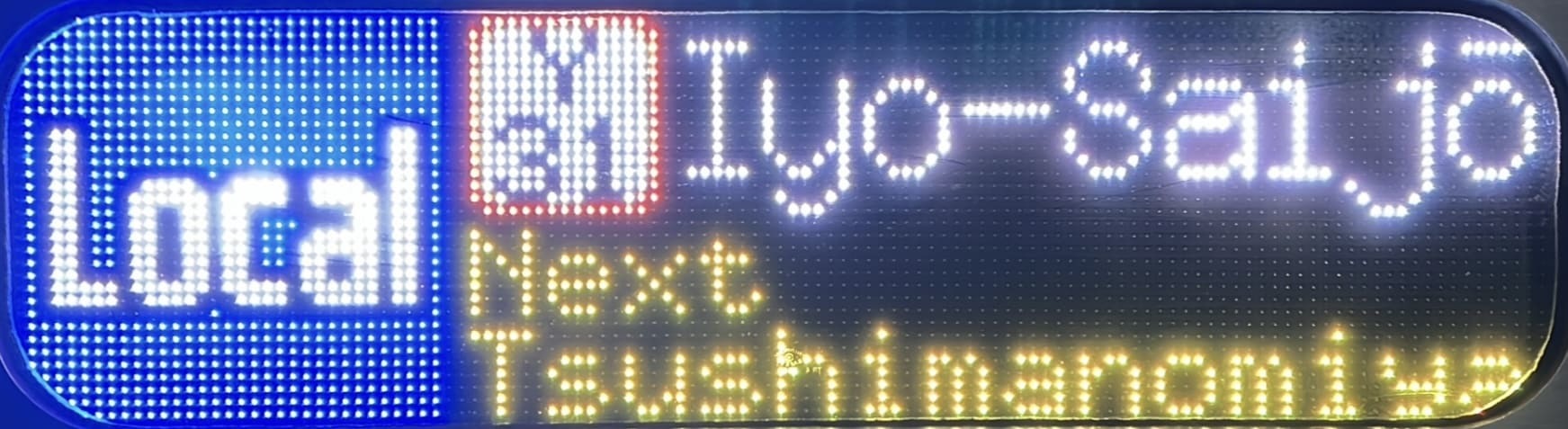 6000系は正面から撮影すると端のドットが隠れるため極端に斜めから撮影しています。