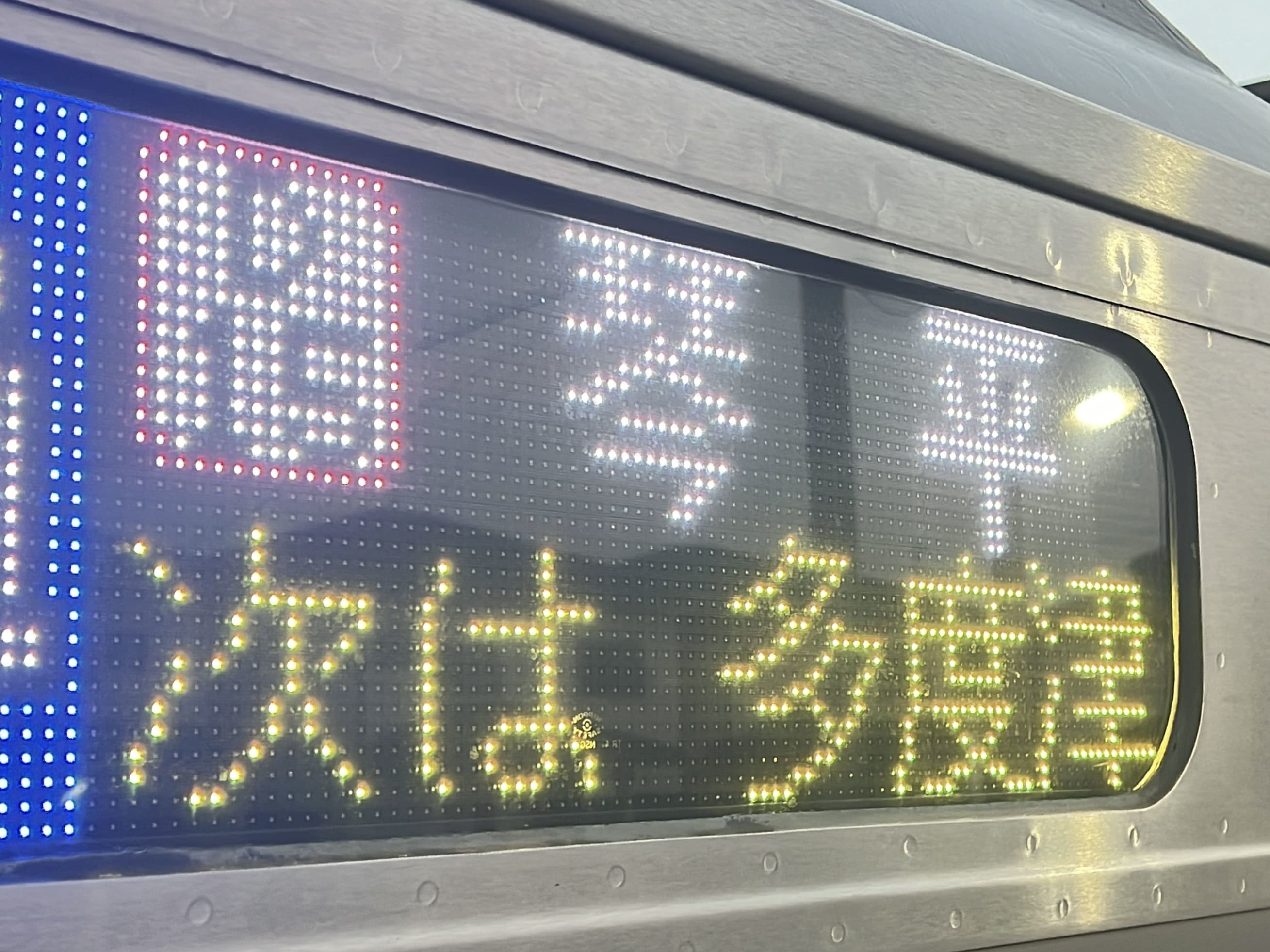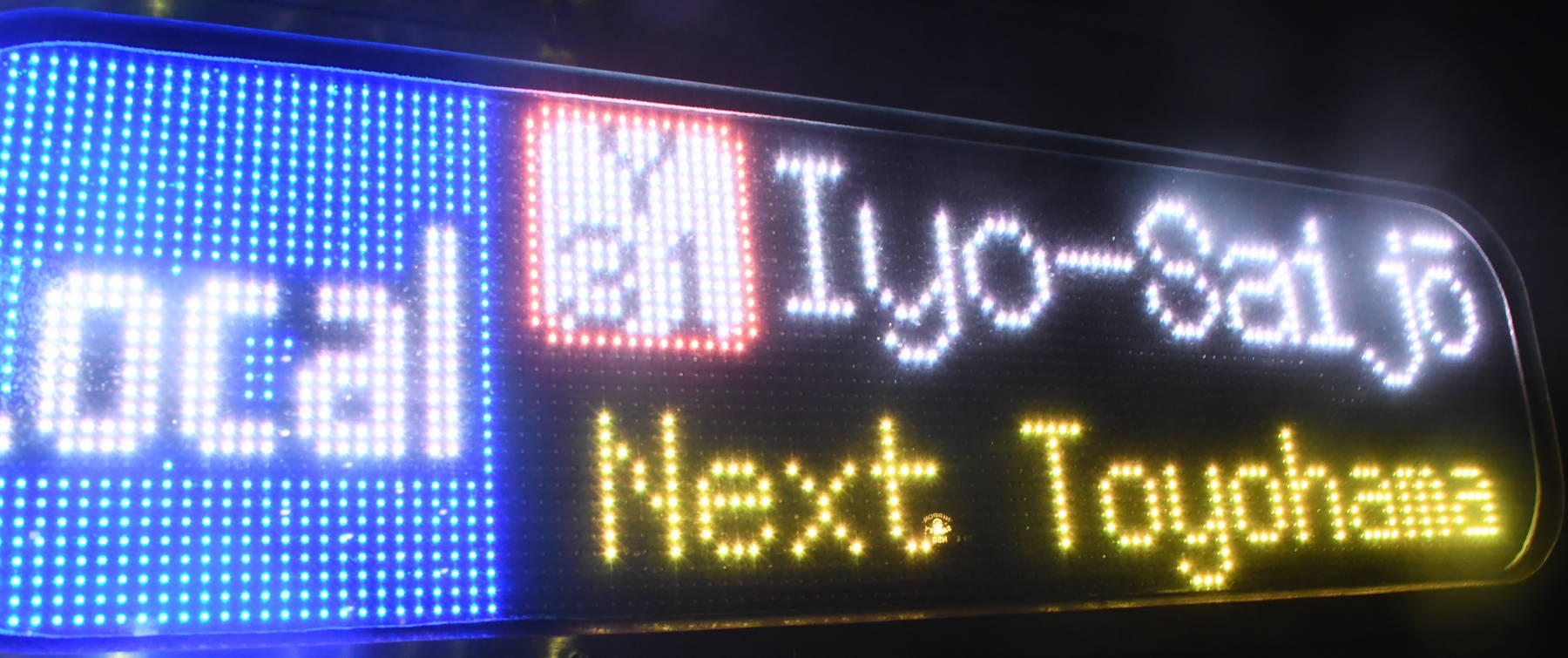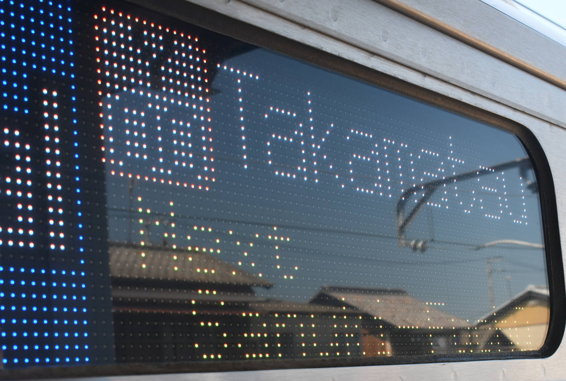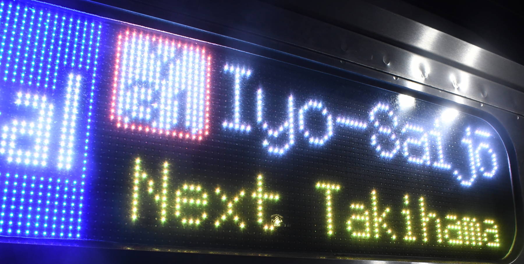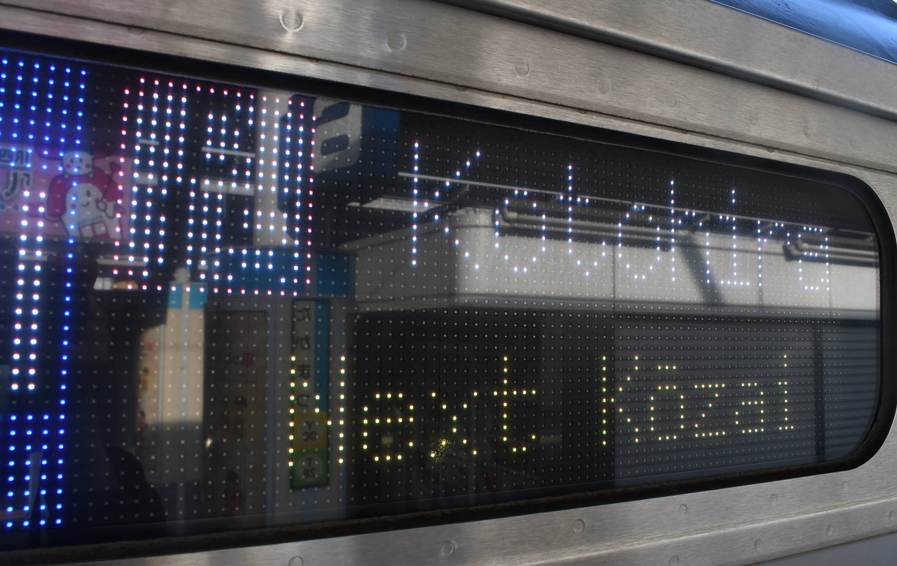 6000系は正面から撮影すると端のドットが隠れるため極端に斜めから撮影しています。
