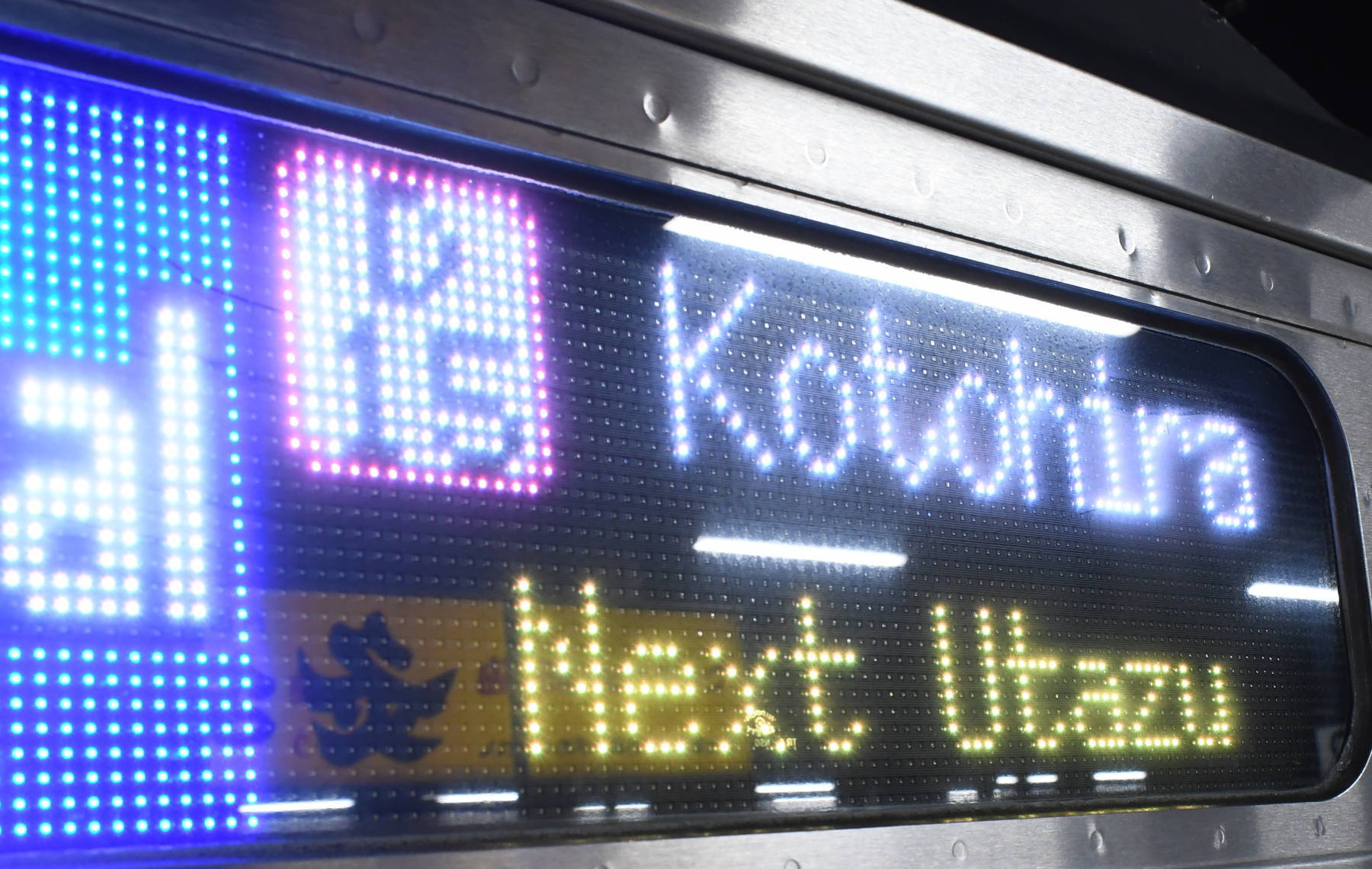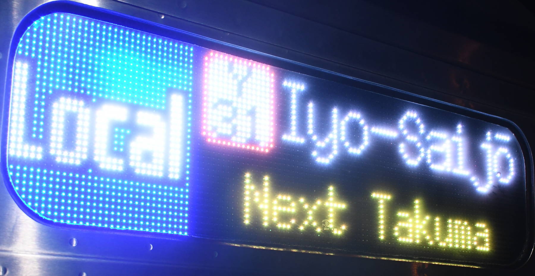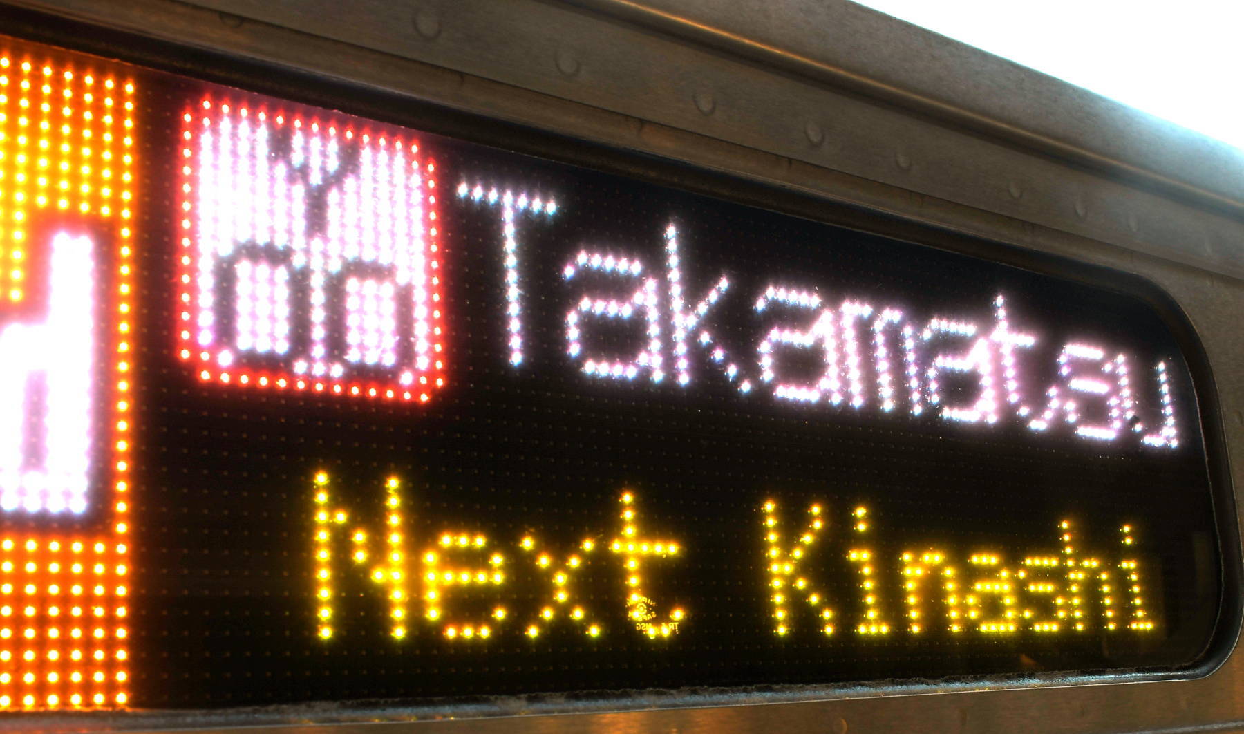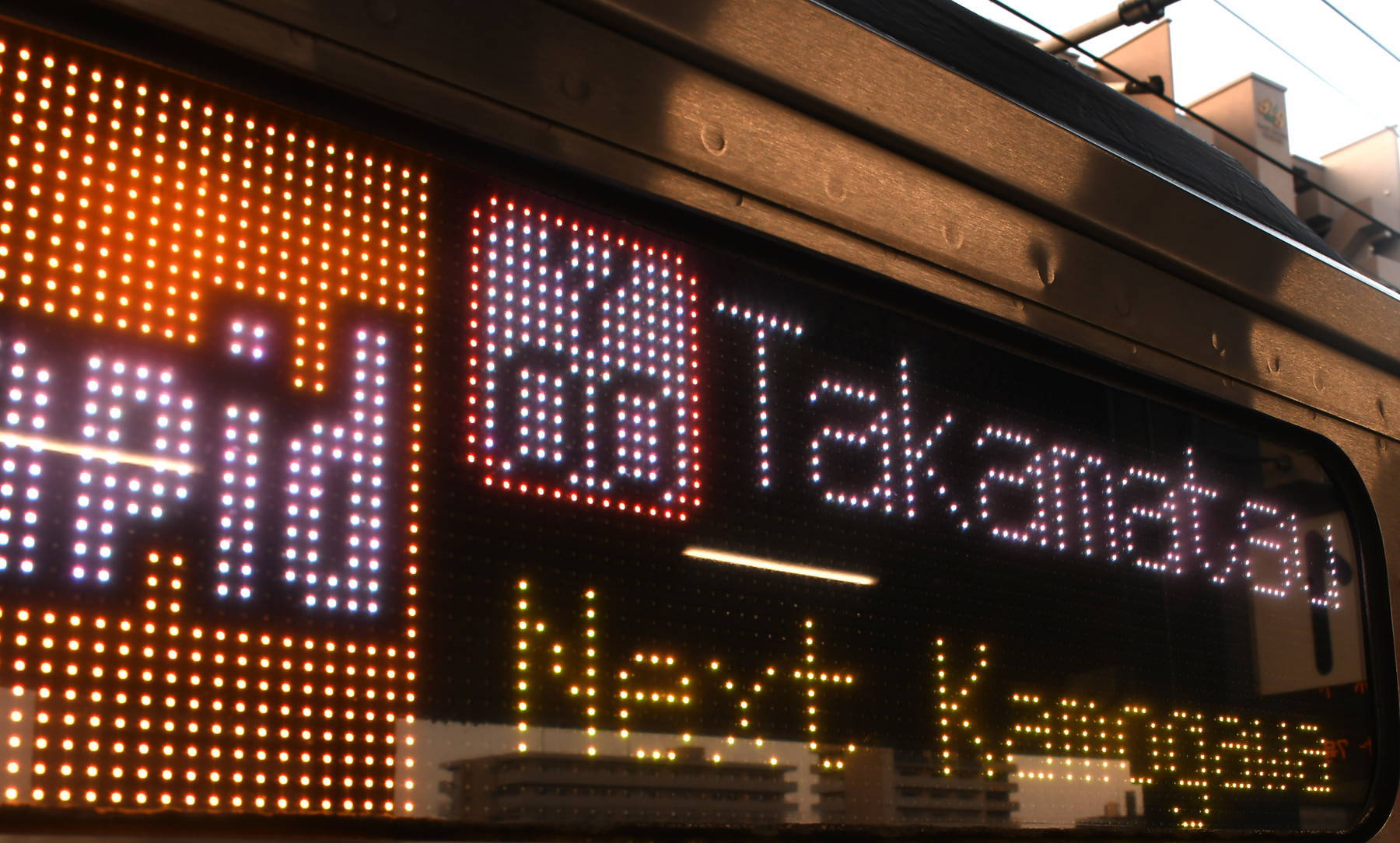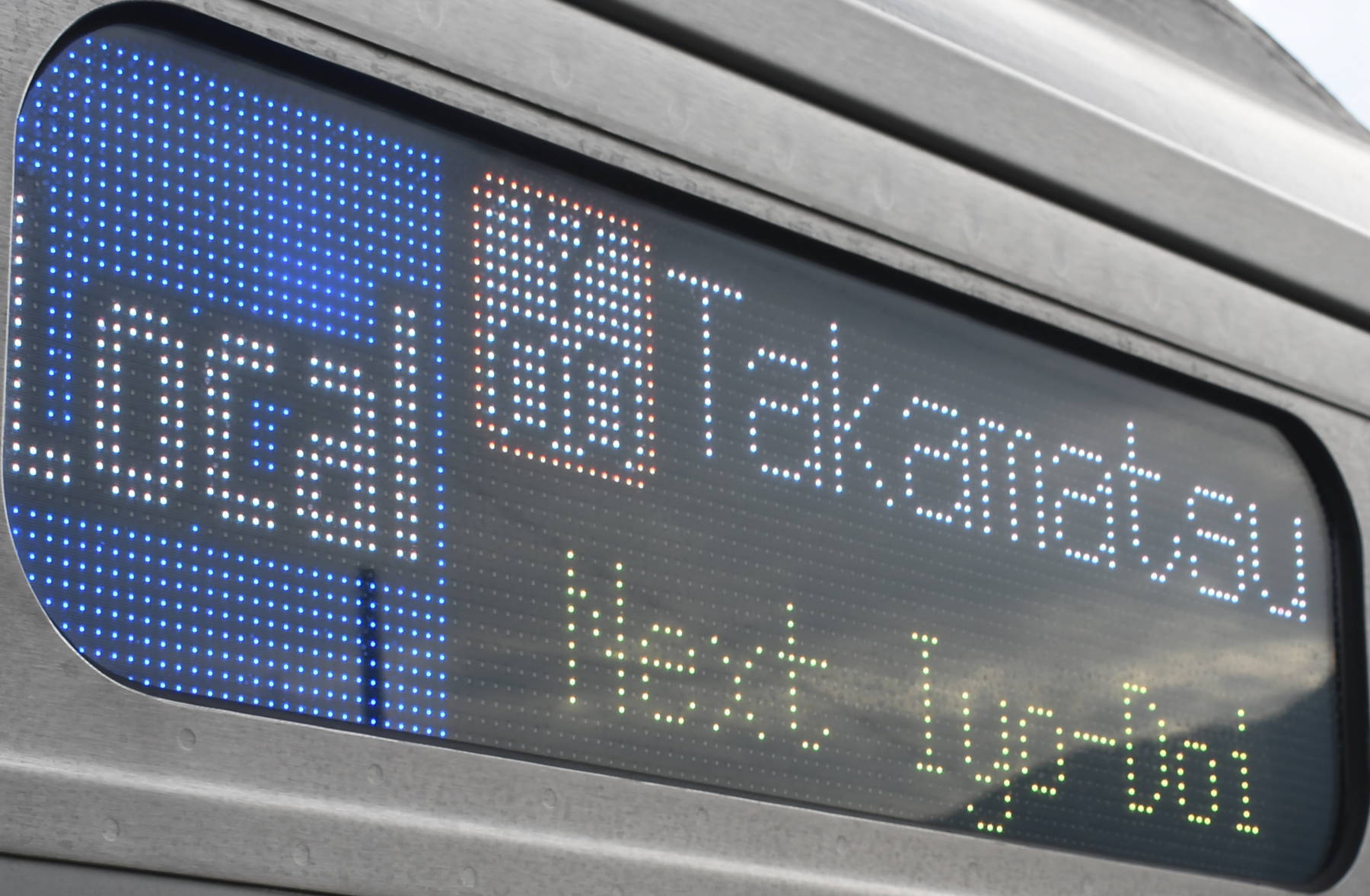 6000系は正面から撮影すると端のドットが隠れるため極端に斜めから撮影しています。
