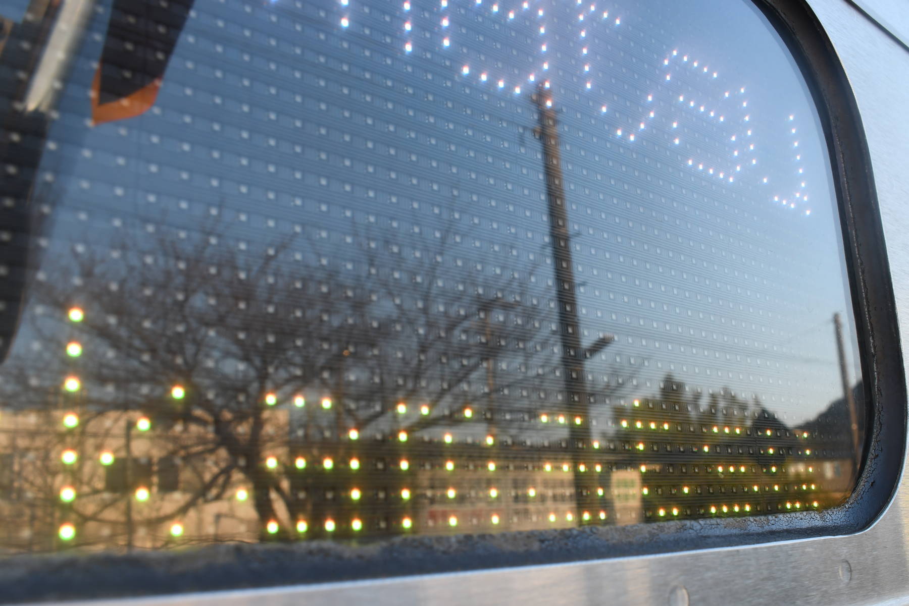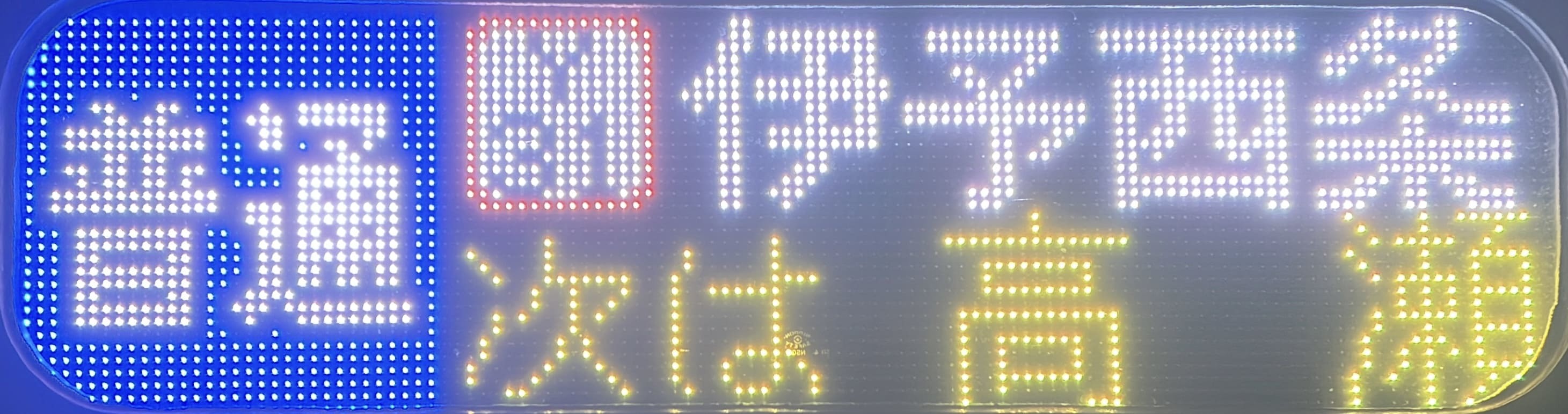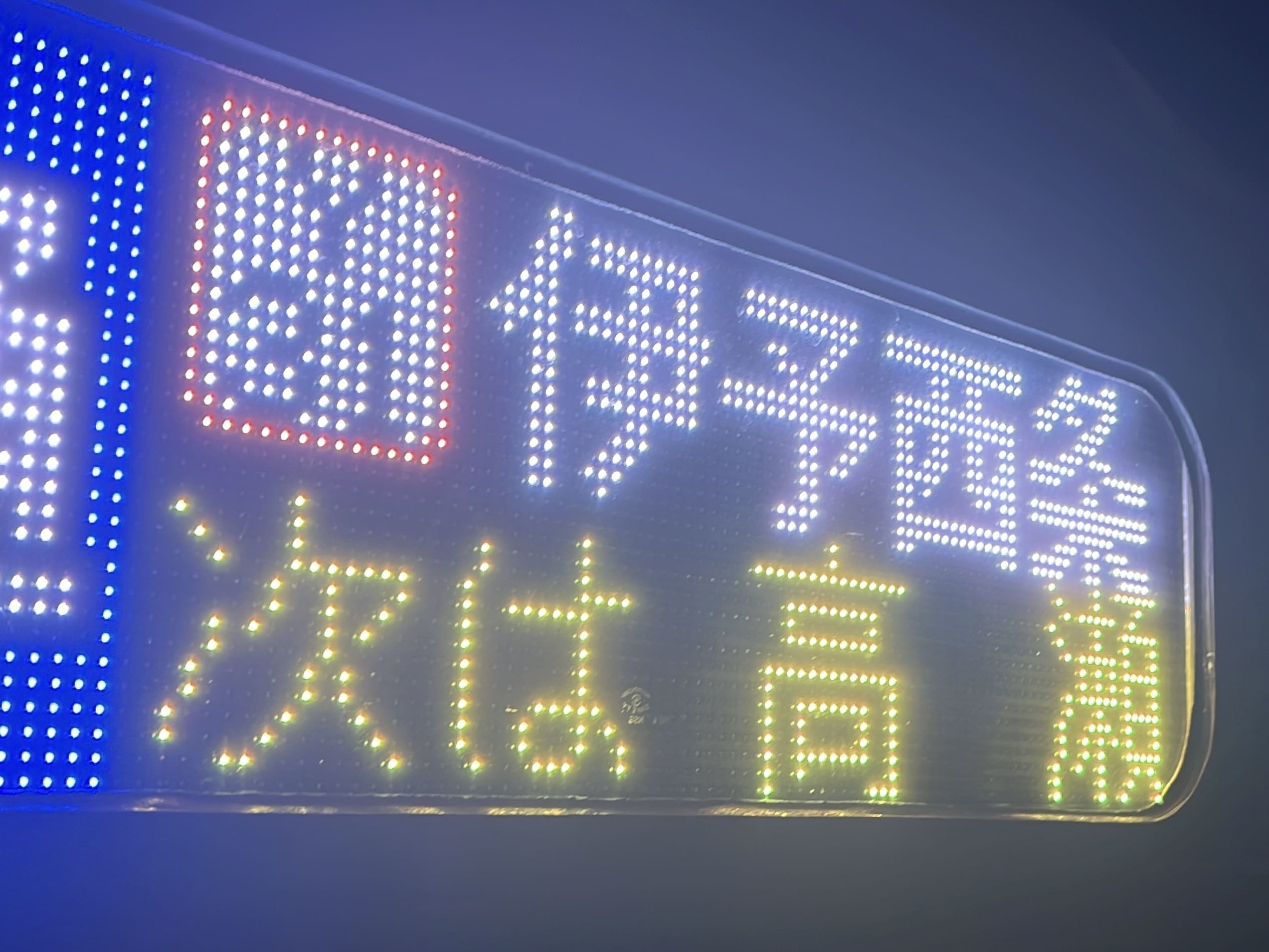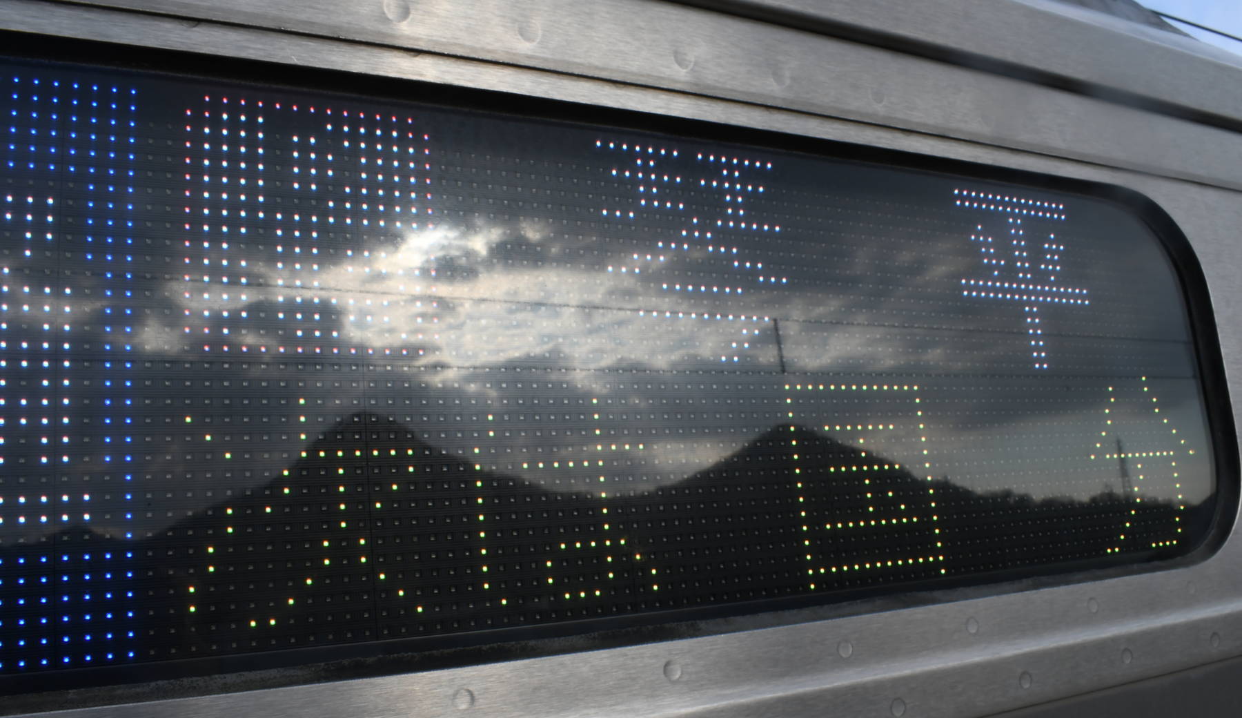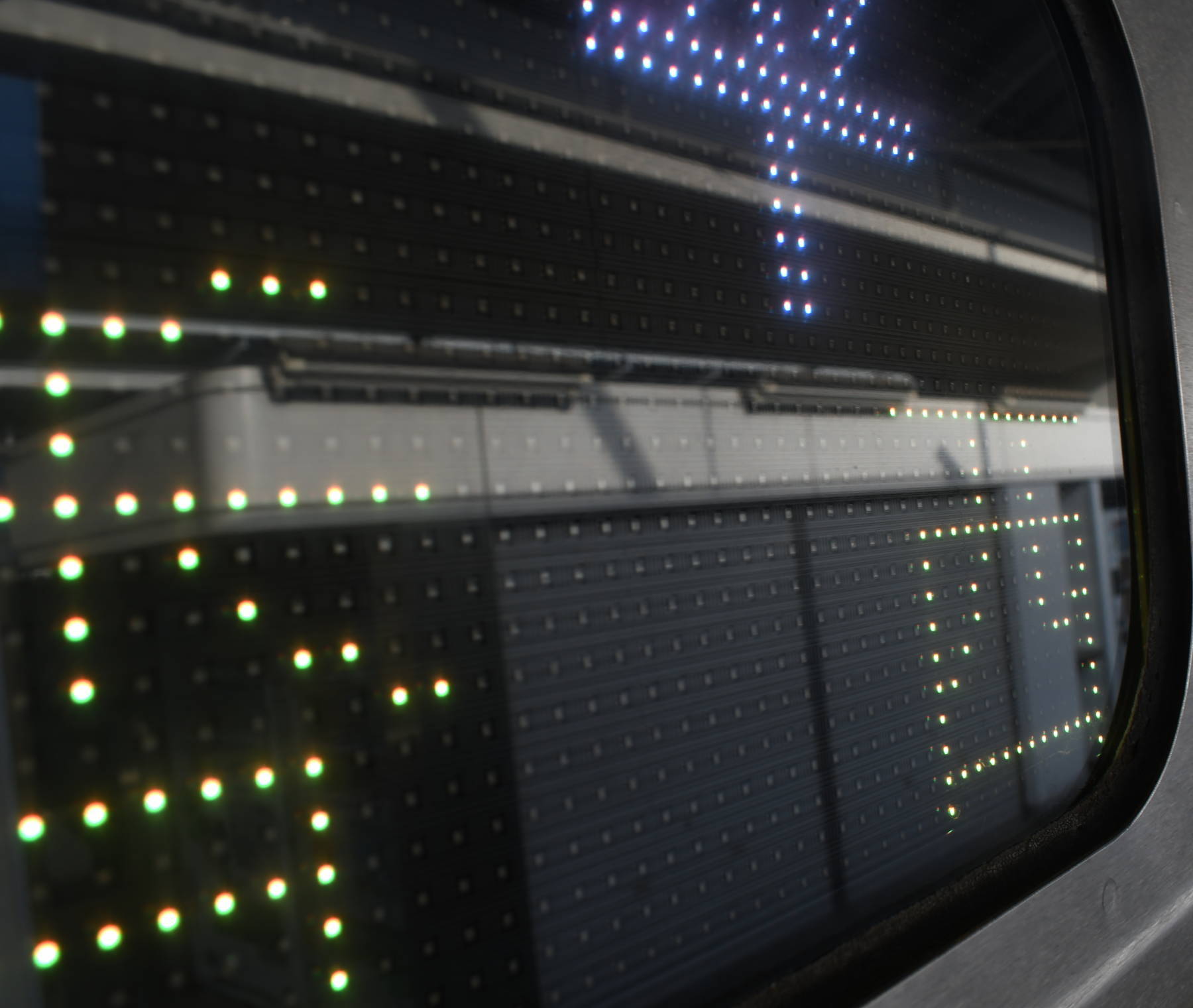 6000系は正面から撮影すると端のドットが隠れるため極端に斜めから撮影しています。