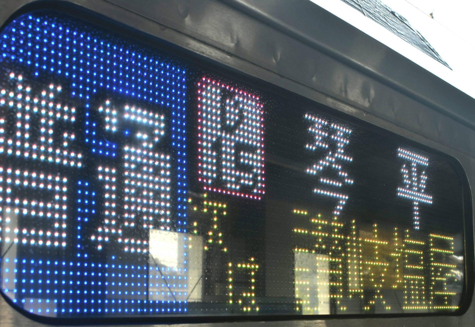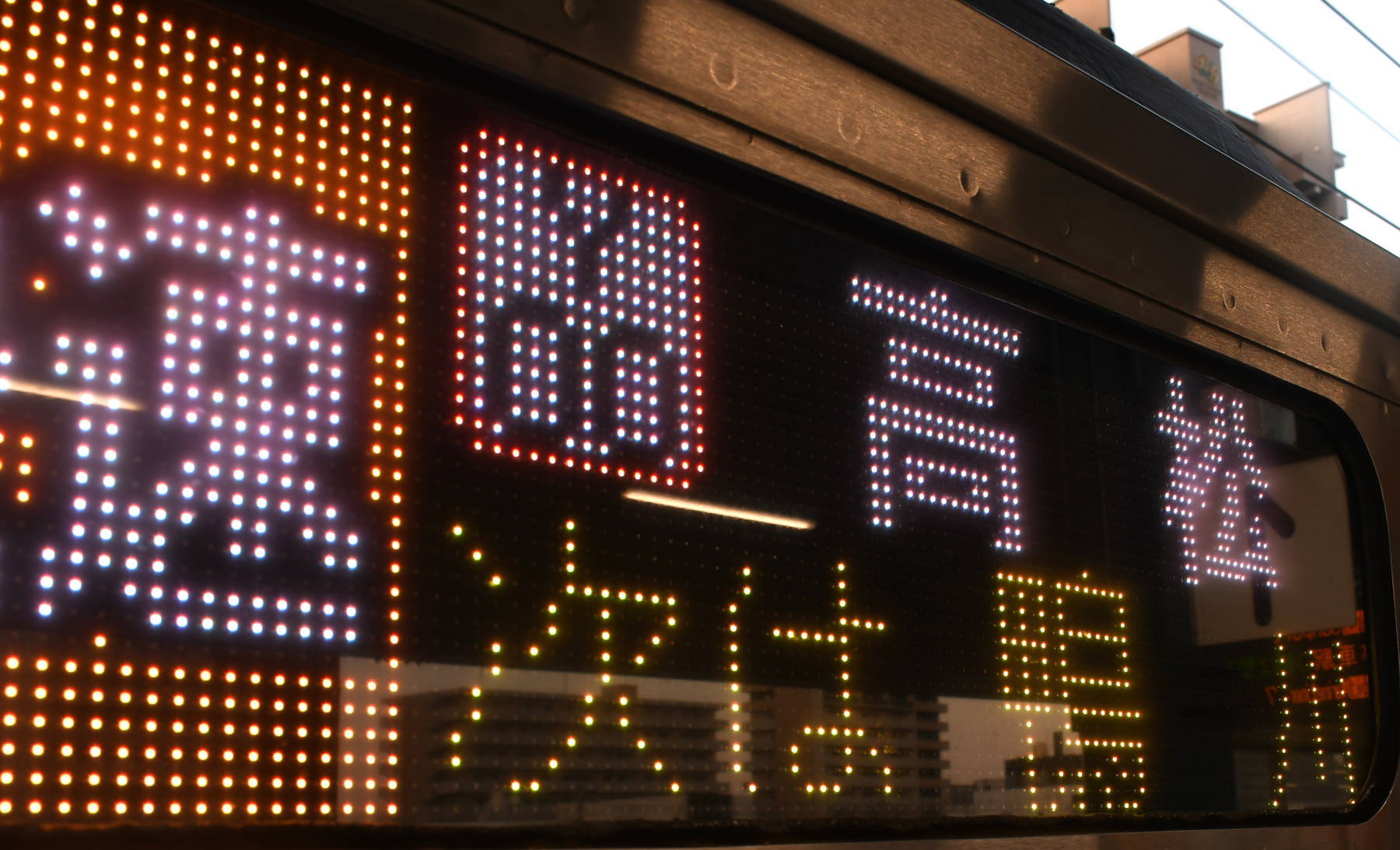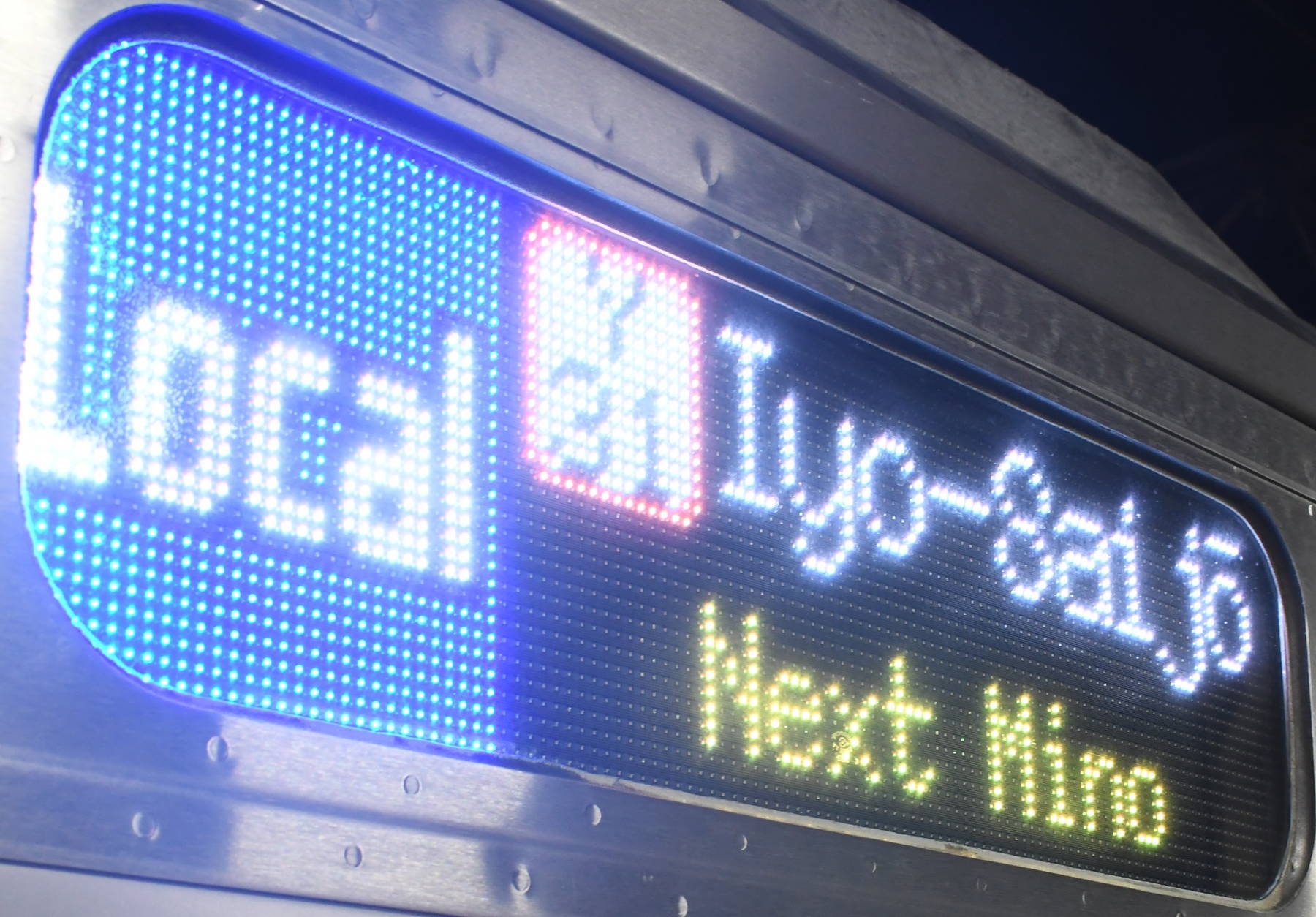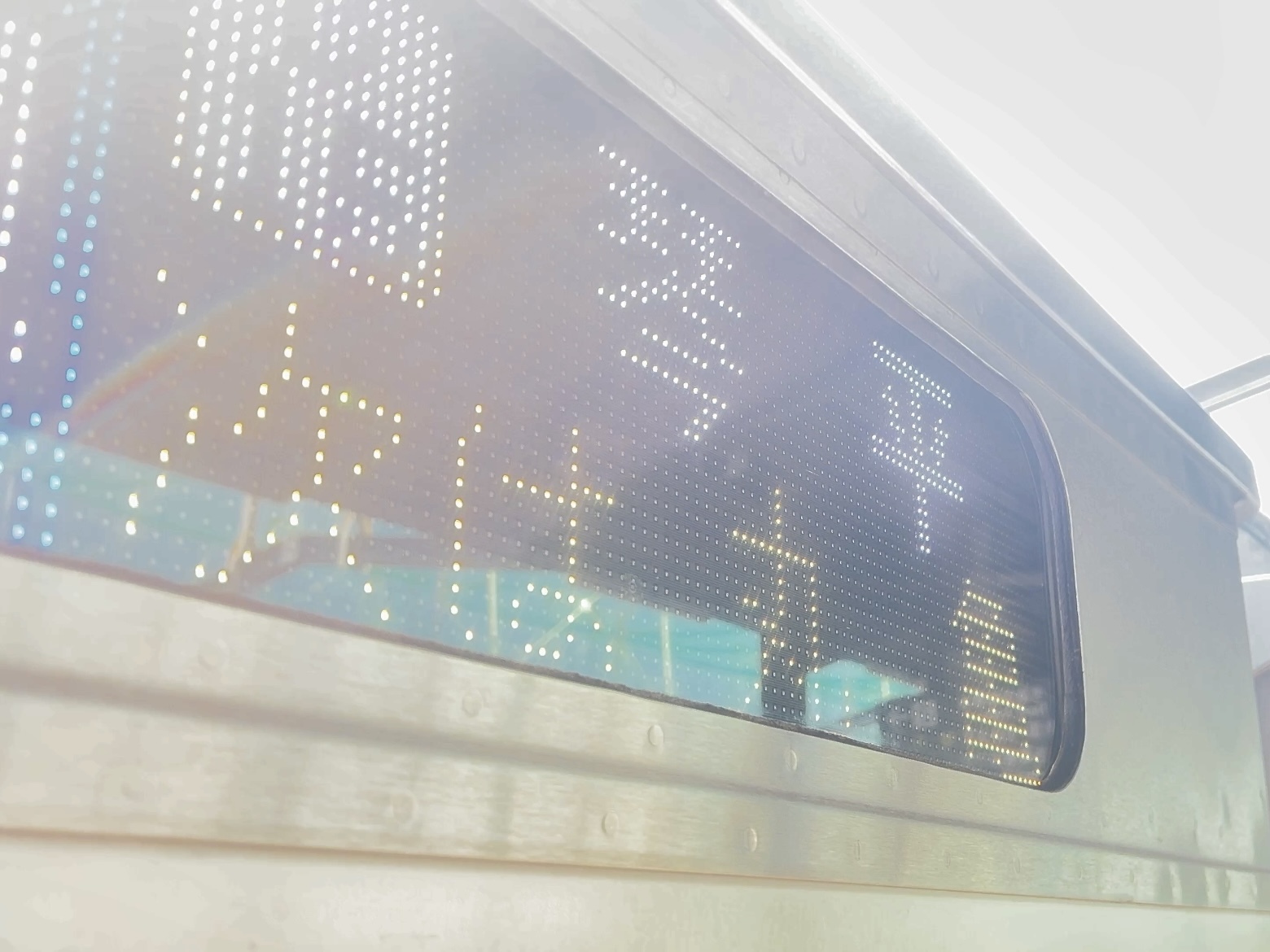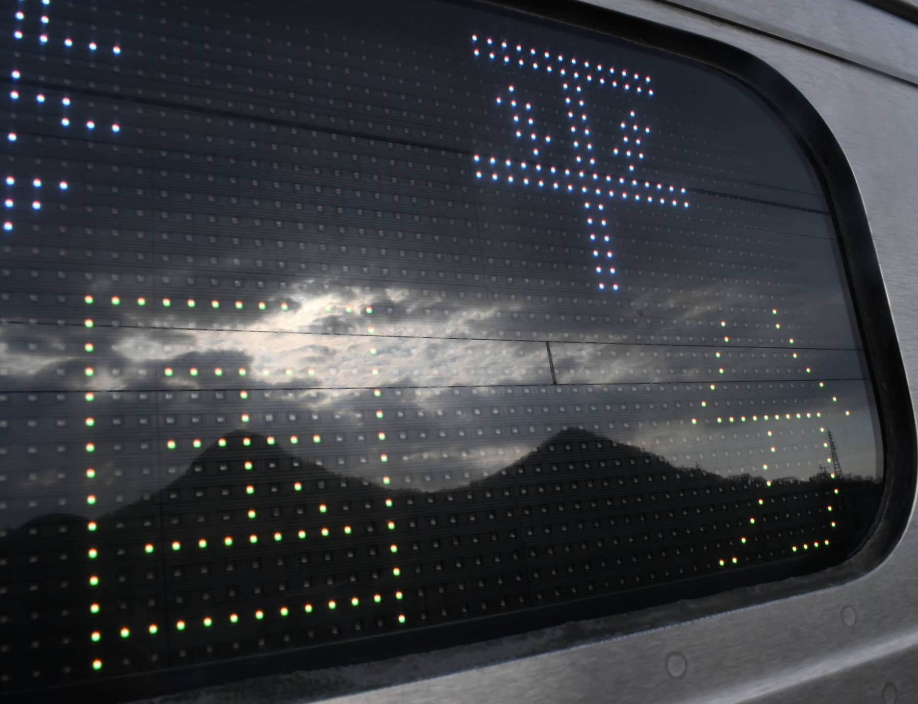 6000系は正面から撮影すると端のドットが隠れるため極端に斜めから撮影しています。