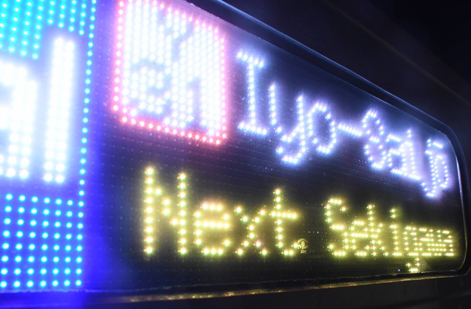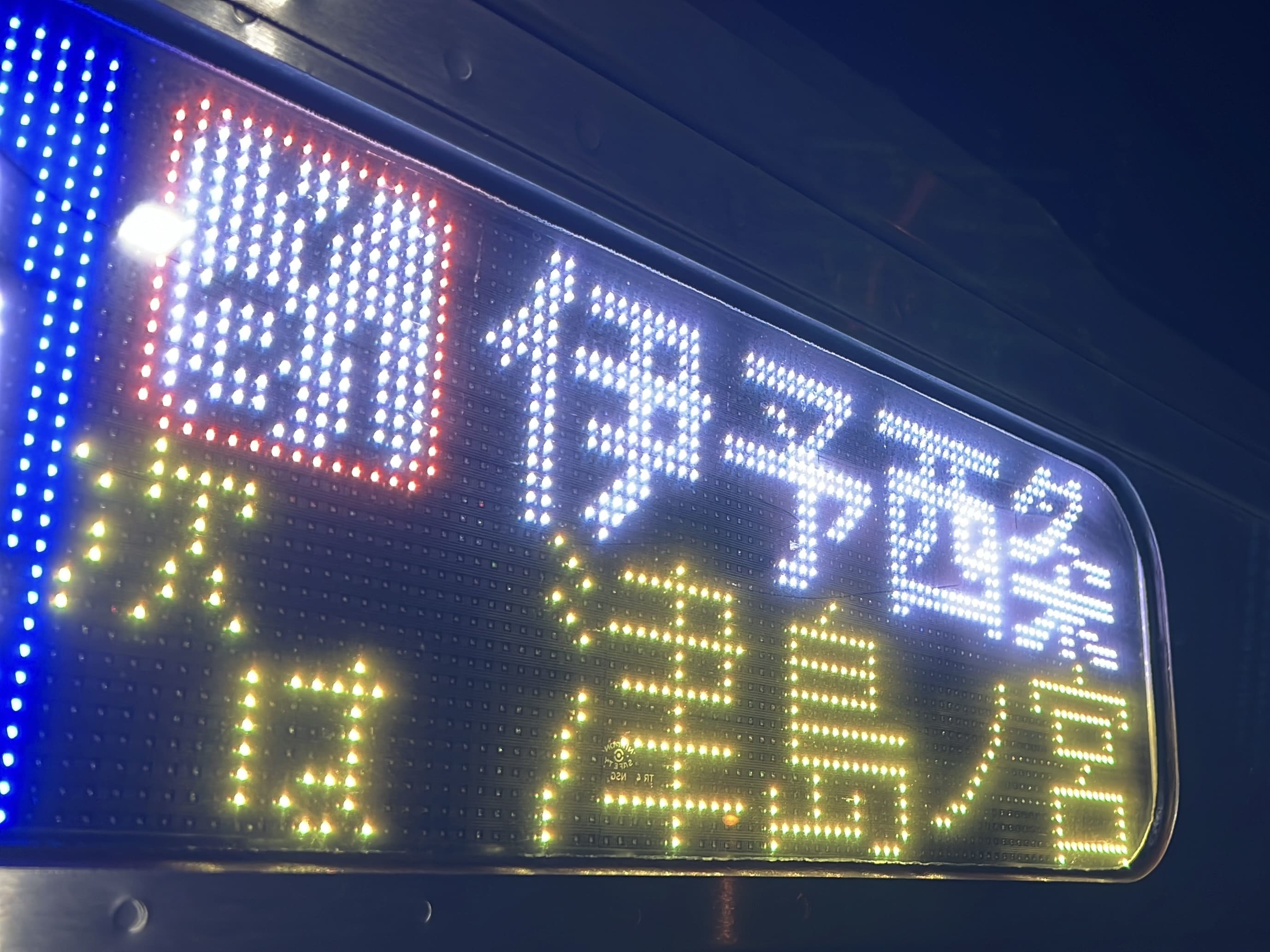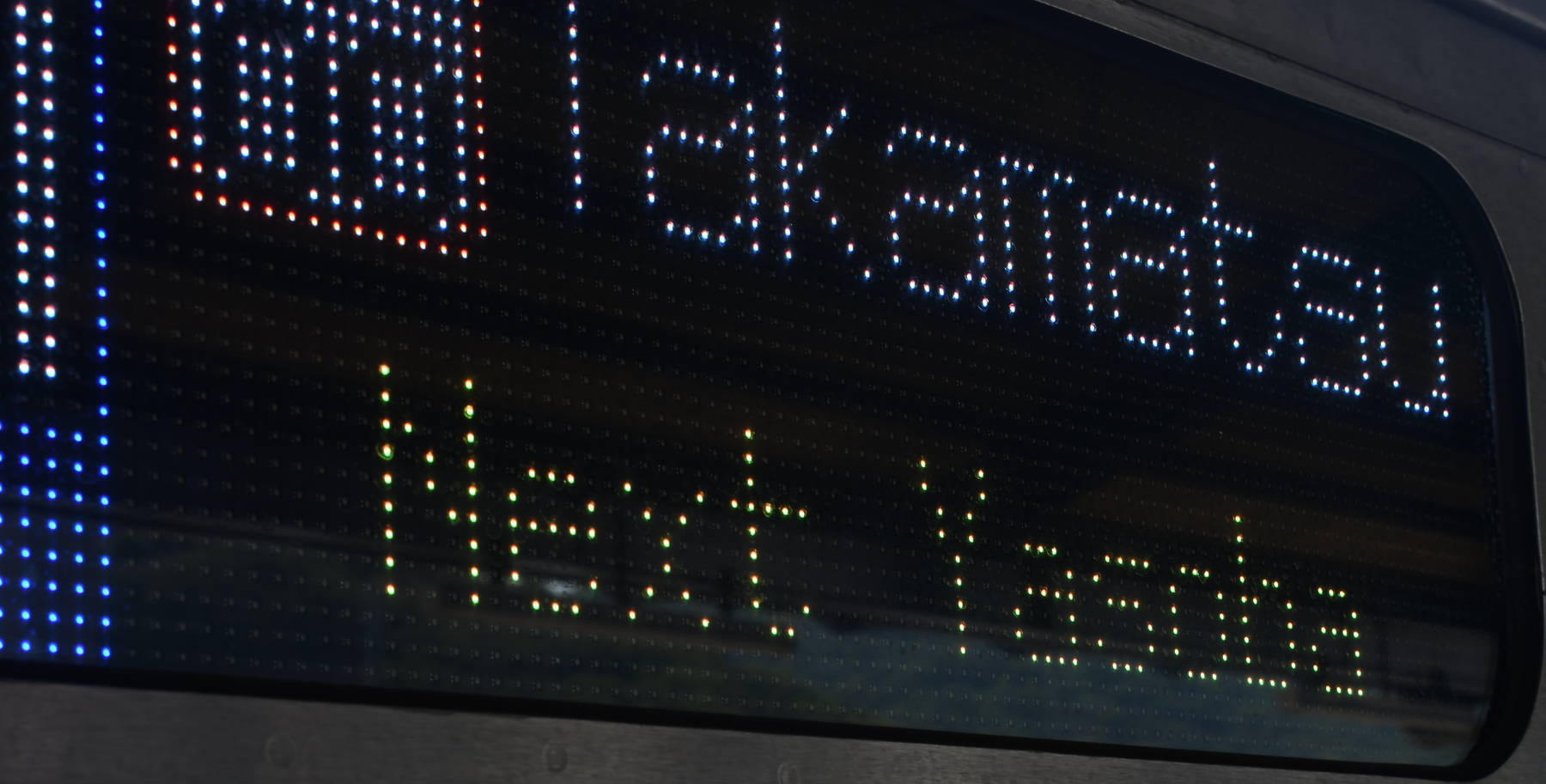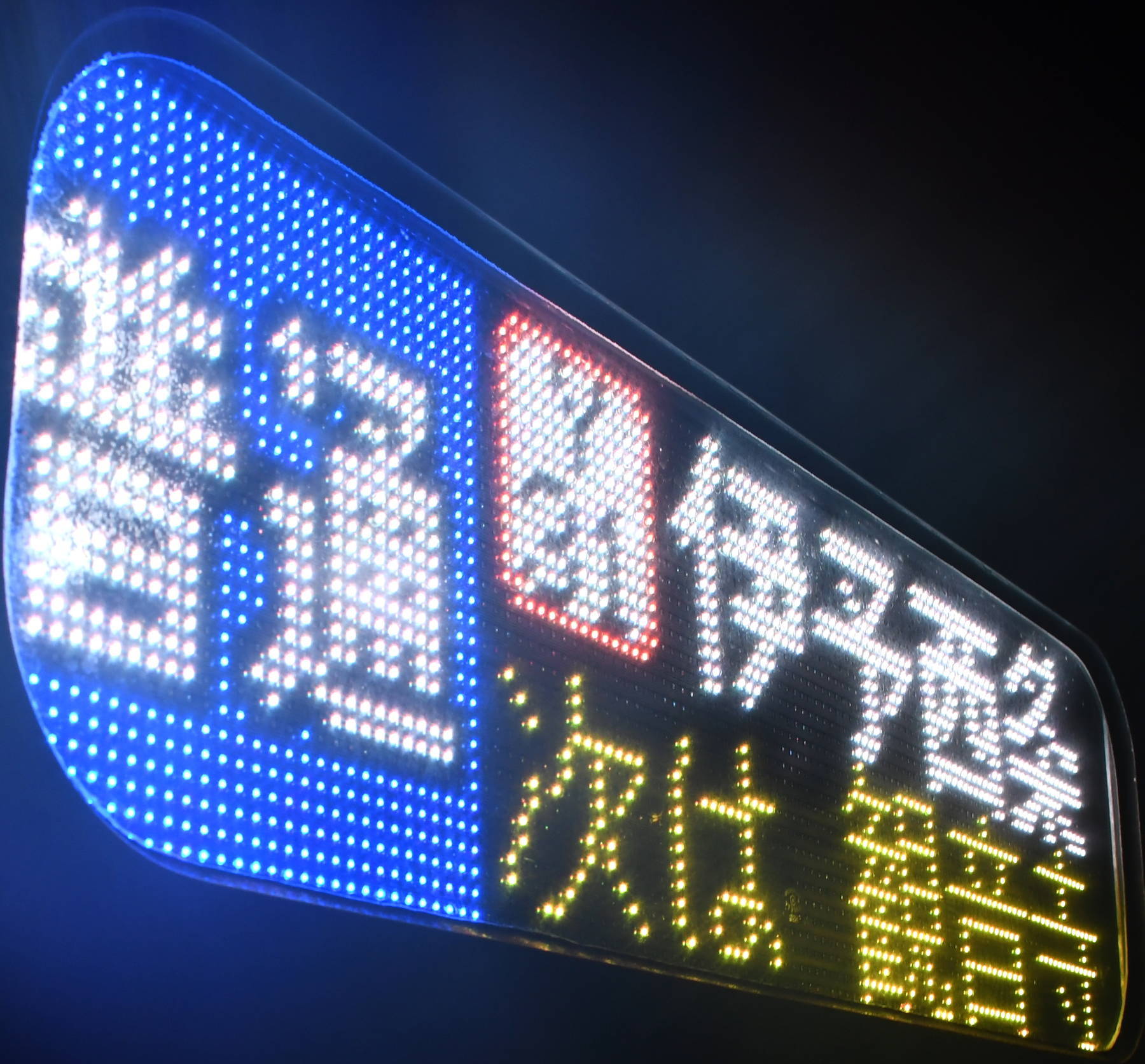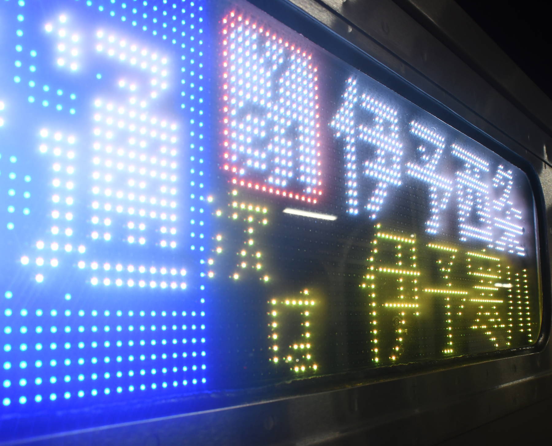 6000系は正面から撮影すると端のドットが隠れるため極端に斜めから撮影しています。