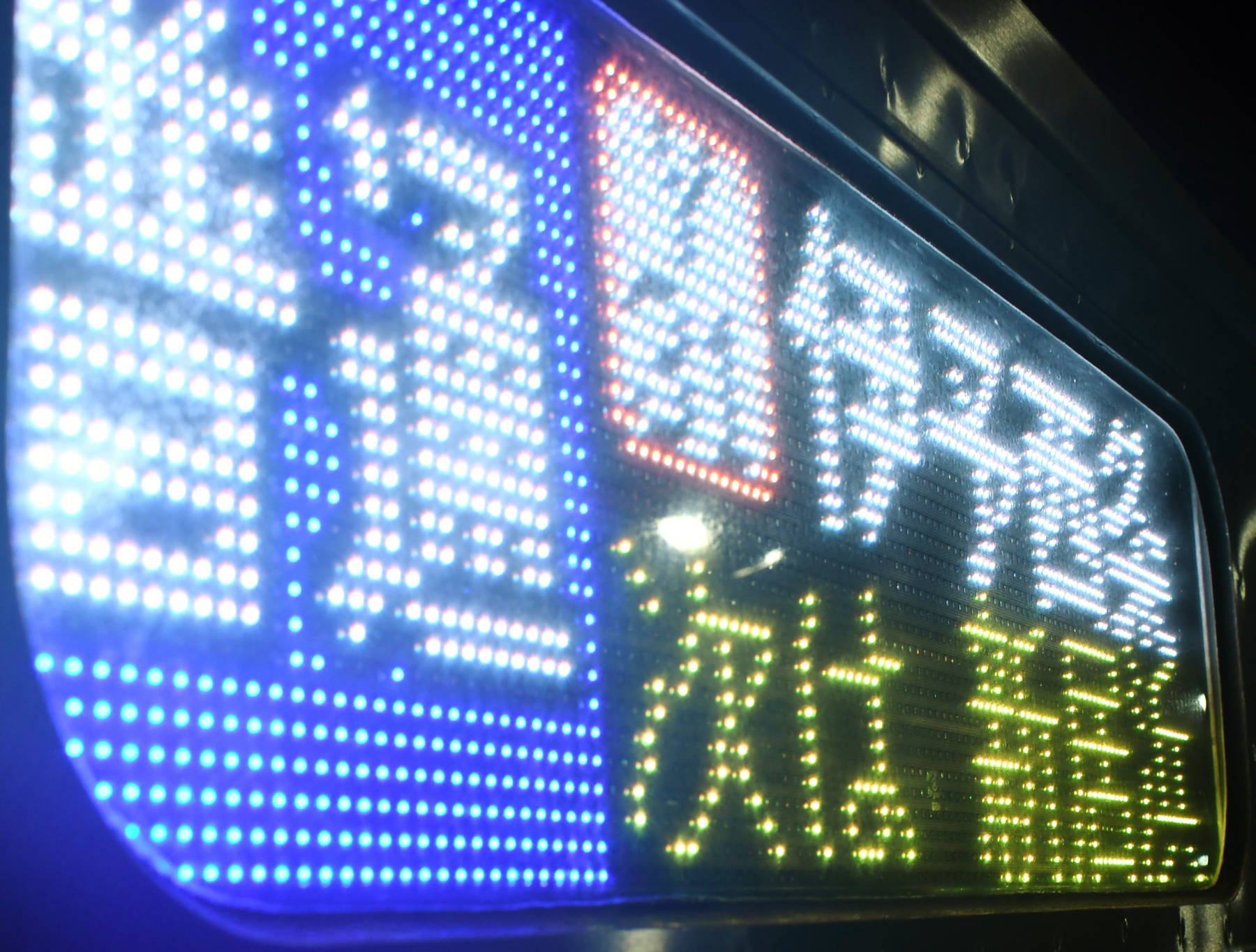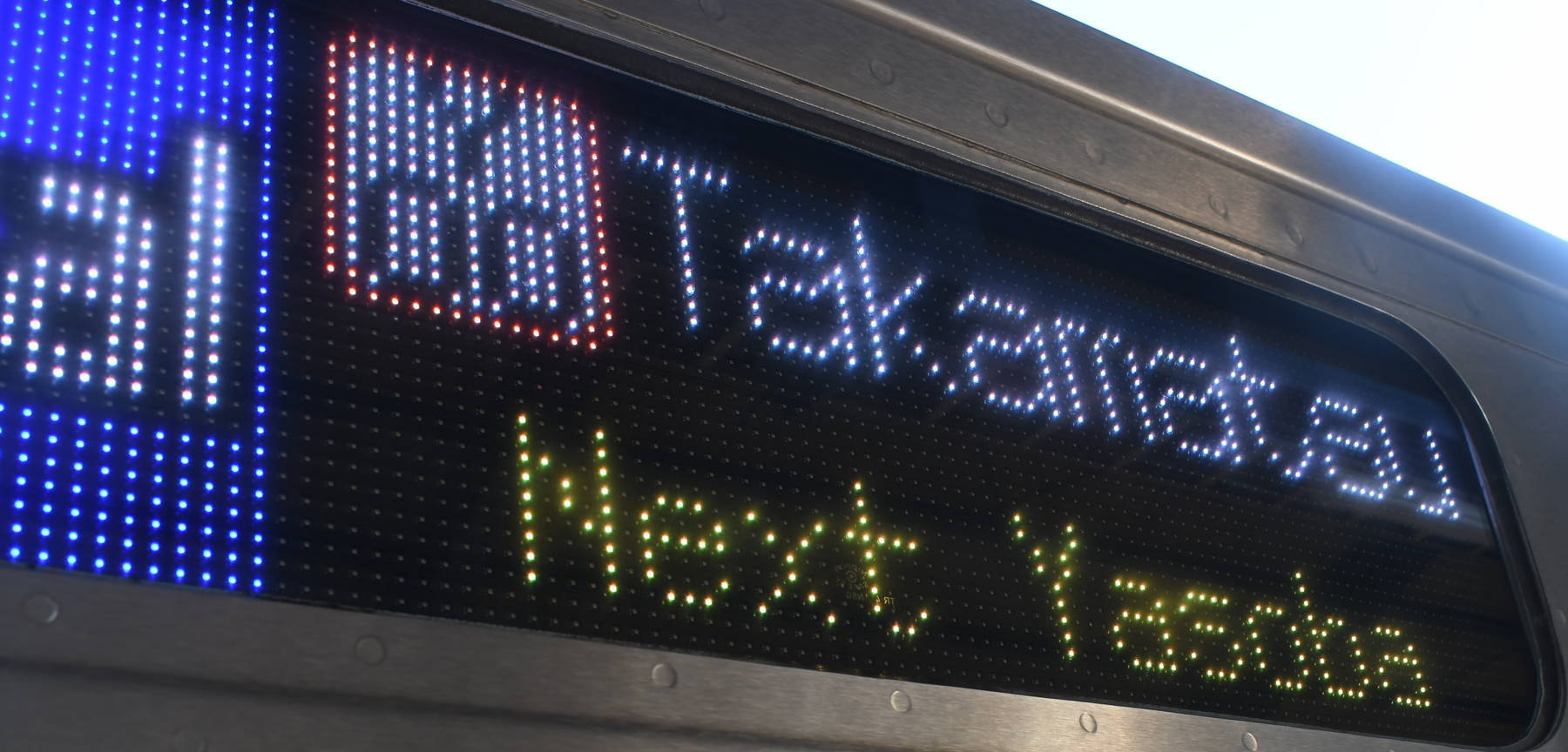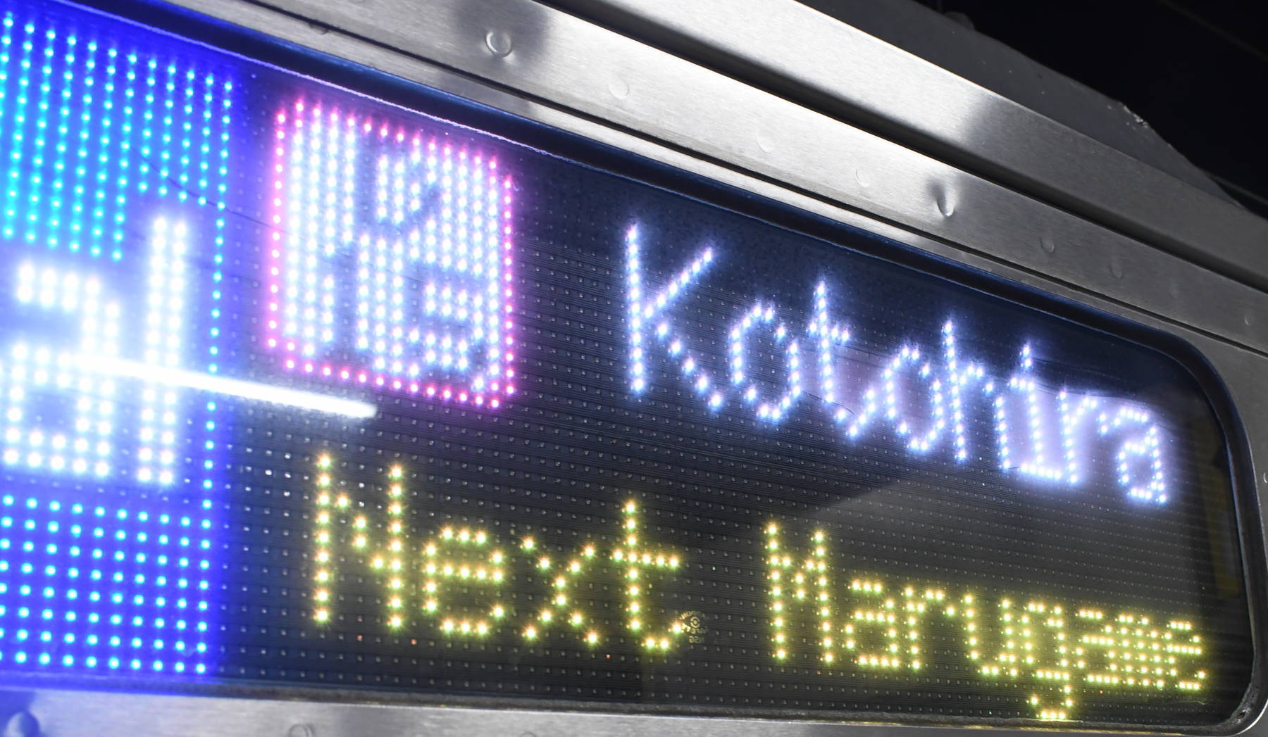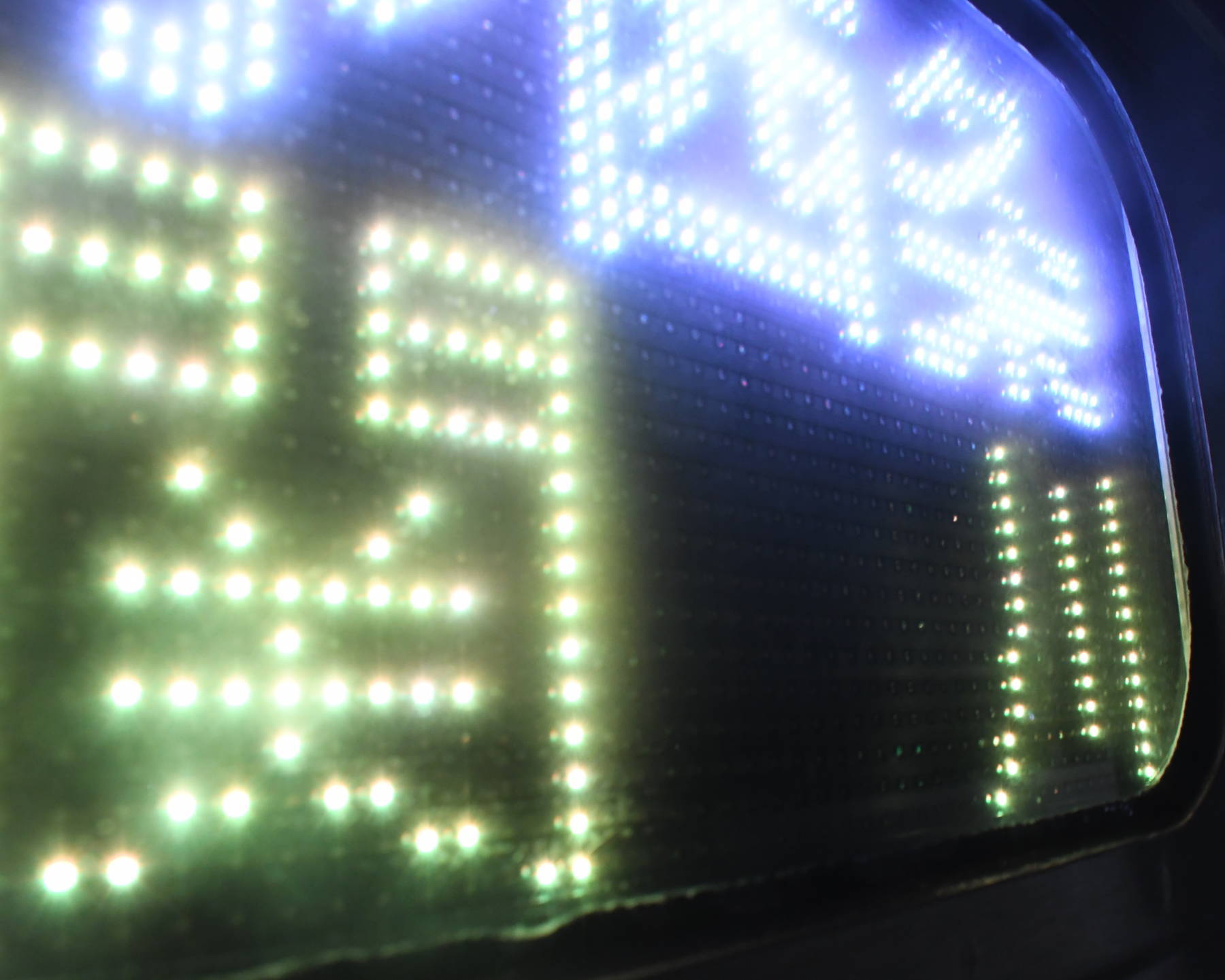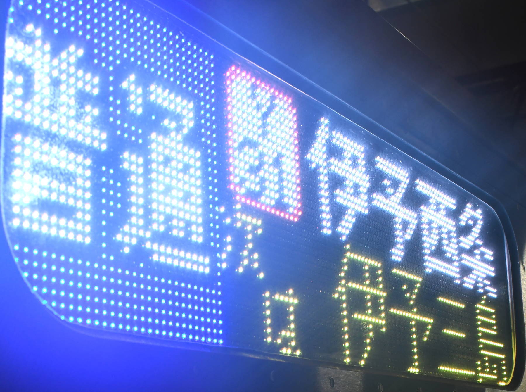 6000系は正面から撮影すると端のドットが隠れるため極端に斜めから撮影しています。