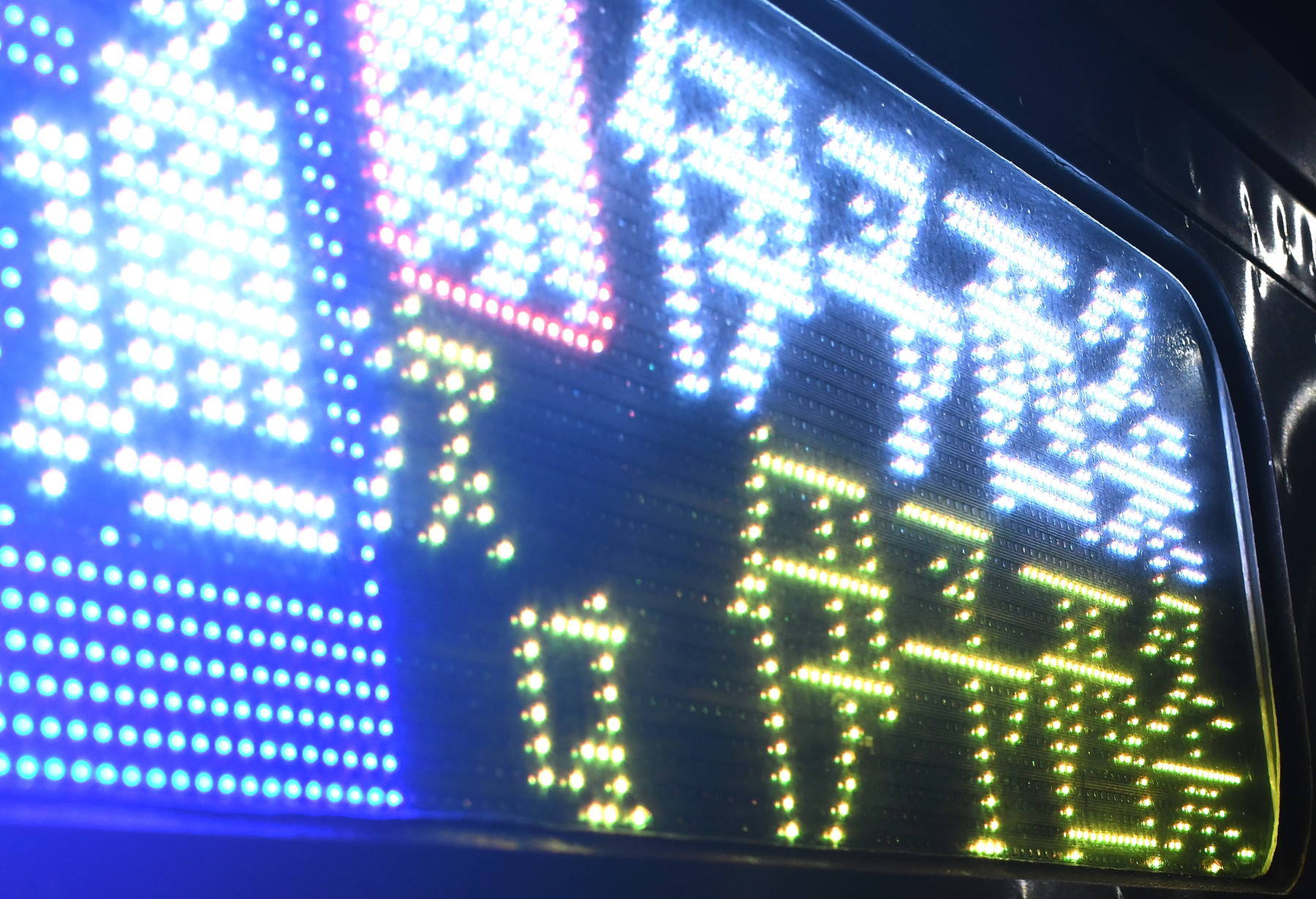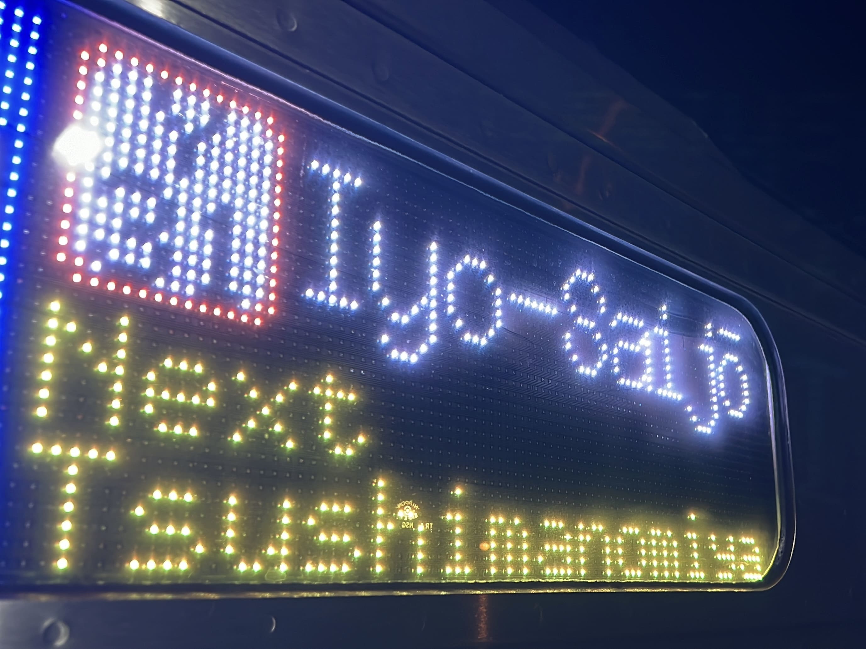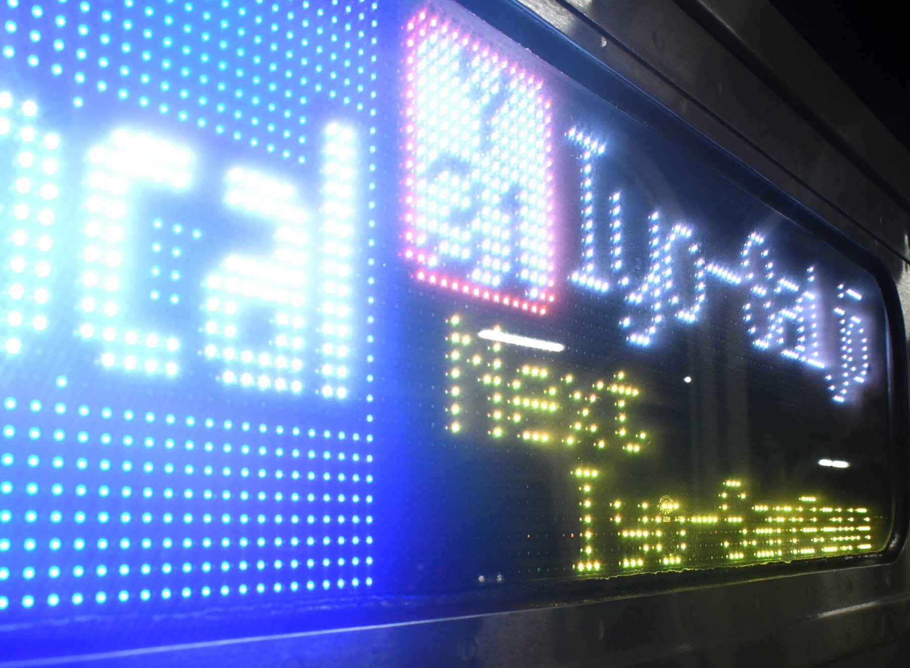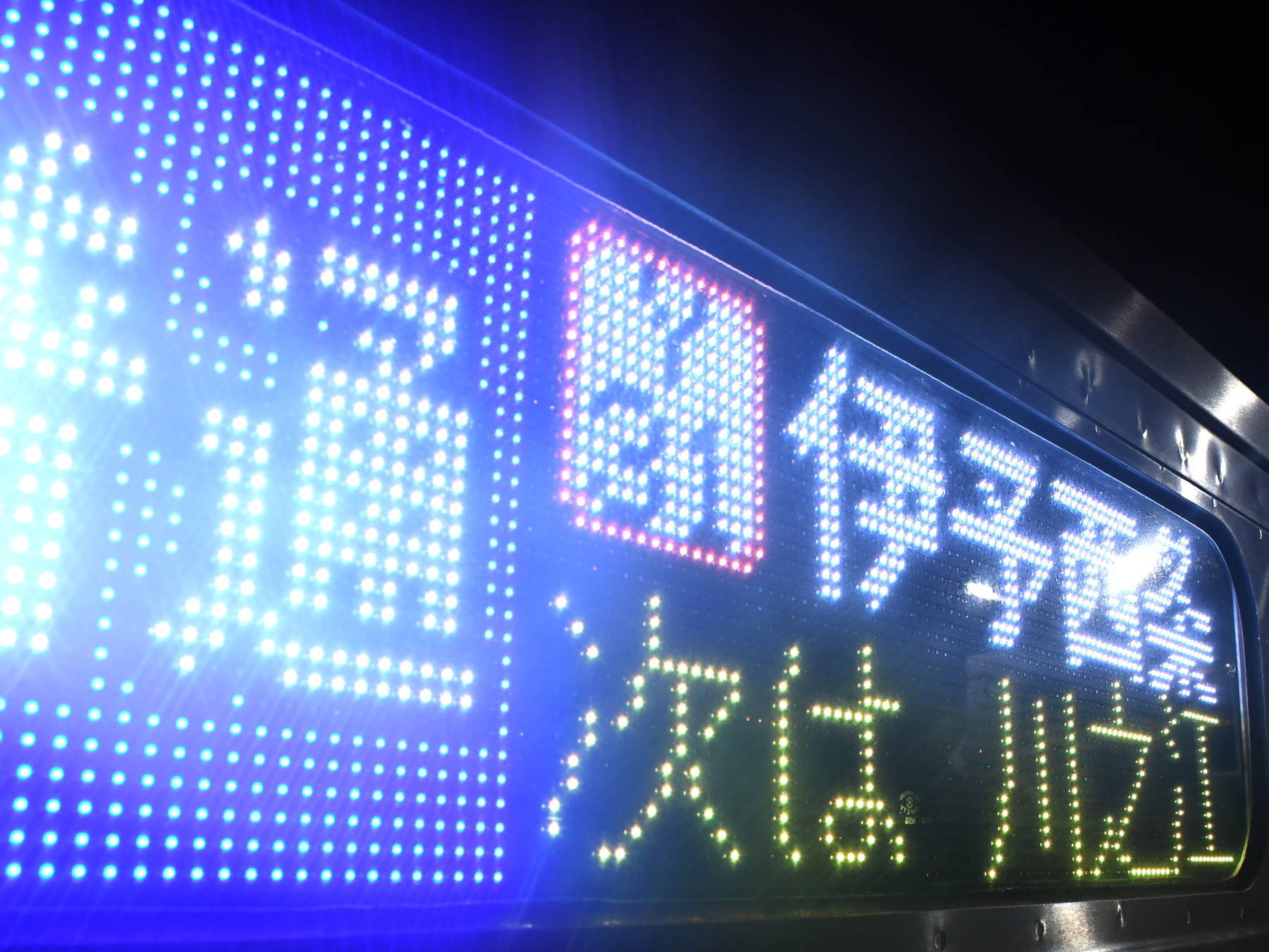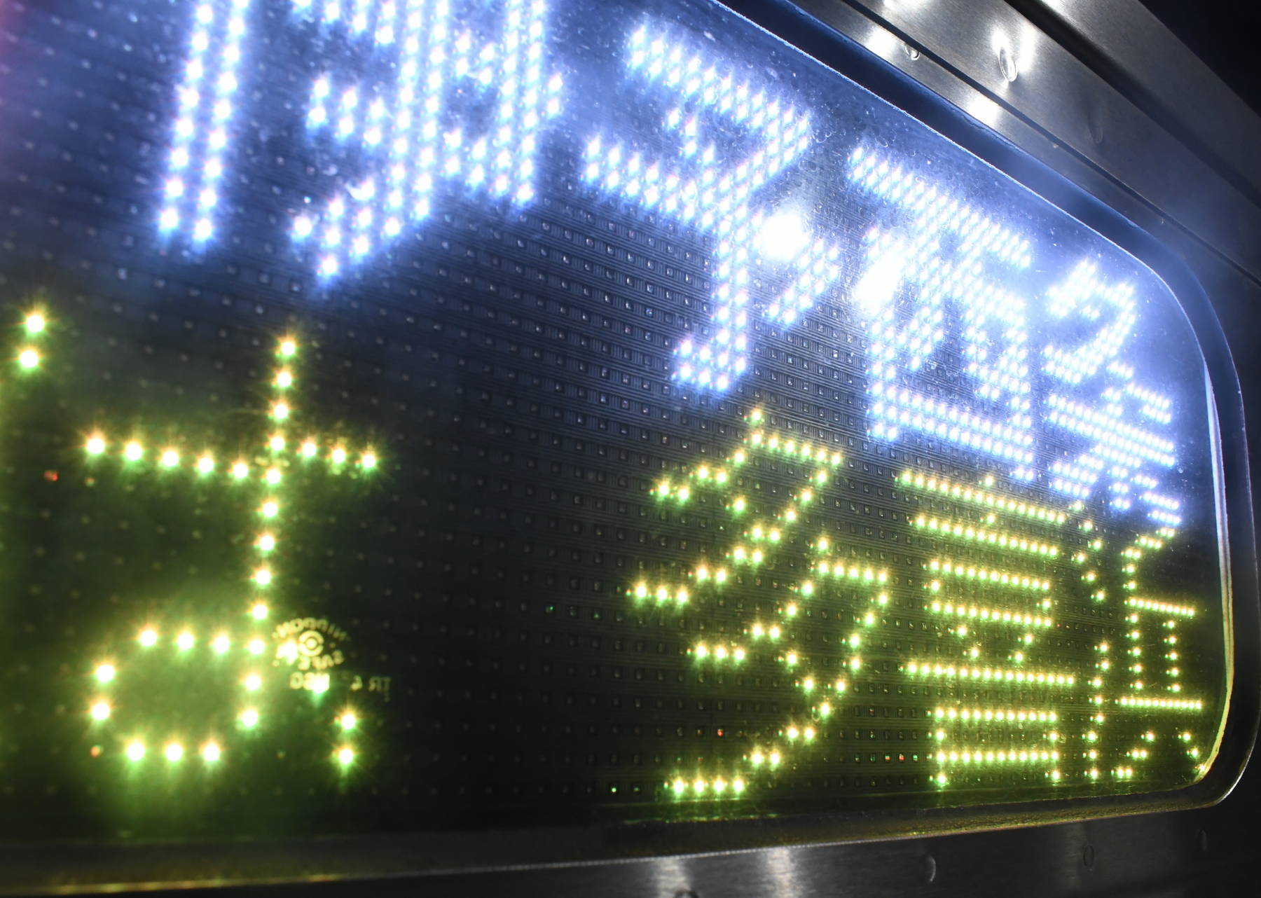 6000系は正面から撮影すると端のドットが隠れるため極端に斜めから撮影しています。