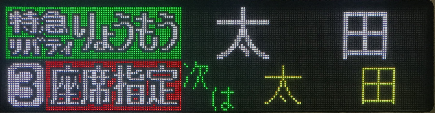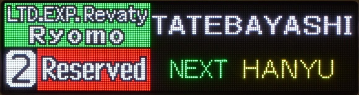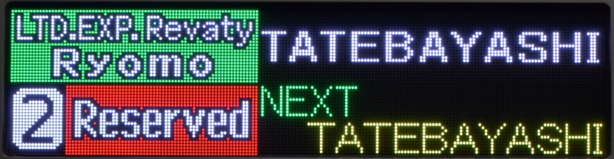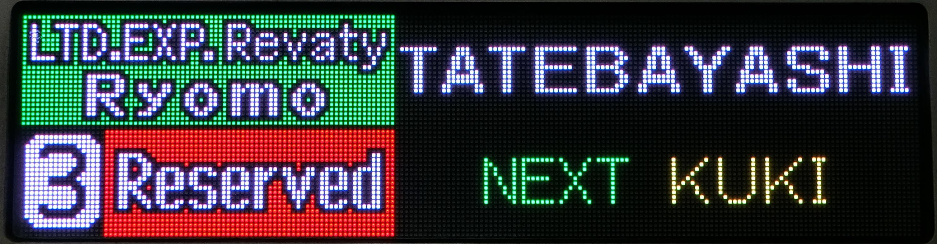 『特急券は不要です』に更新されている為、次駅ありの表示は現在は表示不可。短期間しか表示されなかった。→2023年改正で特急券が必要になり再び見れるように。