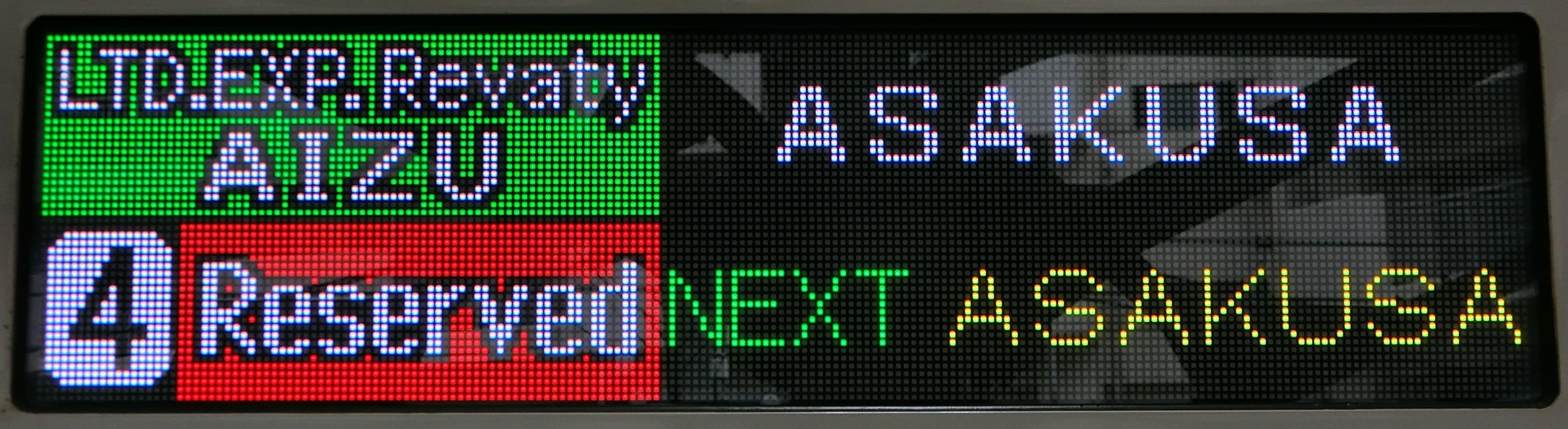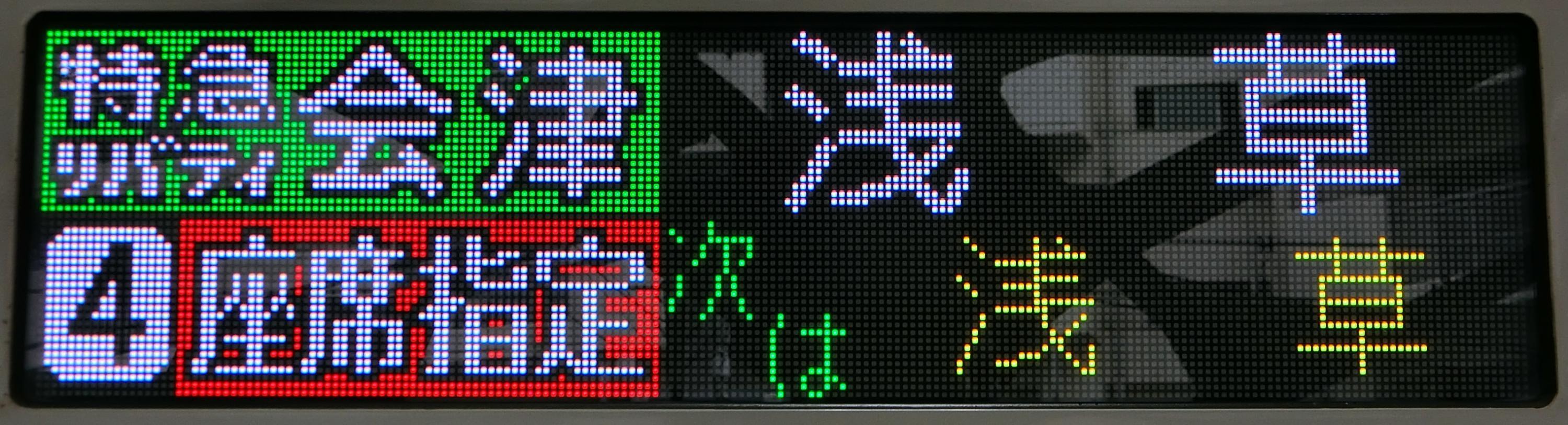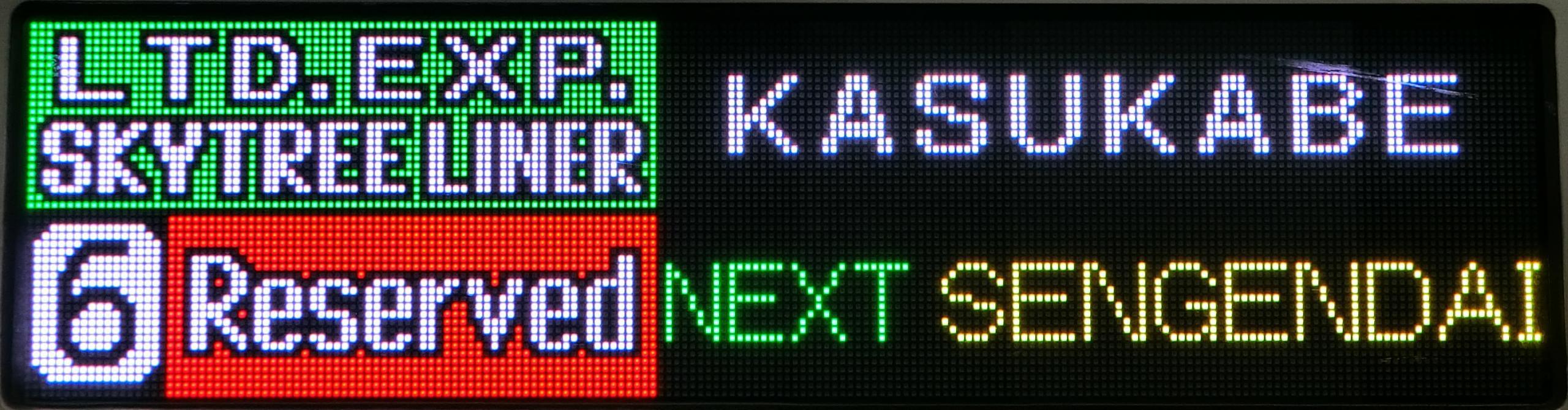 『特急券は不要です』に更新されている為、次駅ありの表示は現在は表示不可。短期間しか表示されなかった。→2023年改正で特急券が必要になり再び見れるように。