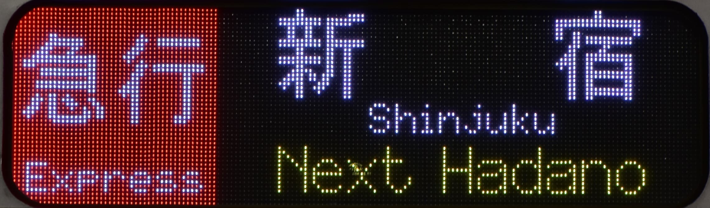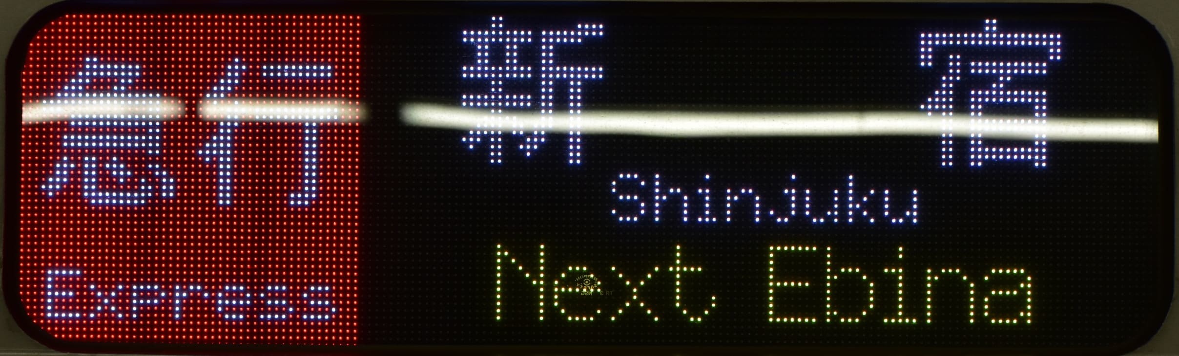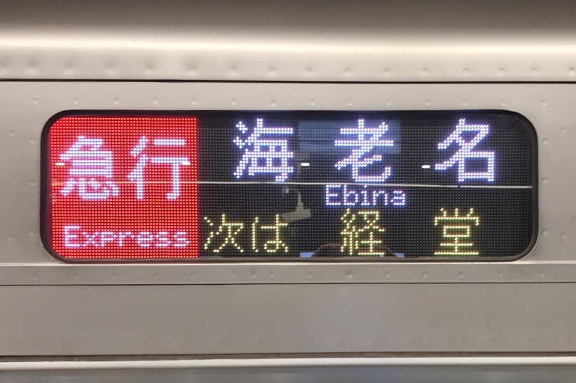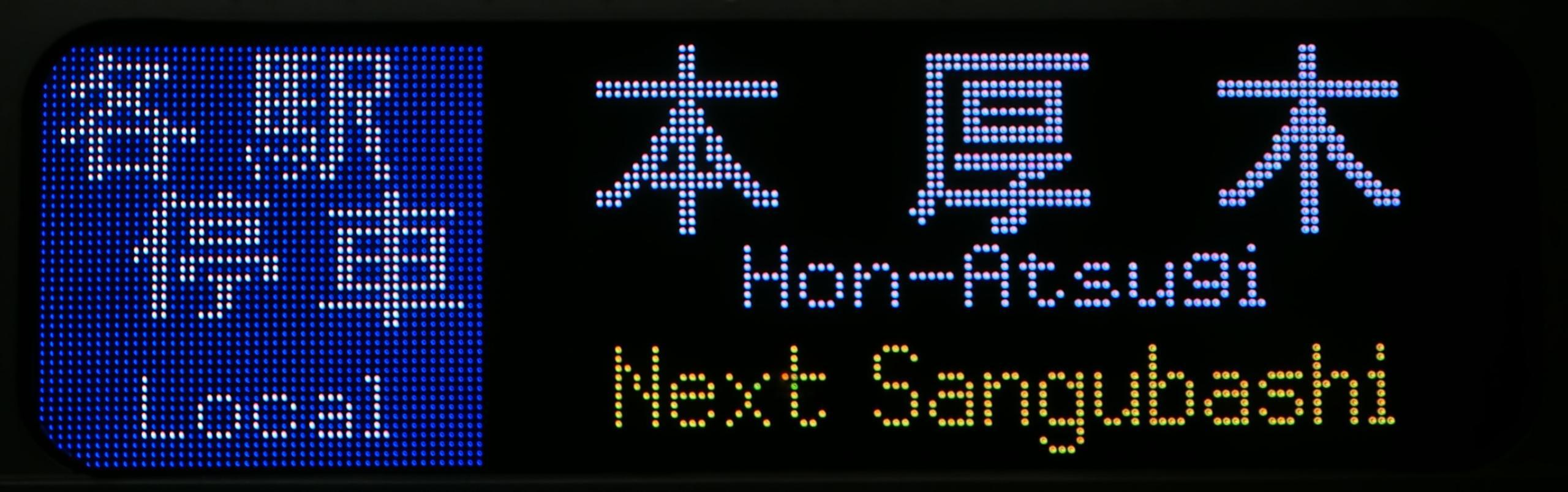 (2,3枚目)この駅のみ英字はE233系と小田急車で表示が異なります。