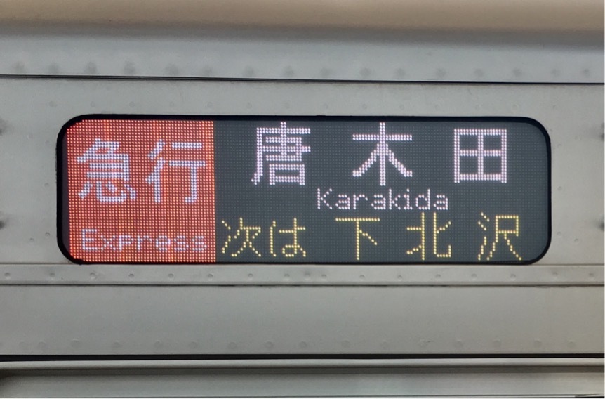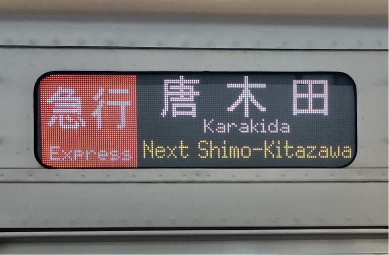この駅のみ英字はE233系と小田急車で表示が異なります。