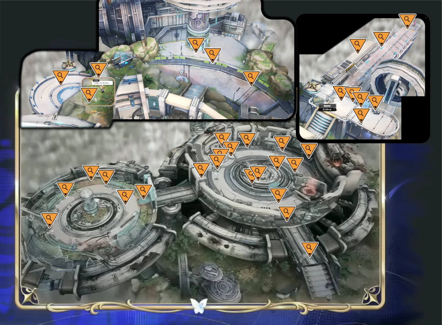 - 専用フィールドにNPCが配置されており、タップすることで各コンテンツをプレイできる