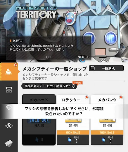 メカシフティーが一般ショップを占領しました。