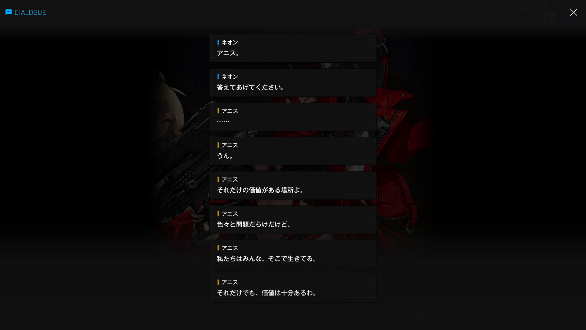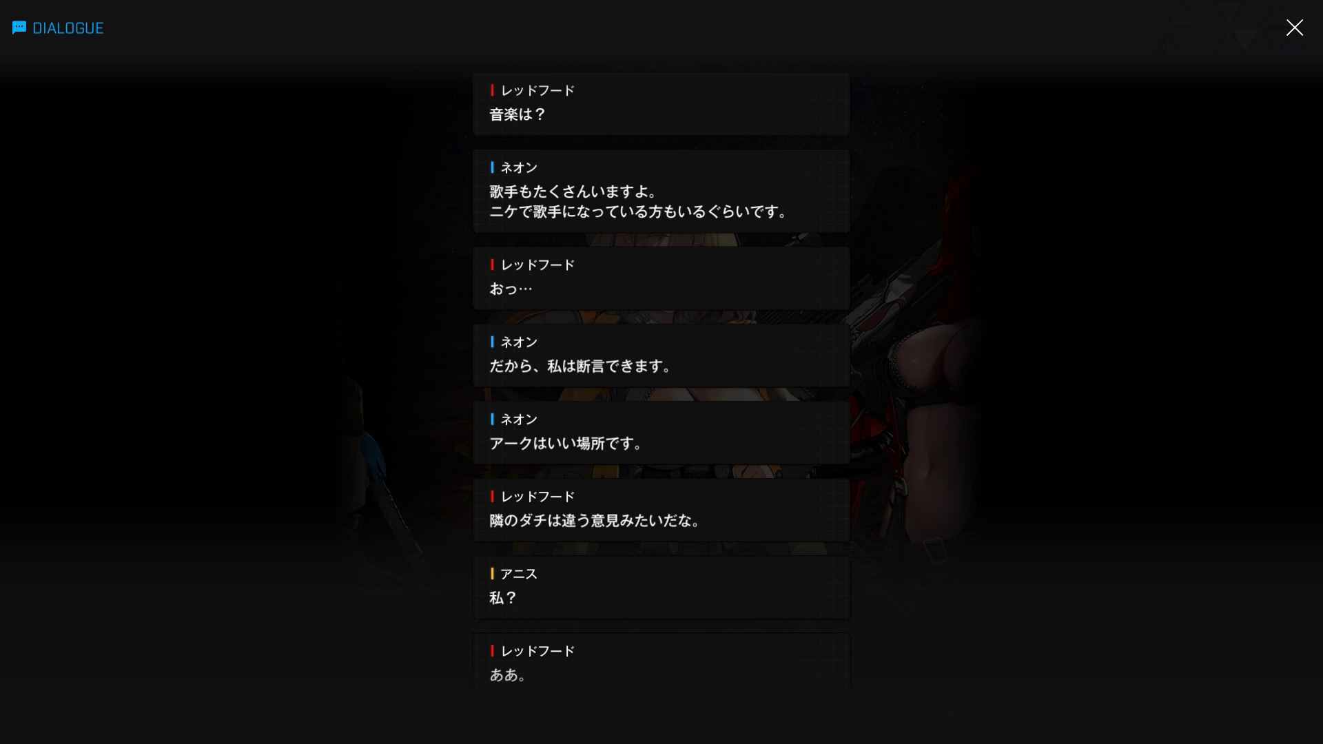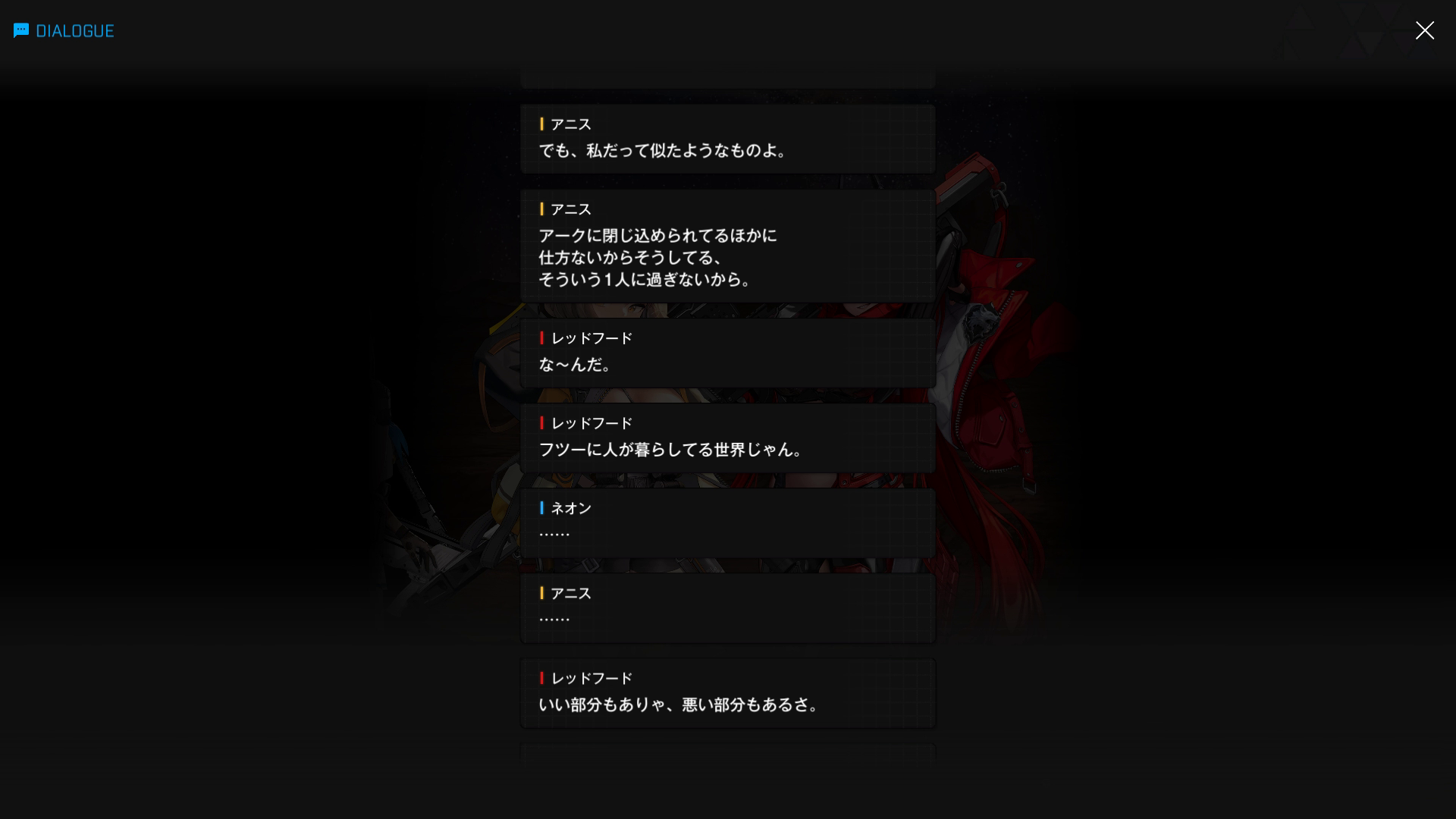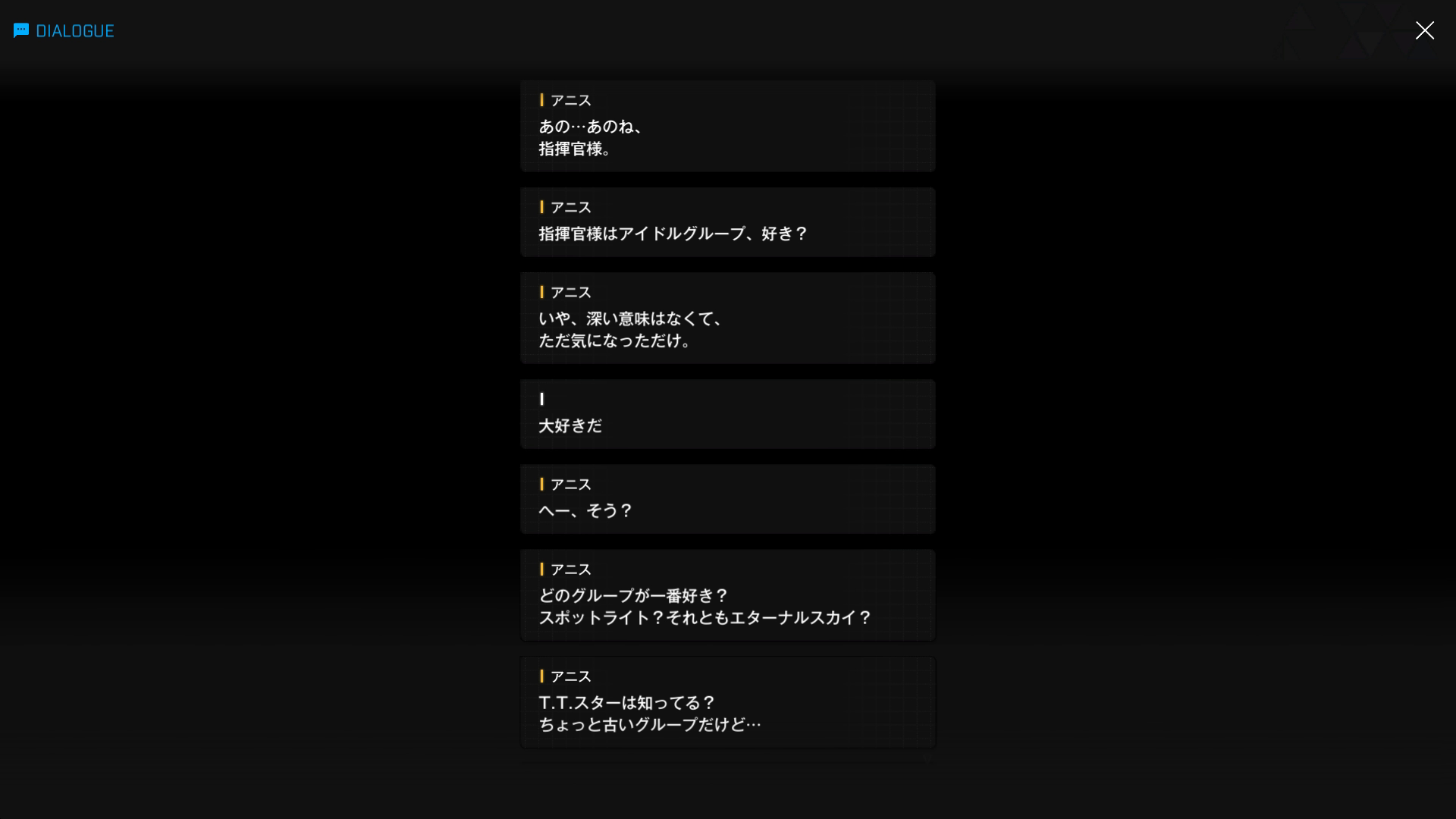 ・メンバーが人間 or ニケ(または混成)& 人数などの詳細は不明だが、最後にしれっとT.T.スターの名前を出しているのがアニスらしい(アニス面談:11より)