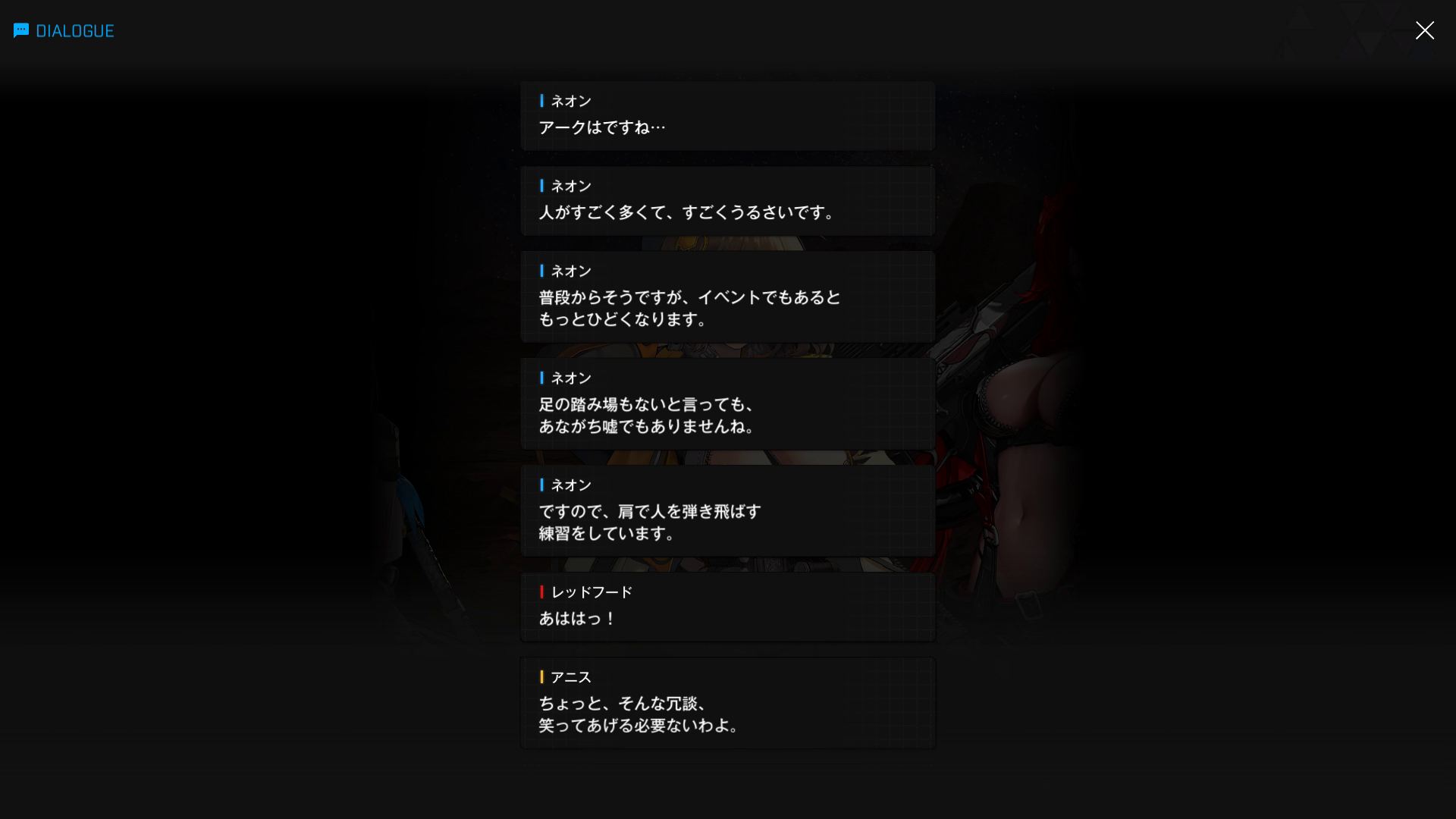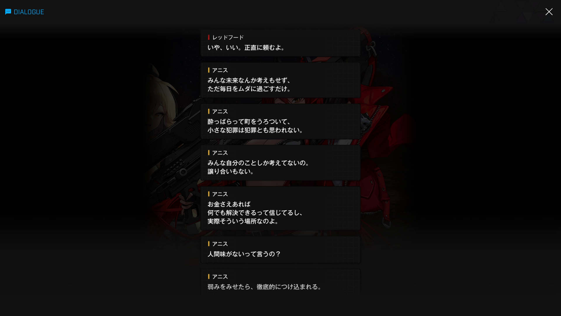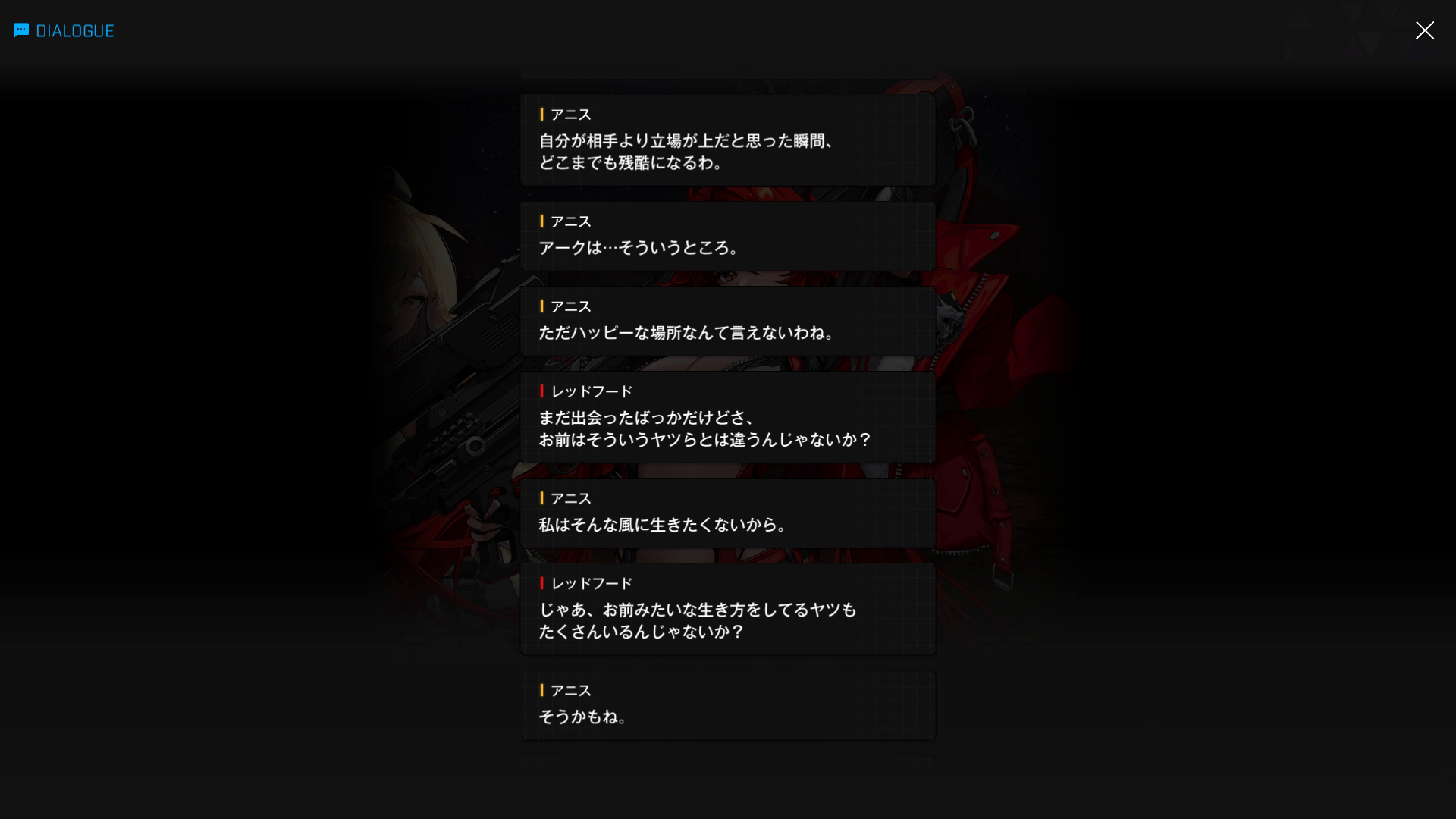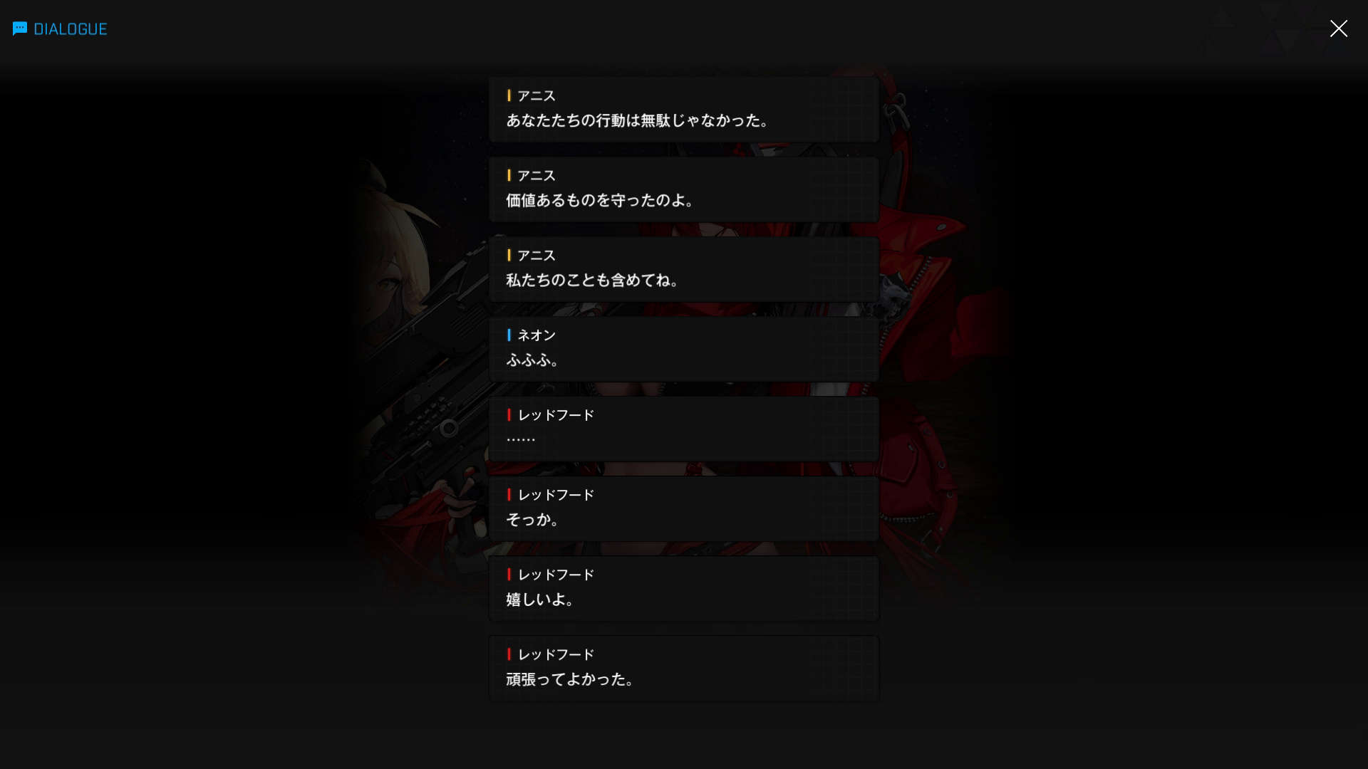 ・メンバーが人間 or ニケ(または混成)& 人数などの詳細は不明だが、最後にしれっとT.T.スターの名前を出しているのがアニスらしい(アニス面談:11より)