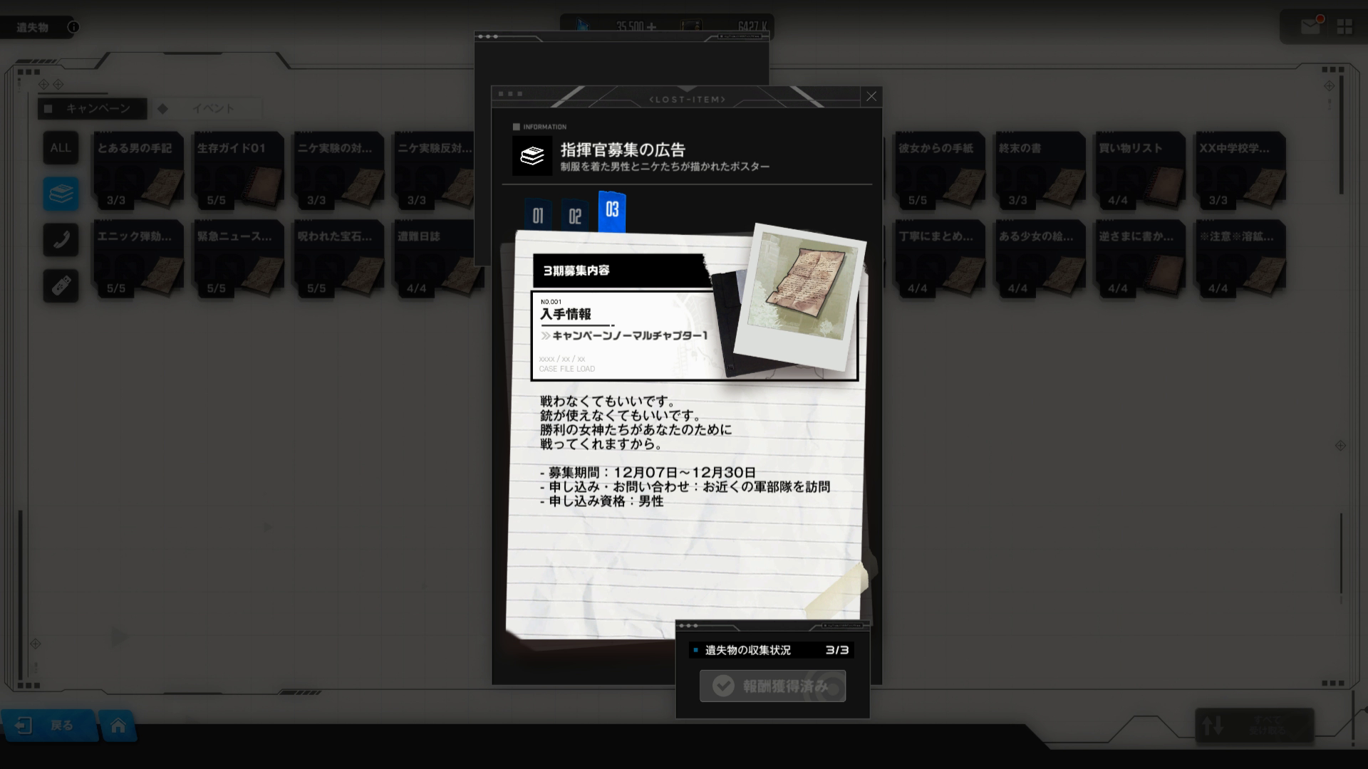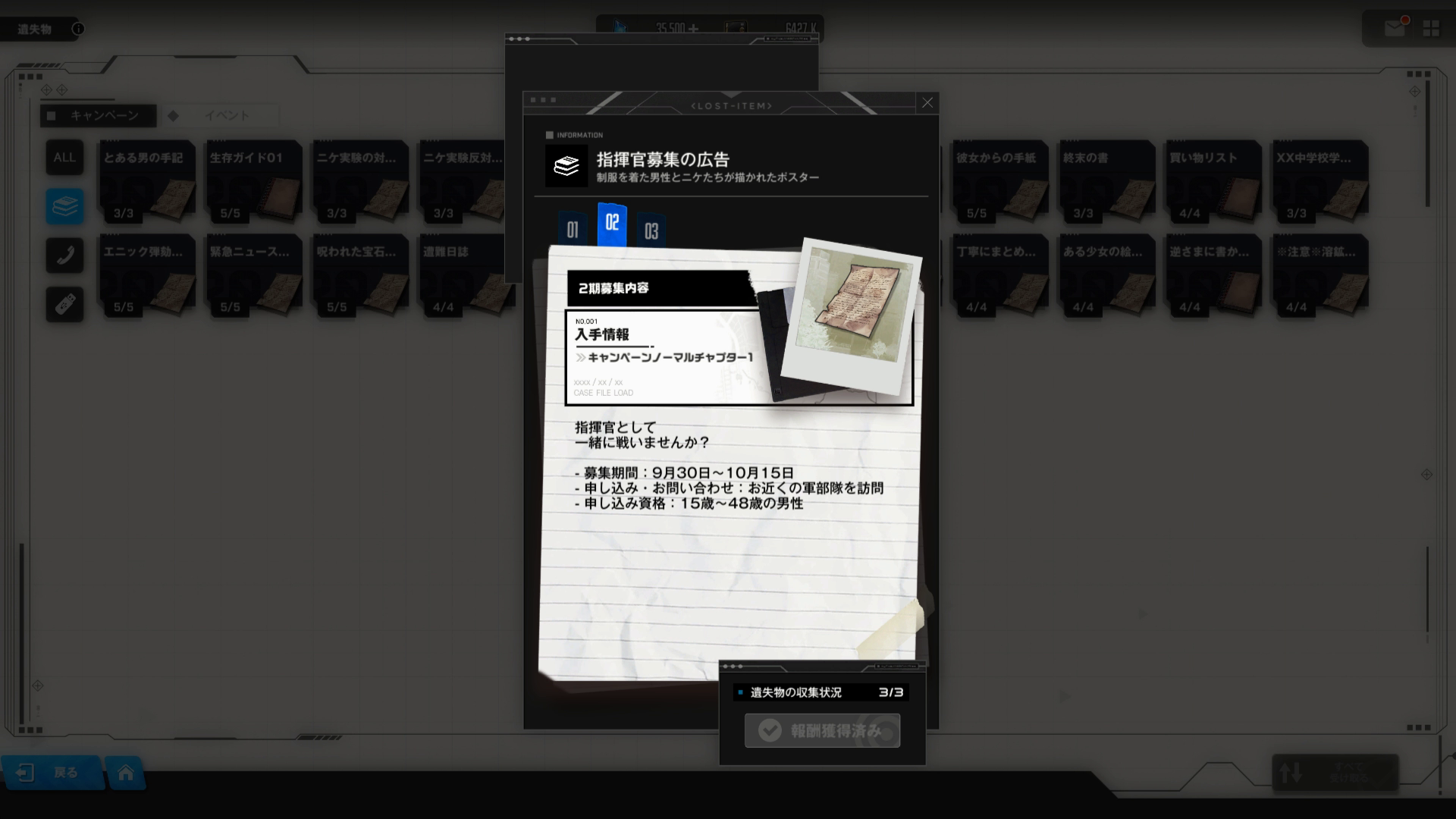 遺失物『キャンペーン』で明かされた内容は以下のとおり