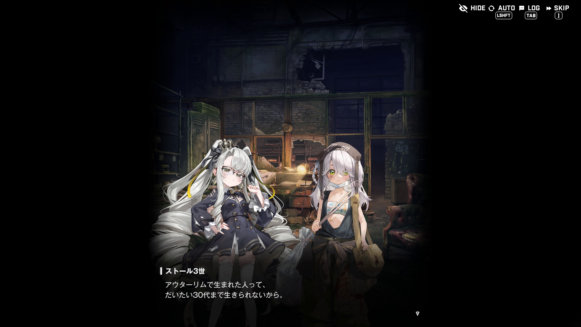 ・『地上でラプチャー & ニケの部品を集め、ブローカーを経由してアーク内で販売する』など、ほぼ犯罪と呼ばれる内容で生計を立てている → 厚い防壁で遮断されている理由はこれ以外にもあり、認識チップ未所持の人間に対して人権保護を叫ぶテロ組織『エンターヘブン』を1ヶ所に抑え込むため