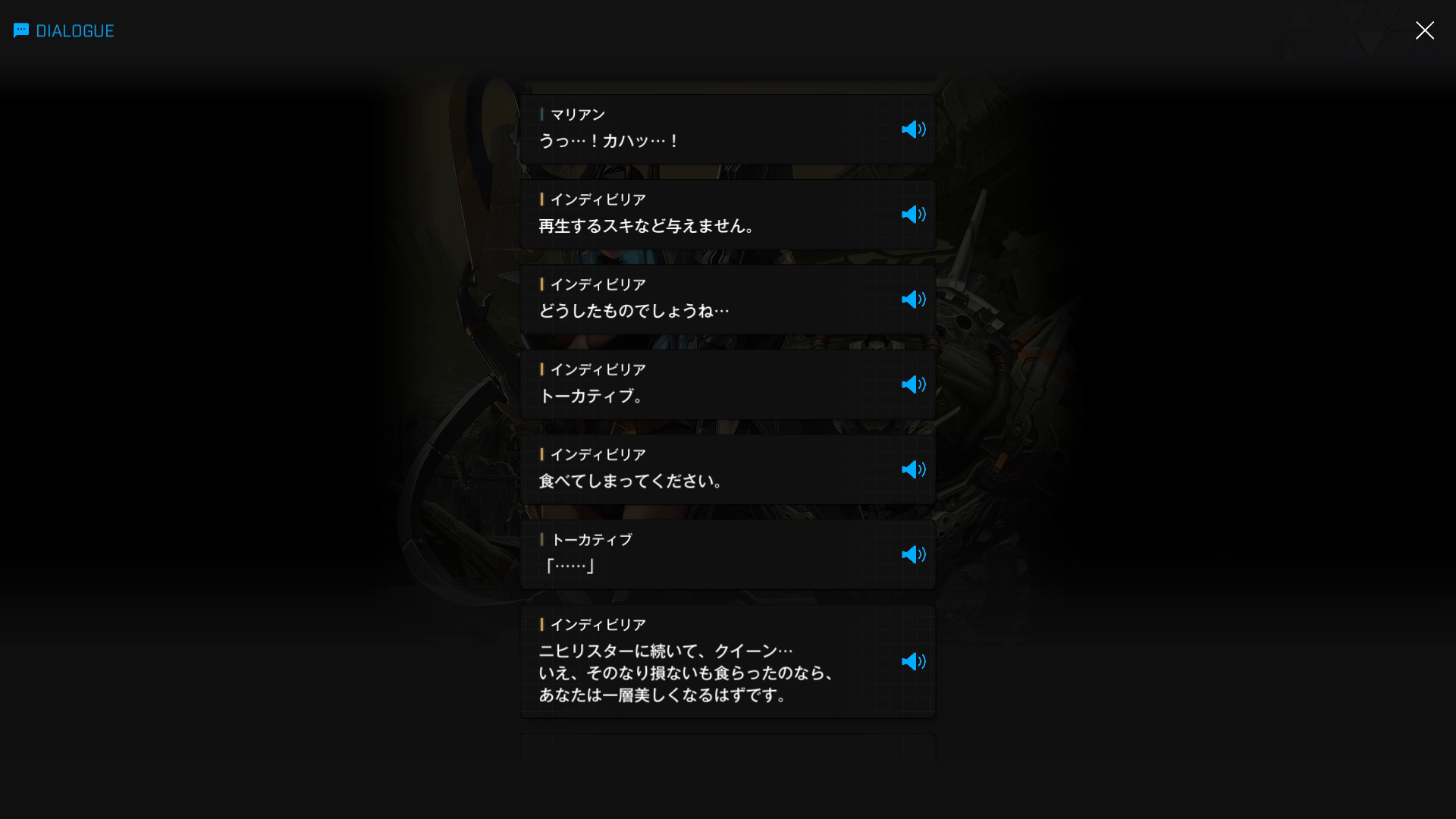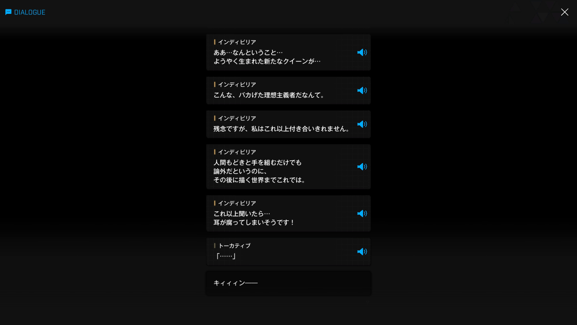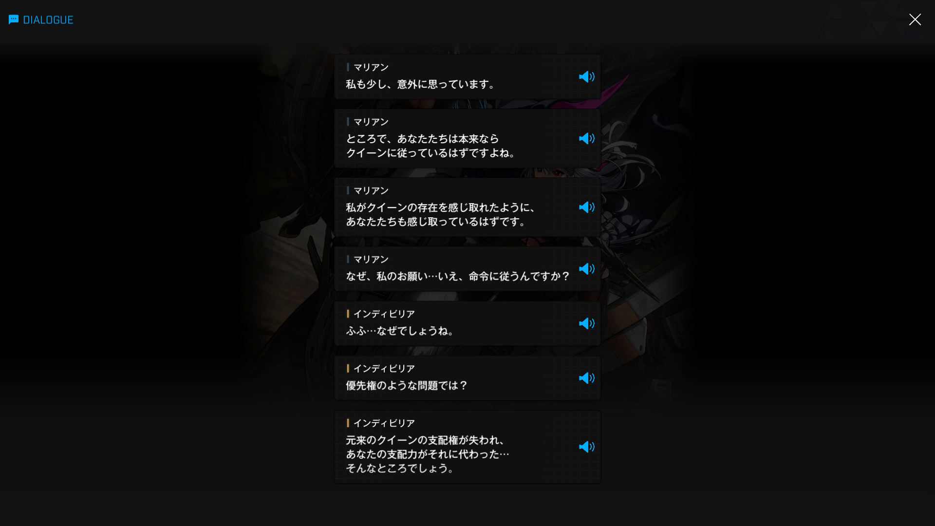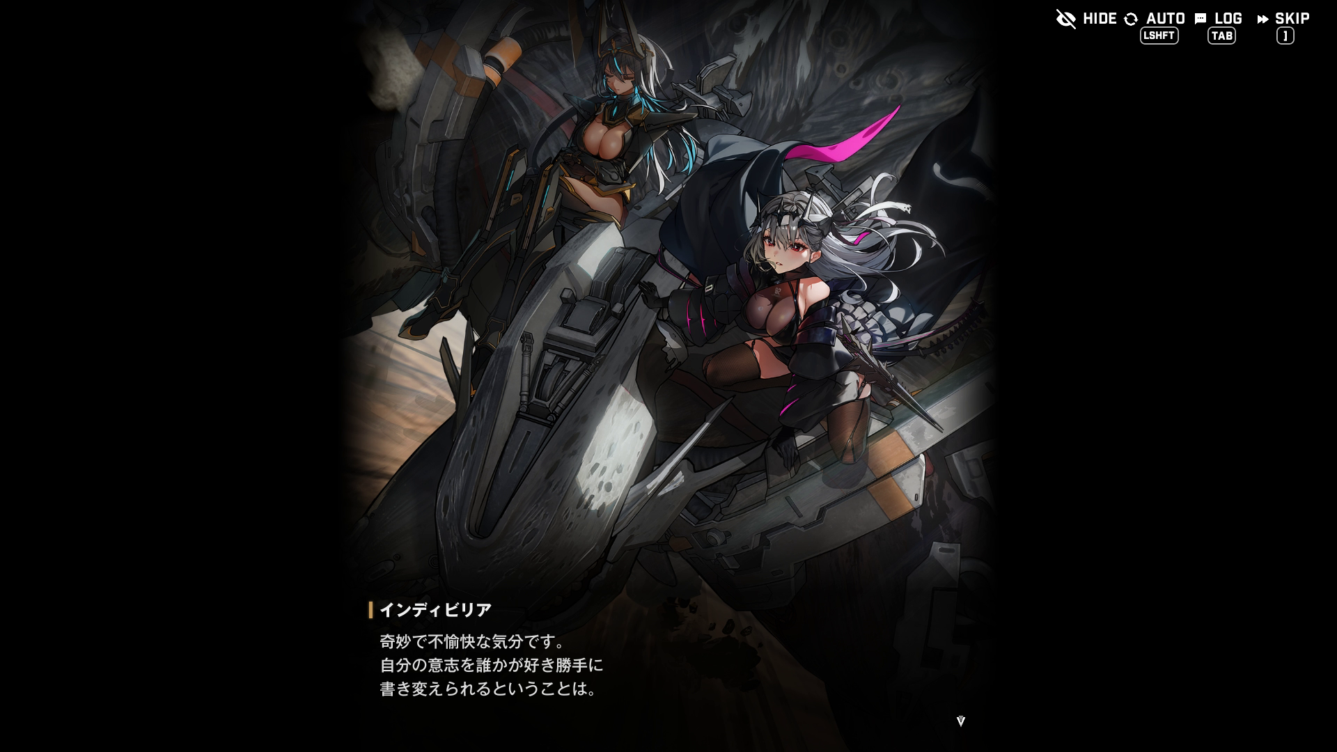 ②冒頭で管理人が閃いた理由の補足説明になるが、イベント『OLD TALES』の第1部『散逸する童話:A』で、以下SSのような会話が出てくる → つまり、『(全)人類の守護者(ニケ)ではない』=『UN-NIKKE-ALL(アン・ニケ・オール、続けて読むとアナキオール)』と推測した