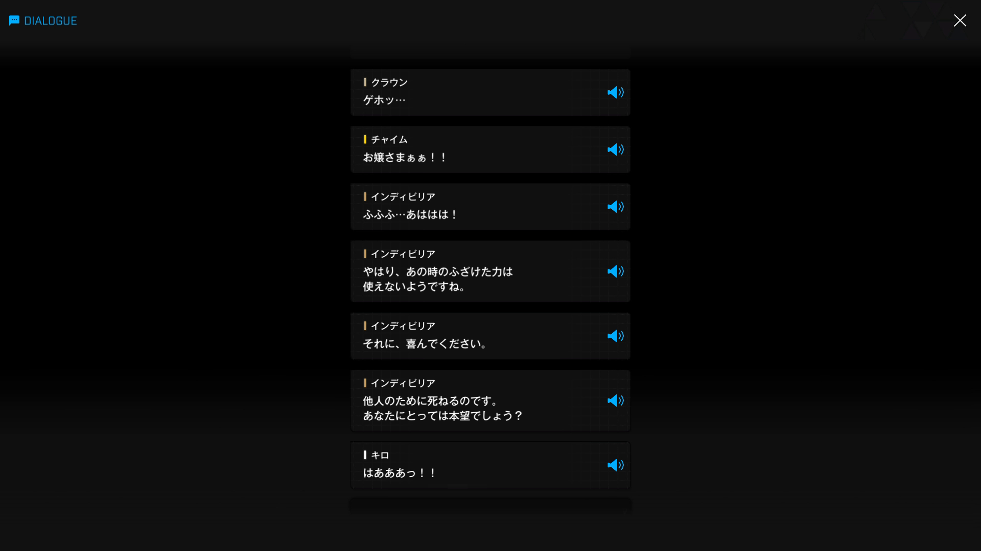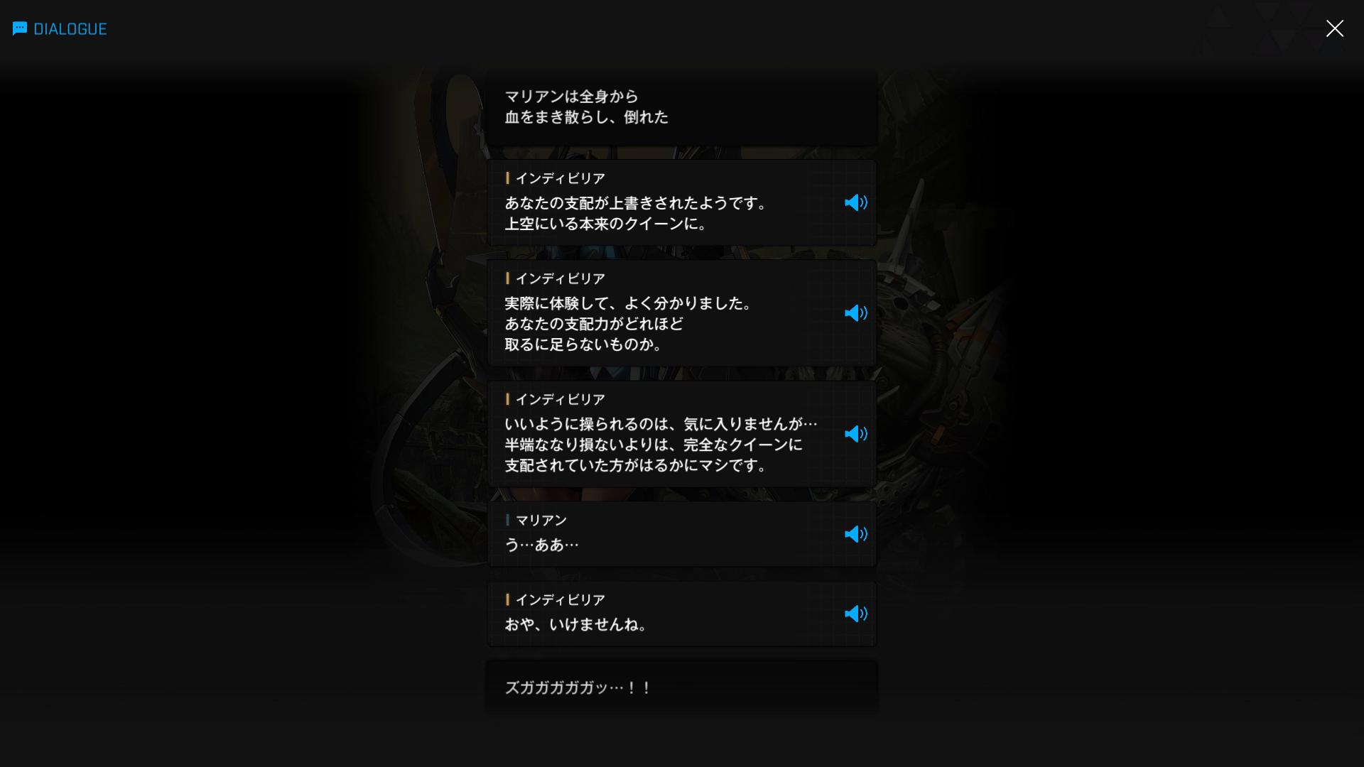 ・上空でイサベル & ハランによる決死の特攻が行われていた際、地上で獅子奮迅の活躍をしていたクラウン達の前に姿を現す → 彼女達が自分に向かって移動を開始した直後、宇宙ステーションが崩壊し始める(『天空を彩る翼:B』より)