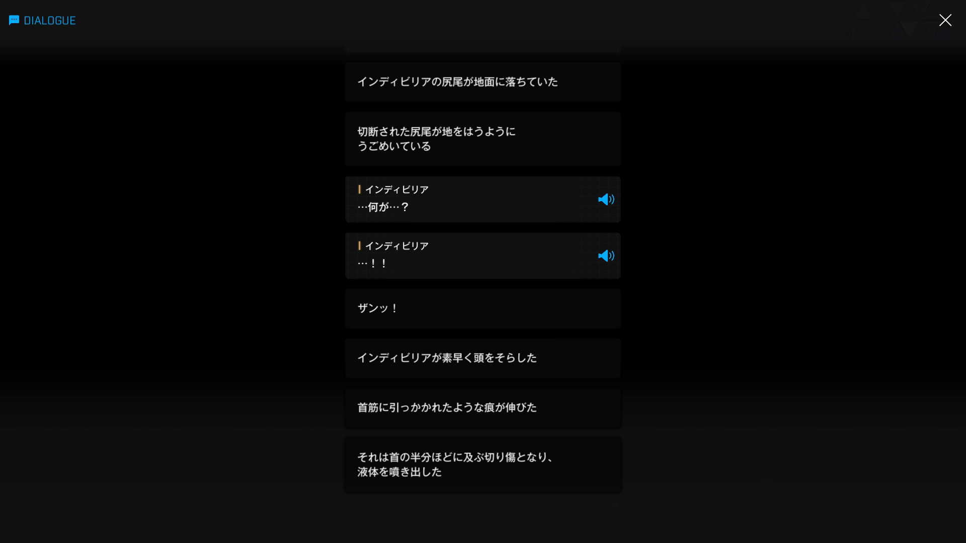 ・白紅蓮 & イサベルがタイラント級のハーベスターを倒した際、舞い上がった砂ぼこりを囮にして、白紅蓮の腹部に尻尾の刃を貫通させる → 管理人なら余計な会話など一切せず、『そのまま一気に刃を跳ね上げて頭部を両断 & 即撤退』するが、なぜそれ以上の攻撃をしなかったのかは謎(『2000:A』より)